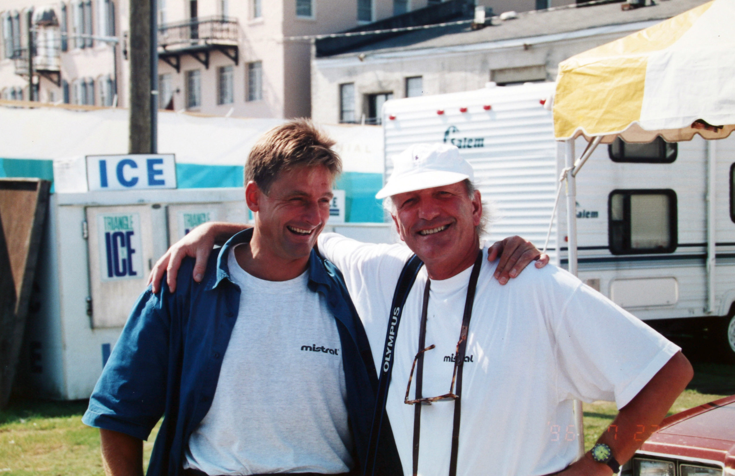 Ganz nah dran am Geschehen ... die Mistral One Design Class ... ein großer Image-Gewinn, daß alle Athleten der Welt mit unseren Boards um die Medaillien kämpften. Allerdings kein ganz billiger Spaß, da wir mehr als 100 Mistral Boards kostenfrei zur Verfügung stellen mußten und die Vermarktungsabteilung des Olympischen Komitees zudem noch weitere 220 Tsd Dollar IOC Lizenzen in Rechnung stellten. Die Goldmedaille gewann in Savannah übrigens ein Grieche
