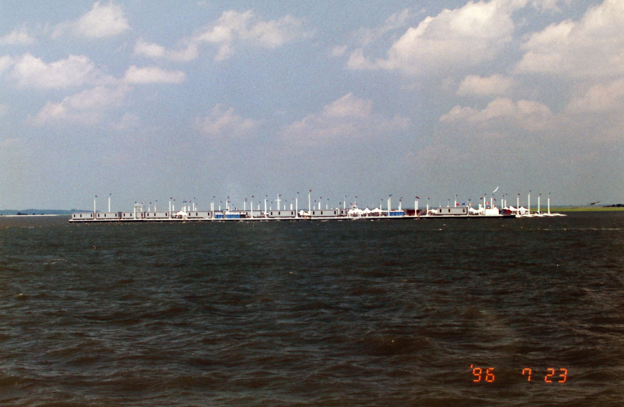 Die Pressebüros und die gesamte Versorgung wurden in Savannah aufs Wasser verlegt ... die künstliche Insel war für die Logistik dringend notwendig