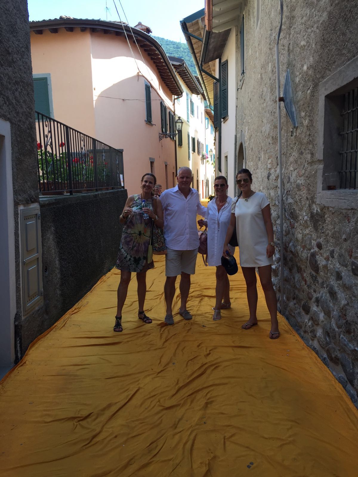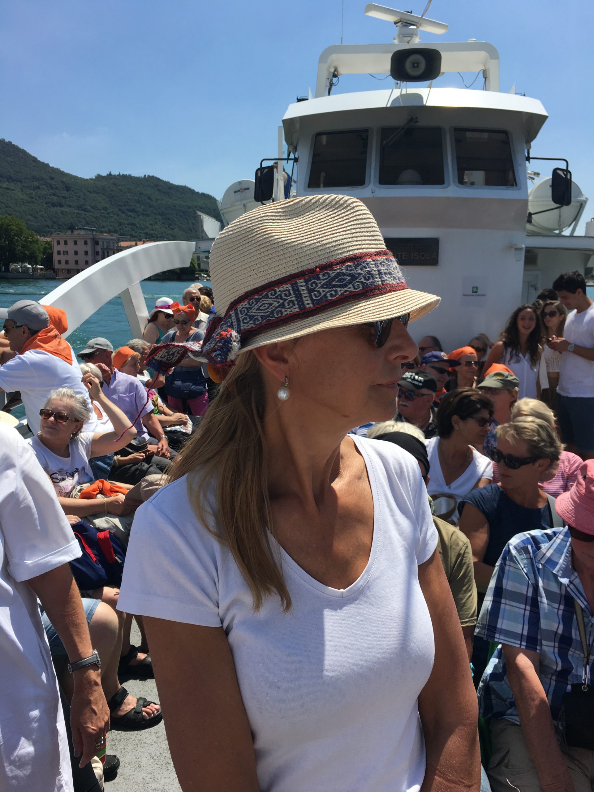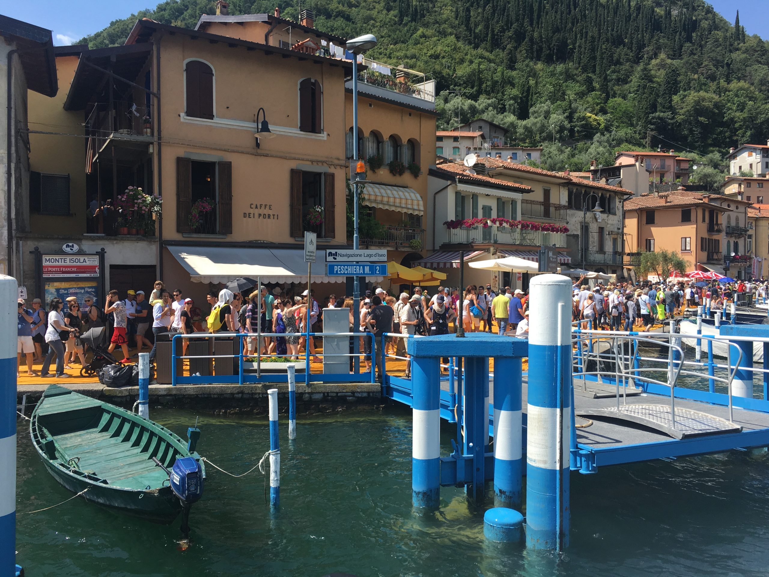 Die aktuelle und im Vorfeld viel diskutierte Installation der "The Floating Piers" von Christo am Lago d´Iseo im Juni 2016 veranlasste uns zu einem Tagesausflug mit Werner, Eva und Lilly Conrad von Gardone-Riviera zur Monte Isola, wo wir uns mit Michaela und Michael Weiß und zwei Ihrer drei Kinder trafen. Die Familie von Michaela Weiß hat auf der Monte Isola ein Haus direkt am Wasser, in dem die Familie immer wieder gerne Urlaub macht. Die italienische Organisation hinsichtlich der An- und Abreise der Besucher zum Event war etwas chaotisch, da der Ansturm von mehr als 1.2 Mio Besuchern stark unterschätzt worden war. So sollte man im Vorfeld unbedingt im Internet Plätze auf den Fahrgastschiffen reserviert haben, sonst wurde es schwierig, zeitnah zur Location zu kommen. Der Lago d´Iseo hat uns so gut gefallen, daß wir im August des Jahres noch einen Kurzurlaub mit dem Riva Boot einplanten und dabei den gesamten See kennenlernen durften. Dazu gibt es in einem anderen Beitrag mehr Informationen.