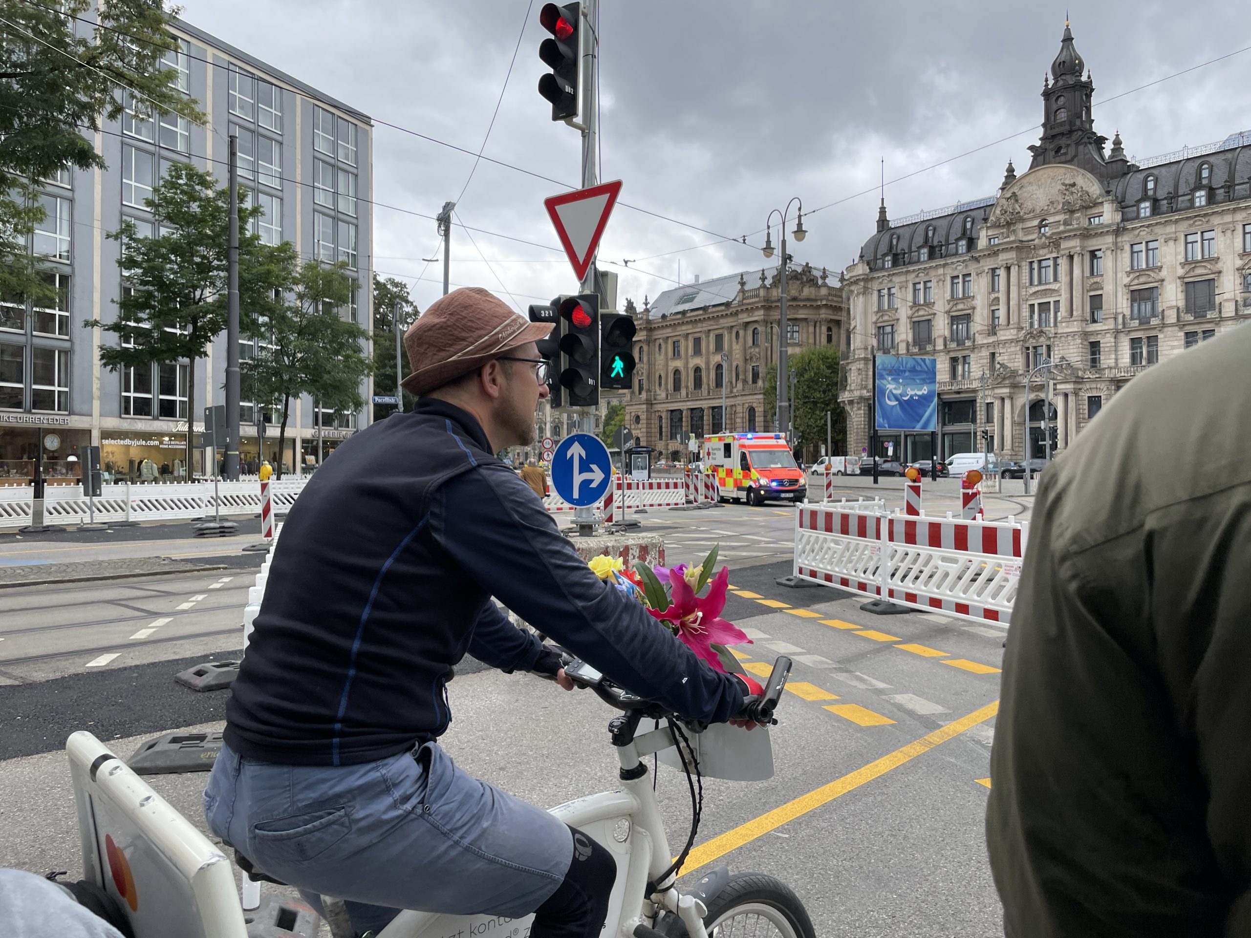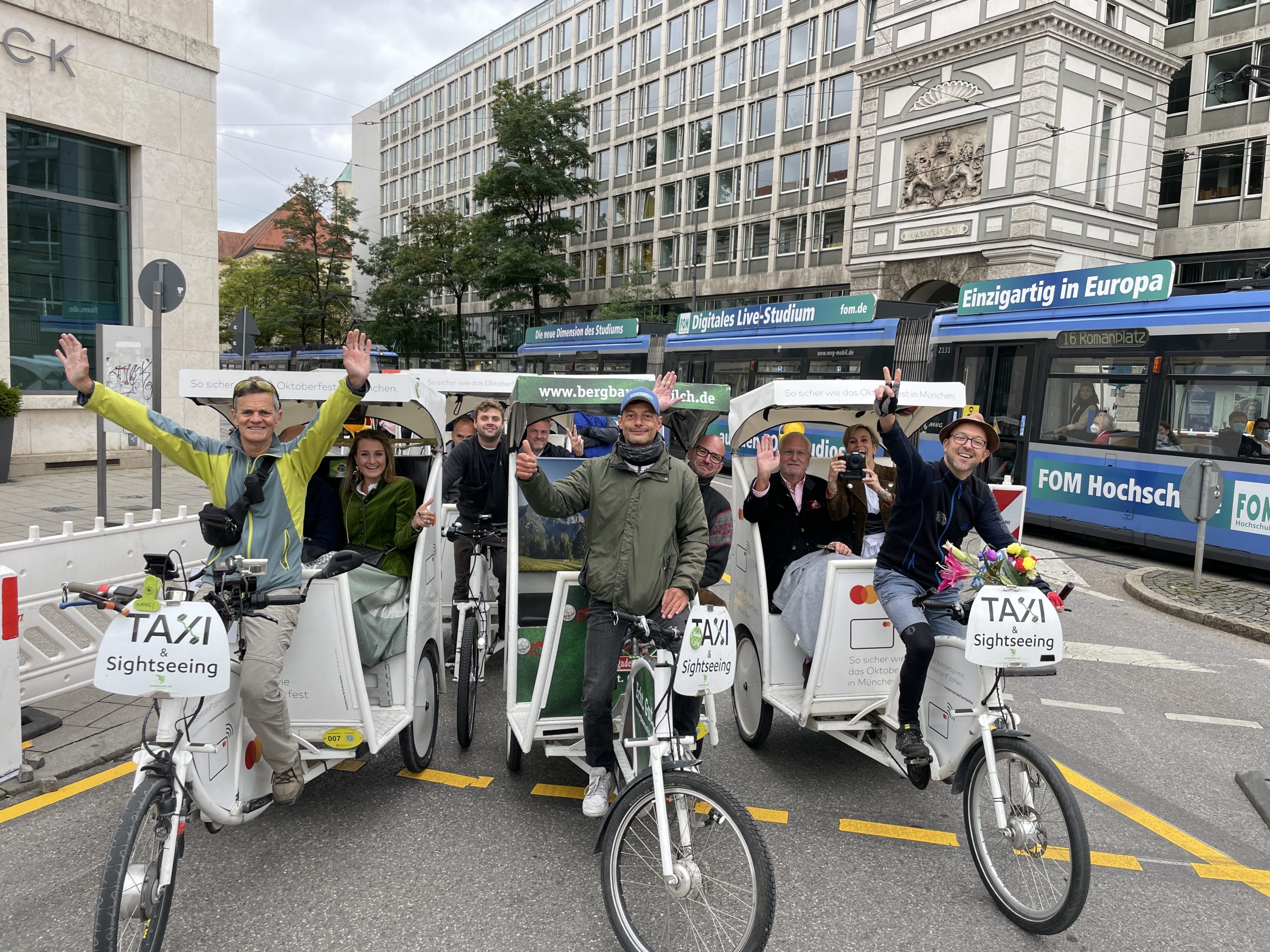 Am Vormittag fuhr ich mit einigen Mode-und Textil-Managern von einem Business Meeting bei hartmann.consultants mit Fahrrad Rikschas auf die Theresienwiese