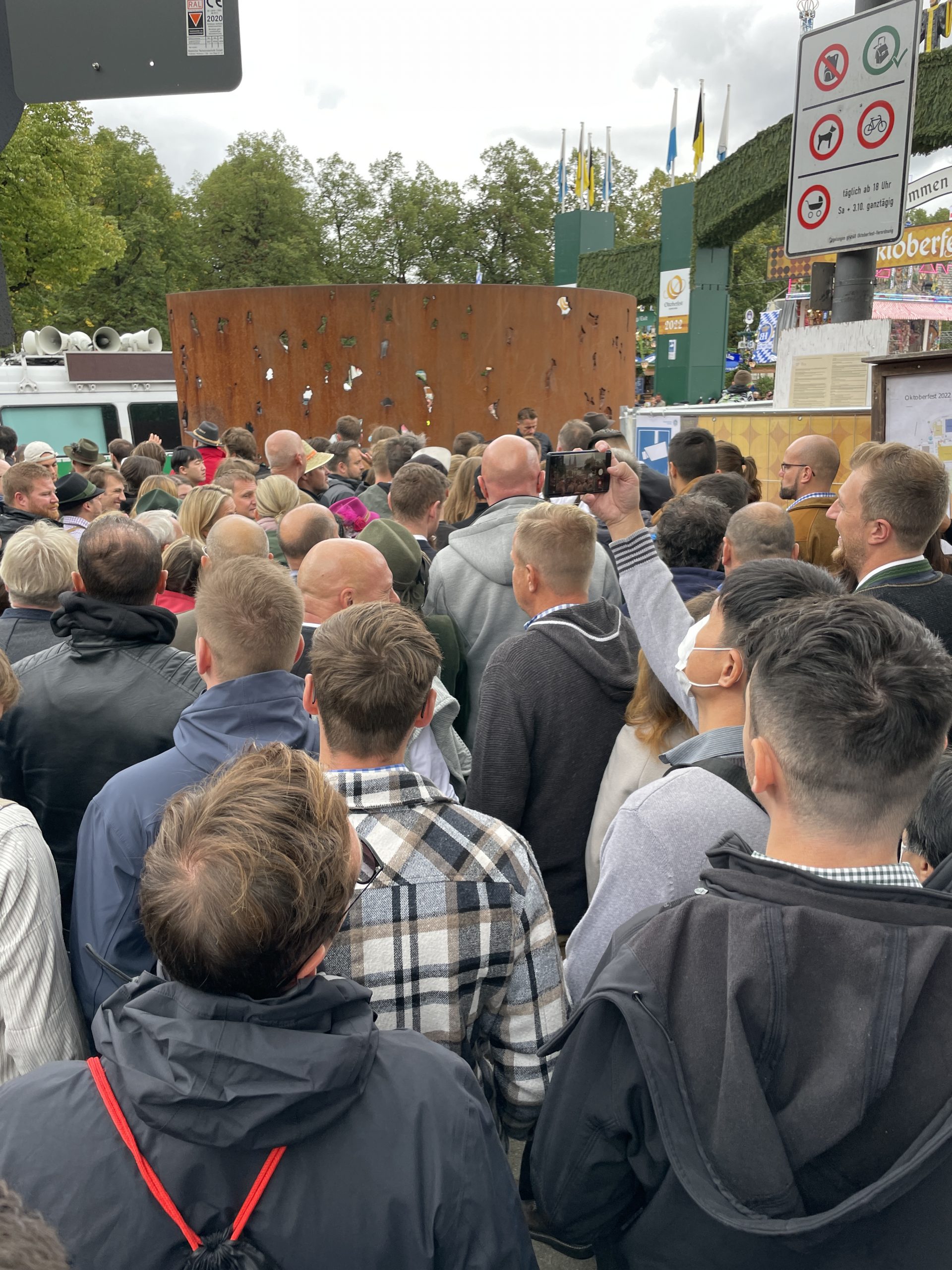 Allerdings bekommt auch niemand etwas zu trinken, bevor um 12:00 Uhr nicht der offizielle Anstich erfolgt ... im Marstall Zelt wird das von Thomas Gottschalk durchgeführt