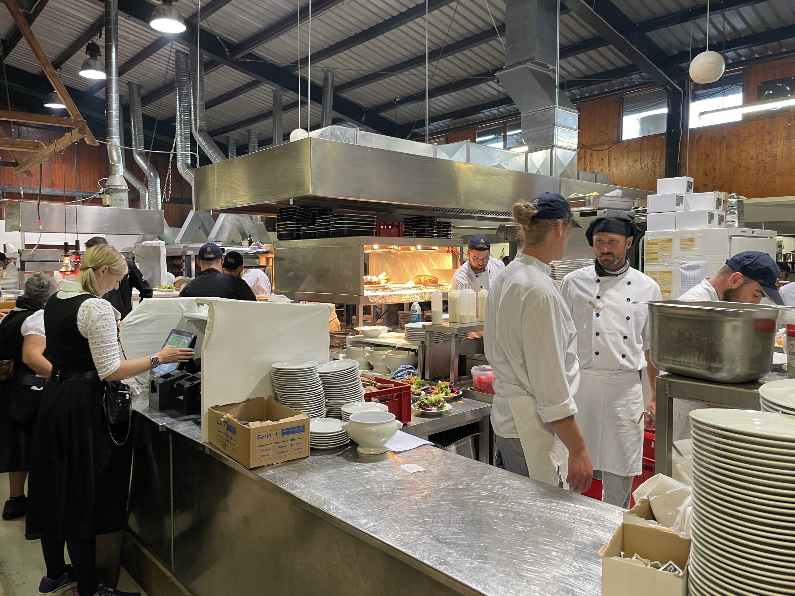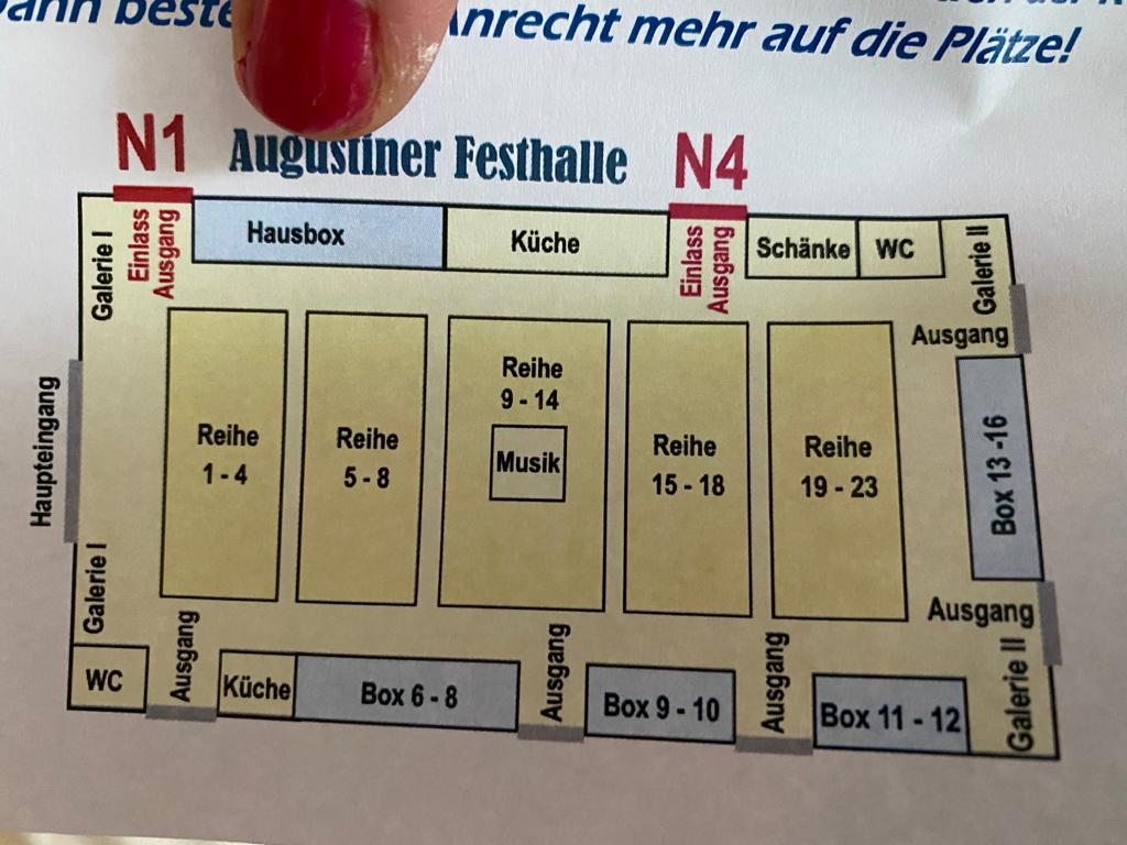 Damit man schnell an seinen Tisch findet ist eine Platzübersicht des Zeltes hilfreich - beeindruckend, welche Mengen aus der Küche des Augustinerzeltes den Weg zur Kundschaft finden