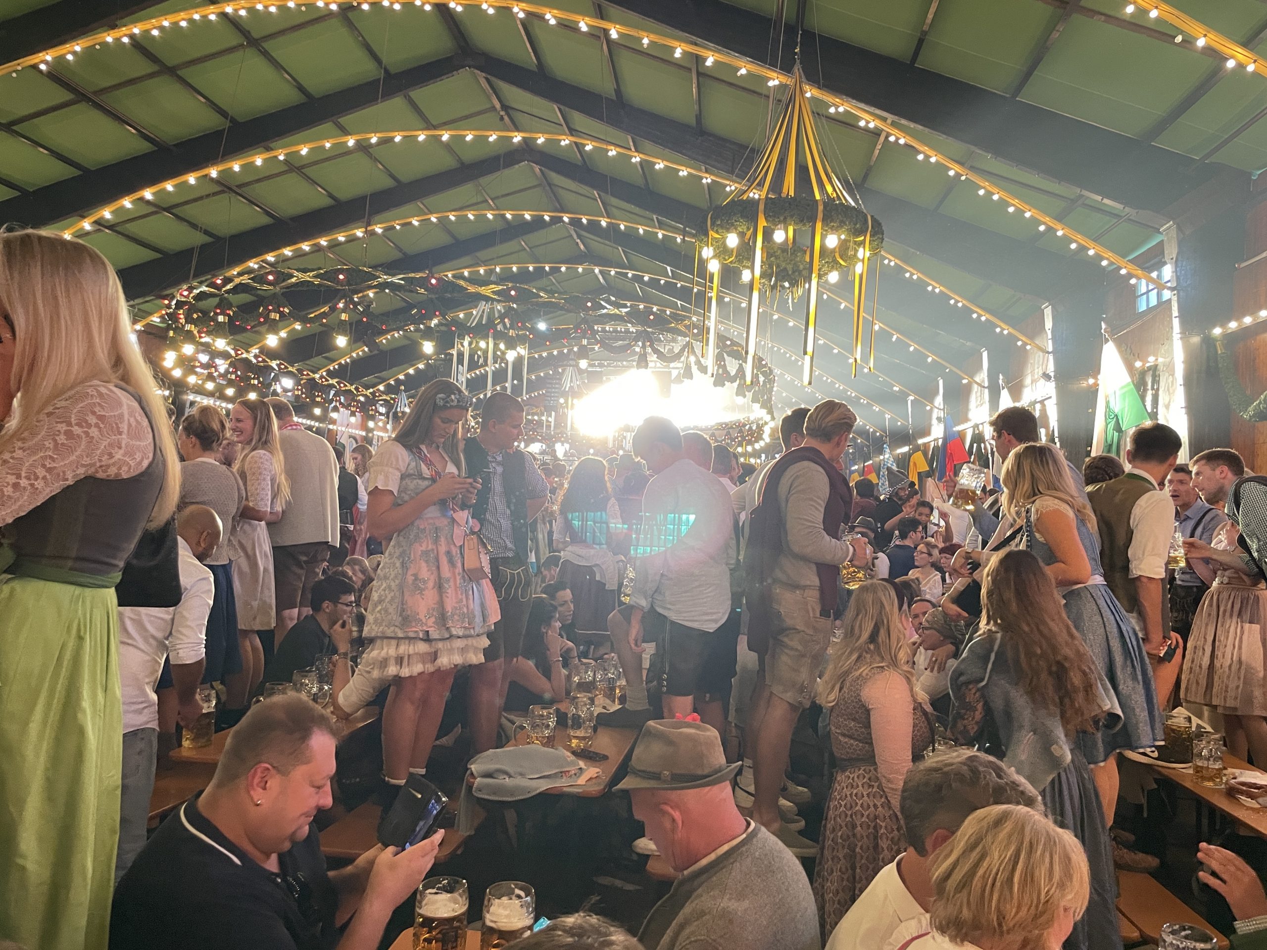 Nach zwei Jahren Zwangspause heißt es beim Oktoberfest endlich wieder: „O‘zapft is. Mit Spannung wurde die entsprechende Verkündung des Münchner Oberbürgermeisters Dieter Reiter erwartet. Ministerpräsident Markus Söder hatte sich bereits Mitte Februar zuversichtlich gezeigt, dass das Volksfeste im Sommer stattfinden können. Seit Freitag, den 29. April ist es offiziell: Vom 17. September bis 3. Oktober heißt es wieder „O‘zapft is“ auf der Theresienwiese in München. Der Anstich in der Schottenhamel-Festhalle ist jedes Jahr der symbolische Startschuss zum Oktoberfest. Um Punkt 12 Uhr zapft Münchens Oberbürgermeister das erste Bierfass an. Die erste Maß geht dann an den bayerischen Ministerpräsidenten. Auch Annette und ich sind diesmal wieder am ersten Tag mit dabei. Ich bin bereits zum Anstich um 12:00 Uhr mit einer Gruppe von Textil- und Mode Managern auf Einladung von hartmann.Consultants im Marstall Zeit, bevor sich Ette und ich am Abend mit Michael Weiß und Stefanie Büchele in der Hausbox des Augustiner Zelts treffen. Genauso traditionell wie der Wiesn-Anstich ist der Einzug der Wiesn-Wirte, der kurz davor stattfindet. Mit festlich geschmückten Wagen und Pferdegespannen starten die Festwirte am ersten Tag der Wiesn zum Festgelände. Los geht das Ganze um 10.45 Uhr von der Josephspitalstraße. Dann marschieren die Wirte über die Sonnenstraße, die Schwanthalerstraße und den Bavariaring, bis hin zum Festgelände. Angeführt werden sie vom Münchner Kindl Viktoria Ostler und dem Oberbürgermeister, mit dabei sind neben den Wiesn-Wirten, auch Bedienungen, Musikkapellen und Schausteller. Wer einen Tisch auf der Wiesn reservieren will, sollte damit nicht allzu lange warten. Schnell sind die beliebten Festzelte ausgebucht, vor allem an den Wochenenden. Die großen und bekanntesten Zelte sind das Augustinerzelt, das Hackerzelt, das Löwenbräuzelt, das Winzerer Fähndl der Paulanerbrauerei, die Bräurosl und die Ochsenbraterei und das Hofbräuzelt. Des Weiteren gibt es das Armbrustschützenzelt und die Fischer-Vroni, die Käfer Schänke, Kufflers Weinzelt, das Marstall, das Schottenhamel und das Schützenzelt. Am ersten Wiesnsonntag ziehen traditionell Trachten- und Schützengruppen durch die Münchner Altstadt bis zur Festwiese. Über 9000 Teilnehmende ziehen dabei mit Wägen, Kutschen und zu Fuß von der Maximilianstraße zur Theresienwiese. Das Volksfest findet seit dem Jahr 1810 auf der Theresienwiese statt. Nur Kriege und Pandemien konnten das größte Volksfest der Welt bisher stoppen. 2020 und 2021 fiel das Oktoberfest wegen der hohen Corona-Zahlen aus. Vor allem im vergangenen Jahr eine große Enttäuschung für die Beteiligten. Vor Corona fiel das Fest zuletzt im Jahr 1948 aus, bevor sich die Theresienwiese 1949 erstmals nach dem Krieg wieder mit Oktoberfestgästen füllte. Seitdem fand die Wiesn bis zum ersten Coronajahr 2020 durchgehend statt.