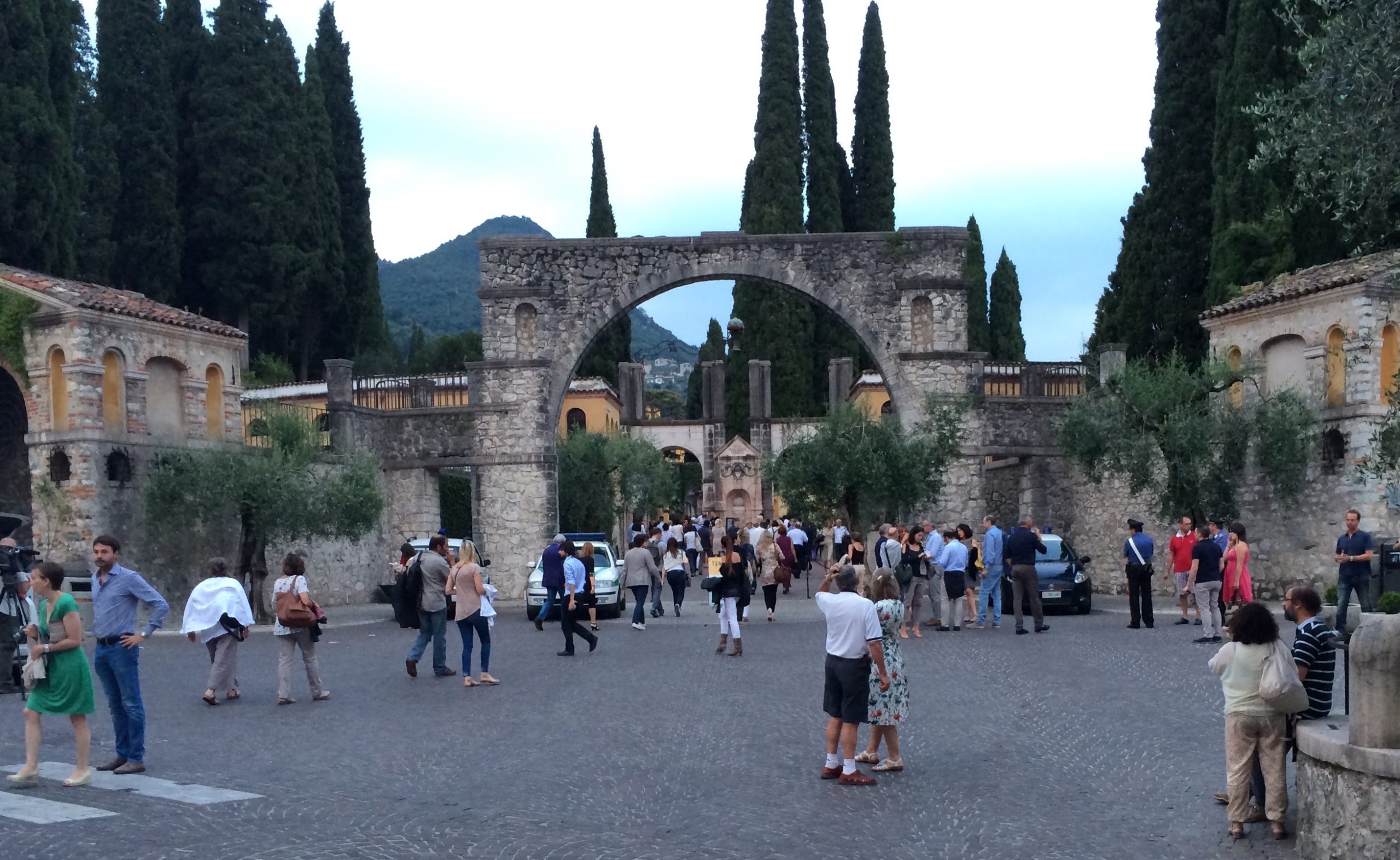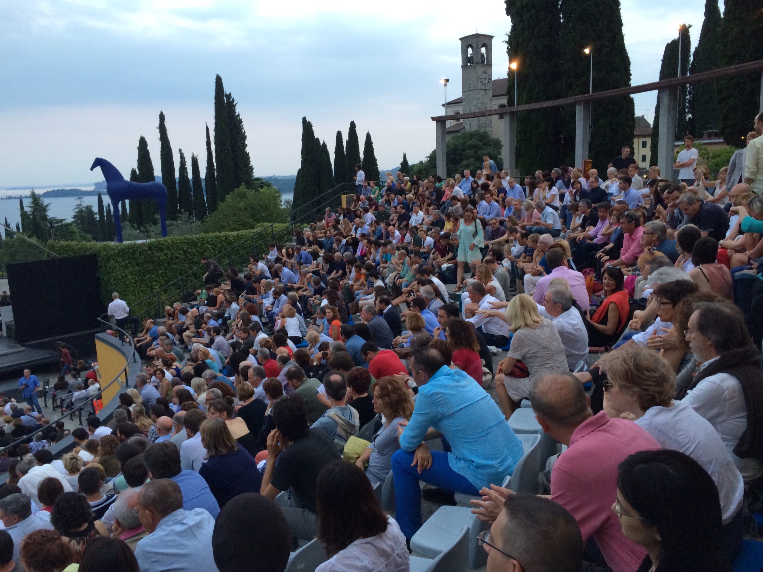 Der Vorplatz zum Vittoriale füllt sich mehr und mehr. Auf dem Programm stehen jedes Jahr namhafte italienische und internationale Künstler. Ausverkaufte Shows und fast 25.000 Zuschauer waren es im letzten Jahr. Heute wird Paolo Conte, der italienische Cantautore (Liedermacher), Komponist und Multiinstrumentalist seinen Auftritt haben.