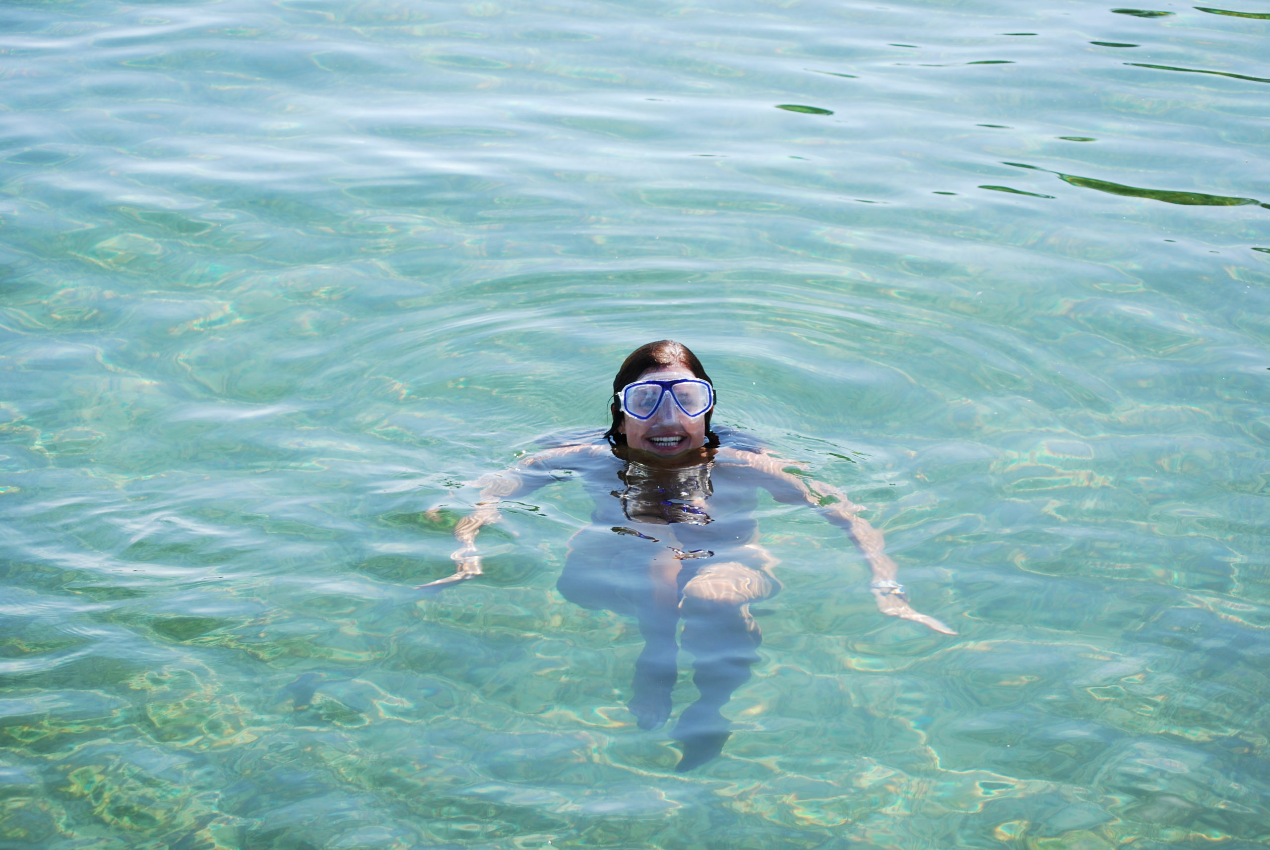 Annette macht sich schon einmal fertig zum Tauchgang.