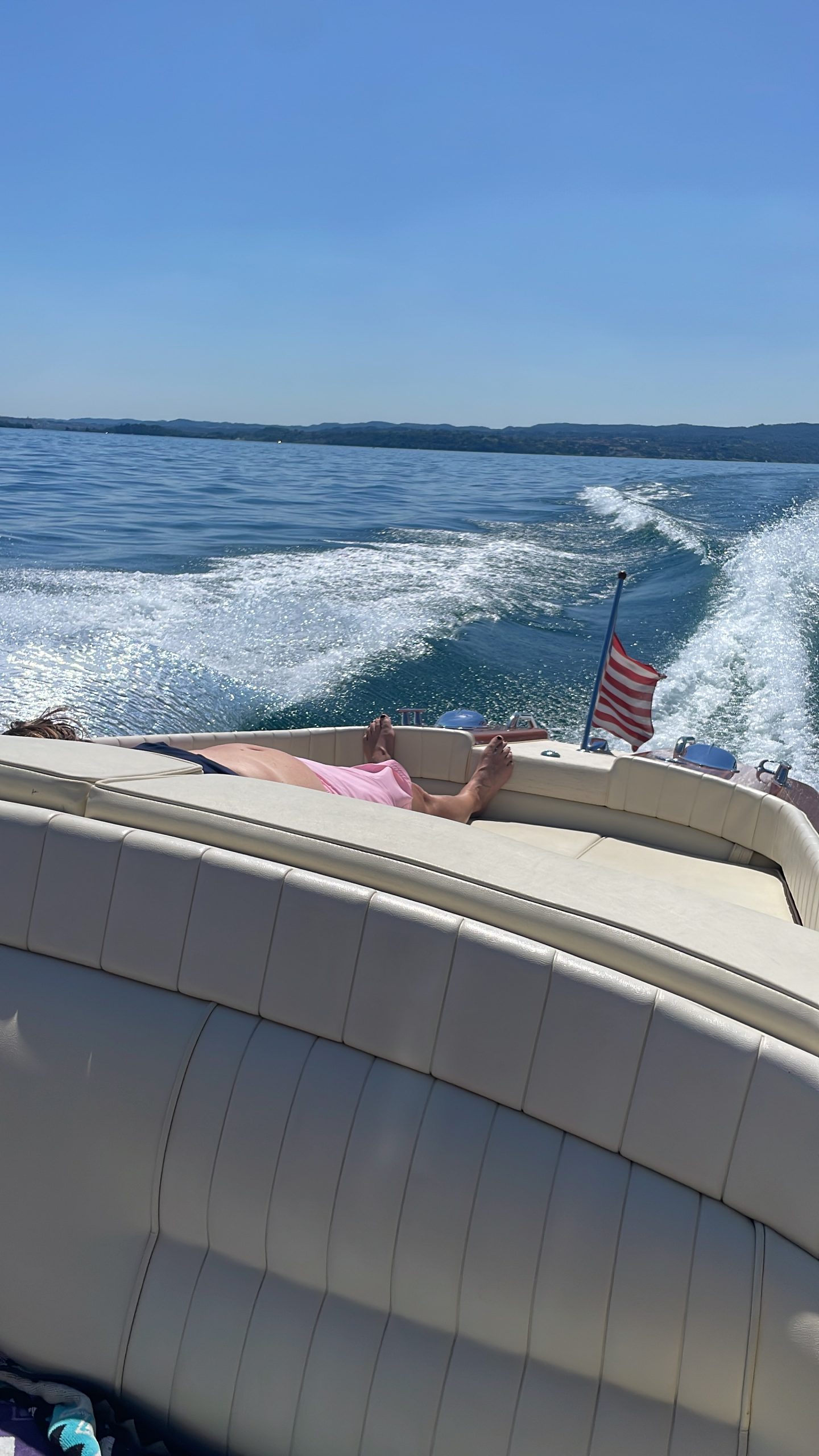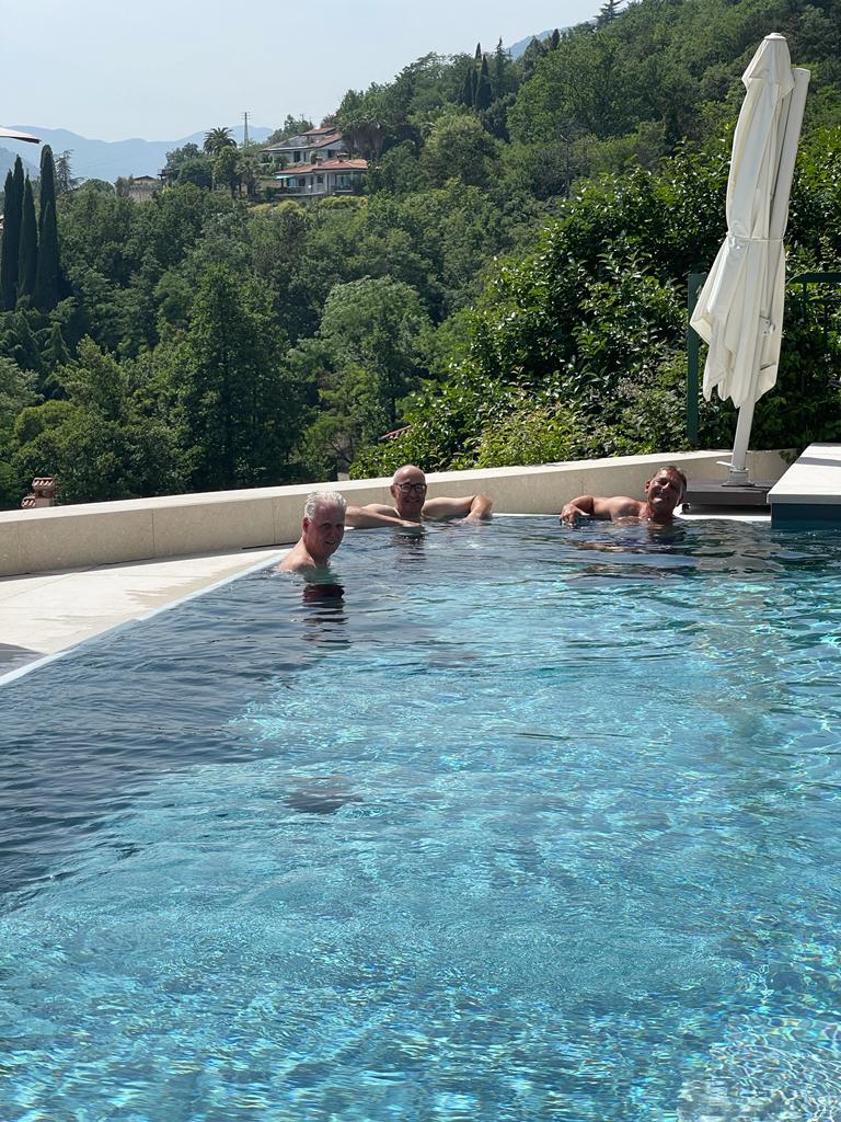 Wir selbst sind zur Abkühlung entweder mit dem Boot beim Baden ... oder in Sannes Pool in der Via Seminario
