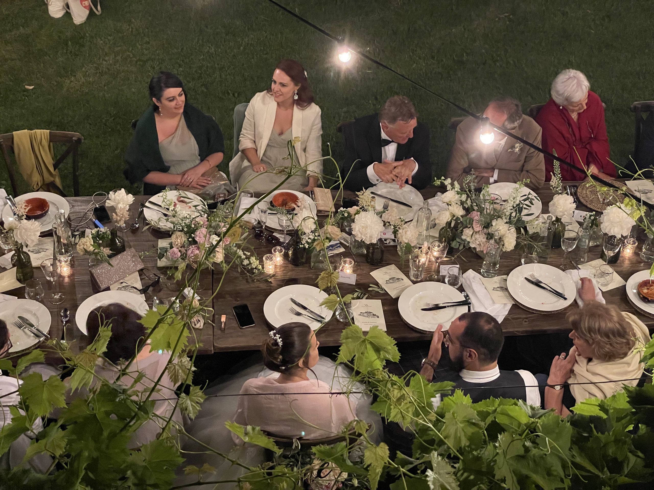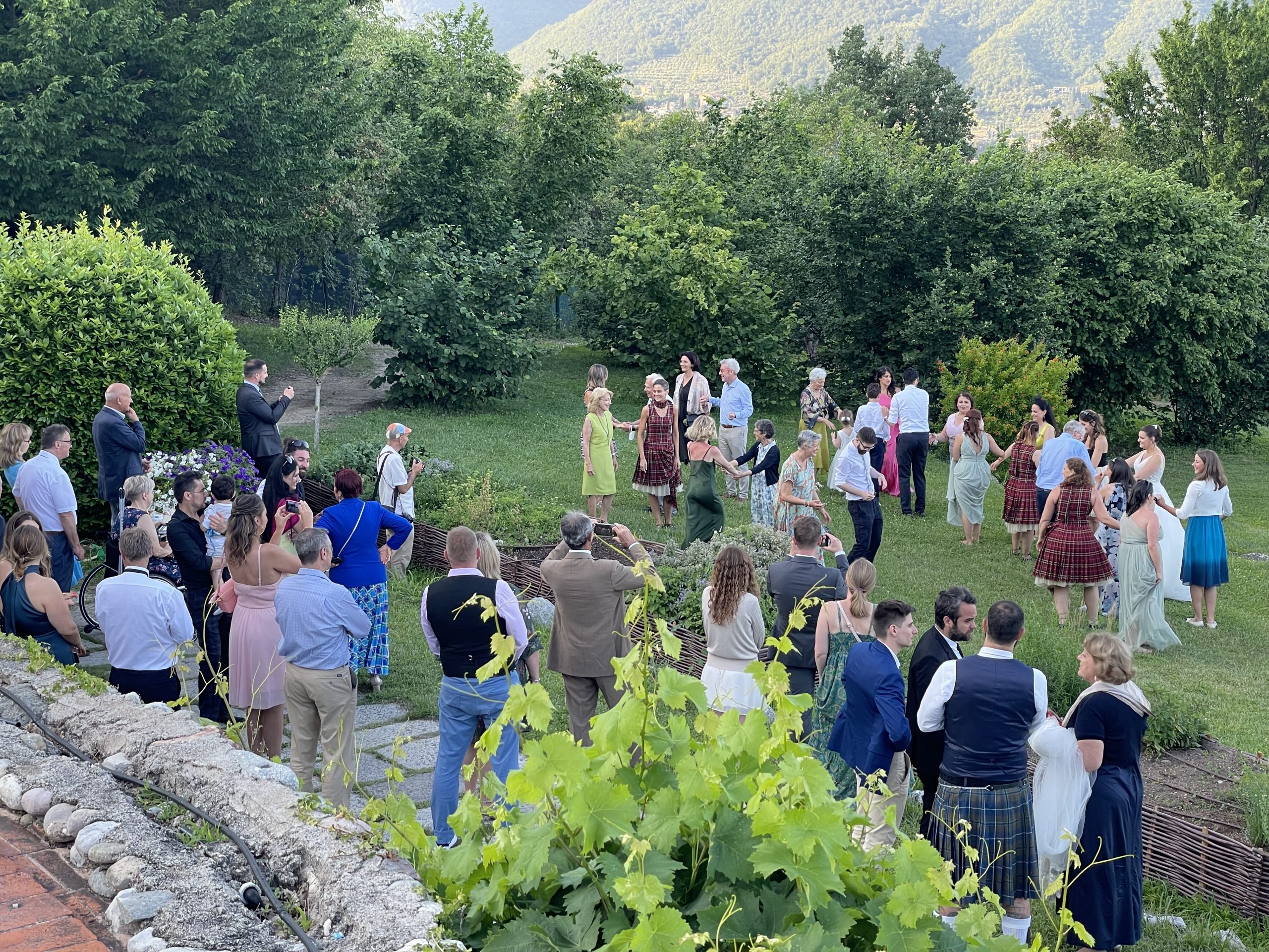 Hier beobachte ich eine schottisch italienische Hochzeitsgesellschaft bei seltsamen Tänzen und anschliessendem kulinarischen Genüssen