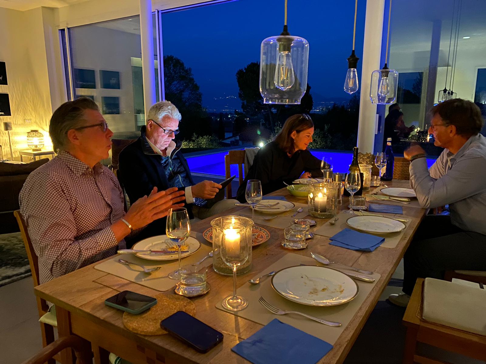 In der Woche vor Ostern waren Mathias Gehrckens und Stephan Mathes von Düsseldorf aus mit ihren beiden betagten 911er Porsches im Konvoi an den Gardasee gefahren und hatten auf dem Weg nach San Felice auch noch einen Wandertag am Lago di Como eingelegt. Stephan ist Mathias früherer Geschäftspartner aus D-Group Zeiten und heute als Geschäftsführer bei der Personalberatung Treuenfels tätig. Susanne war mit Hugo und Henri noch anderweitig in NRW beschäftigt und kam erst am Ostersamstag mit dem Flieger nach Italien nach. Daher war es besonders nett, daß die beiden Herren Annette, Jasmin, Michi und mich am Karfreitag im Haus Gehrckens im Paradiso bekochten. Der Chefkoch Stephan sevierte ausschließlich vegetarische Gerichte. Gläubige Christen verzichten an Karfreitag, der Teil der Fastenzeit vor Ostern ist, auf Fleisch. Aus diesem Grund weichen viele Menschen an diesem Tag auf Fisch aus – darüber hinaus ist der Fisch ein Symbol für das Christentum und passt daher gut zu dem Feiertag. Beliebt sind beispielsweise Rezepte mit Lachs, Forelle oder Kabeljau. Aber auch leichte, vegetarische Gerichte – zum Beispiel mit Eiern oder saisonalen Zutaten wie Spargel – eignen sich für das Karfreitagsessen. Fleisch wurde früher nur zu freudigen Anlässen serviert, da es ein sehr teures Lebensmittel war. Da an Karfreitag aber an die Kreuzigung Jesu gedacht und der Tag als Fasten- und Abstinenztag verstanden wird, fällt das Essen von Fleisch weg. Heutzutage ist die katholische Kirche nicht mehr so streng mit ihren Essensvorschriften und macht beispielsweise Ausnahmen für kranke Menschen. Als sogenannter stiller Feiertag unterliegt der Karfreitag auch einigen gesetzlichen Einschränkungen, zum Beispiel existiert ein Tanzverbot, das aber von Bundesland zu Bundesland unterschiedlich streng durchgesetzt Je nach Region gibt es verschiedene traditionelle Rezepte für den Karfreitag. Dazu zählen etwa Eier in grüner Soße oder gebeizter Lachs. Im Norden gibt es häufig Struwen: Dabei handelt es sich um dicke, Pfannkuchen-ähnliche Teiglinge, die aus Hefe bestehen und Rosinen enthalten. Sie halten lange satt und sind deshalb ideal für die Fastenzeit. Generell macht man nichts falsch, wenn man sich an Karfreitag fleischlos ernährt und stattdessen auf leichte Gerichte setzt. An Karsamstag endet dann die Fastenzeit und man kann sich mit einem leckeren Osteressen für seine Geduld belohnen.