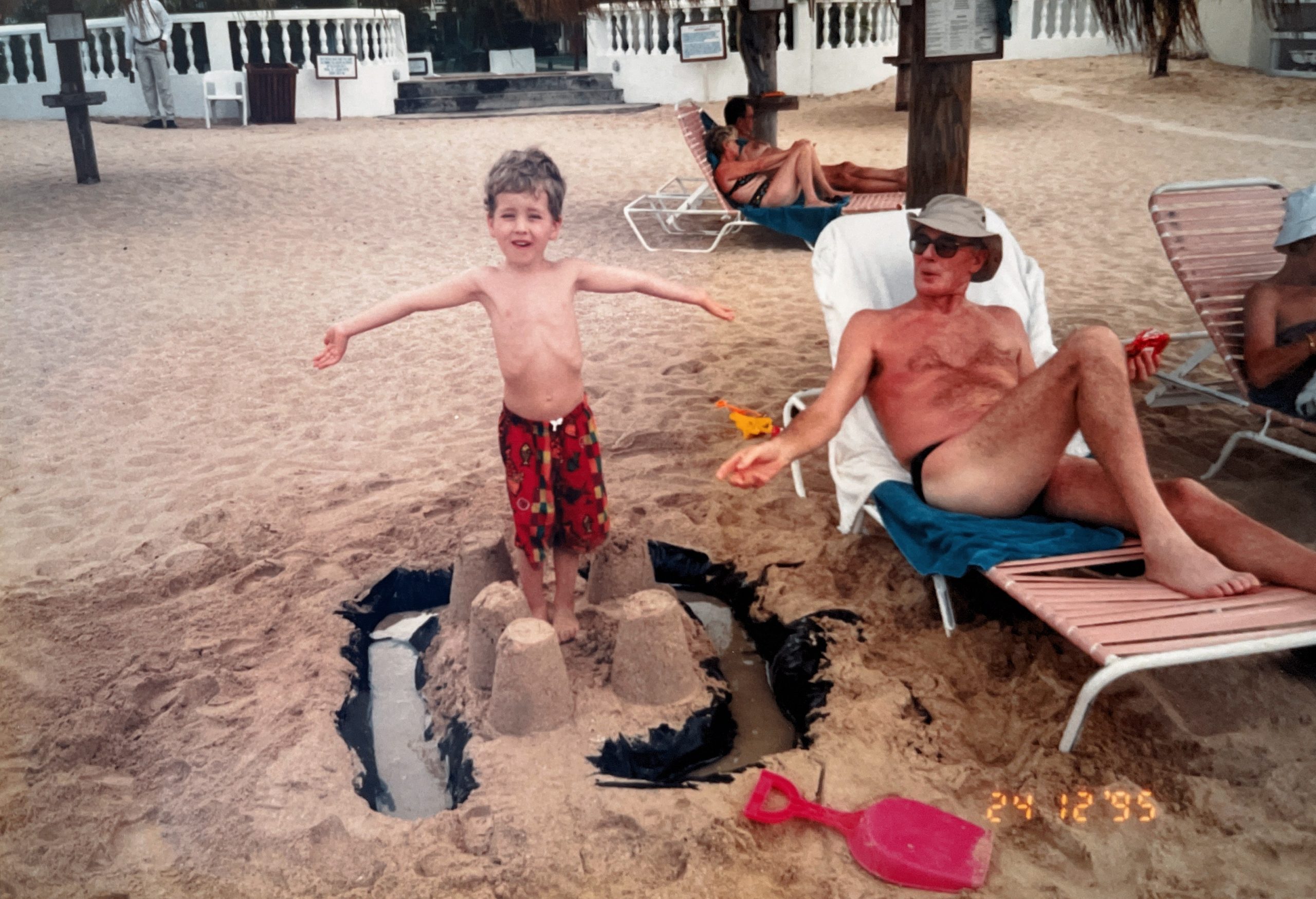 Auch der holländische Besitzer der Firma O´Neill Sportswear - den ich von verschiedenen Treffen auf der Messe ISPO in München kannte - machte in unserem Hotel seinen Weihnachtsurlaub. Selbst seine Schuhe wurden durch Paul tief im Sand verbuddelt, da er sich fahrlässigerweise mit seiner Liege zu nah am Aktivitätsbereich von Paul platziert hatte.