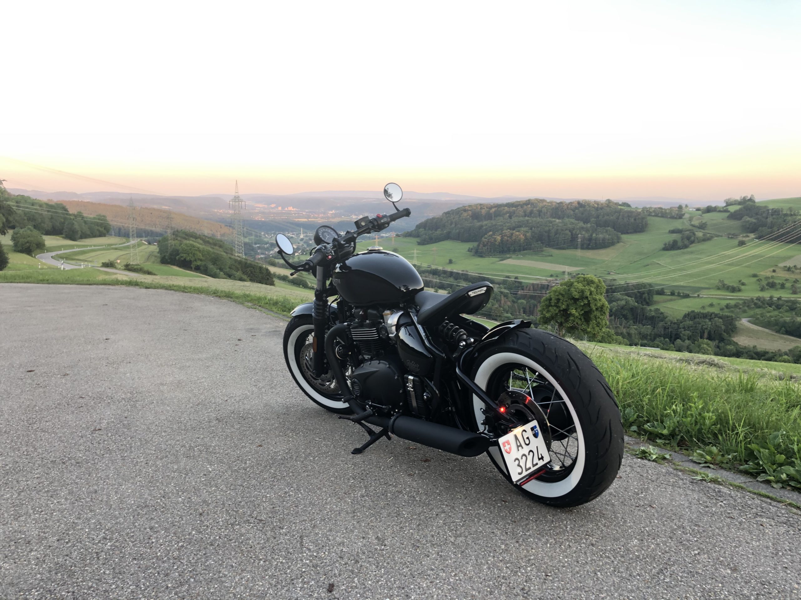 Auf der Triumph Bobber kann ich jedoch gar niemanden mitnehmen und bin immer solo unterwegs