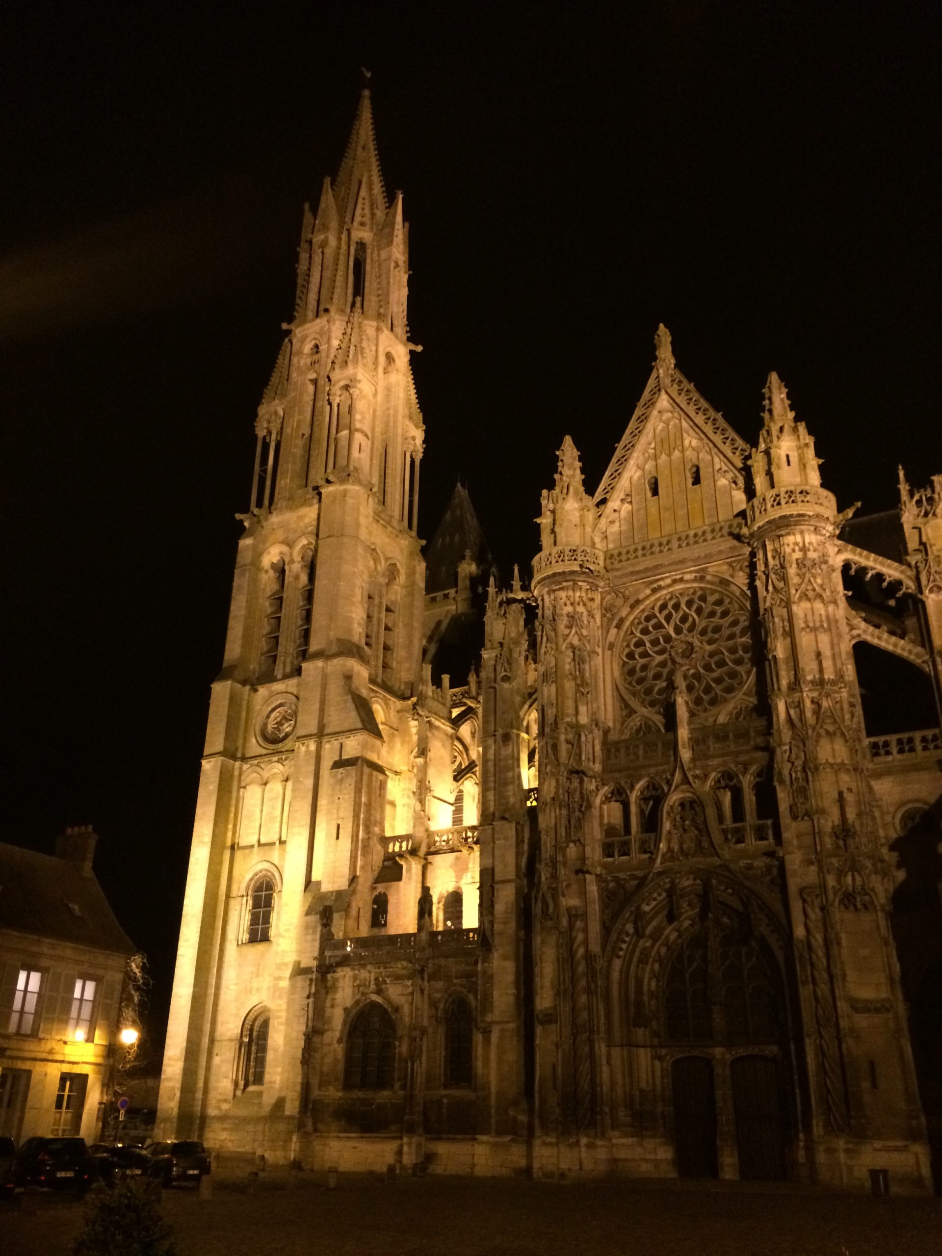 Diese wunderschöne Kathedrale, neben der wir abends beim Essen waren, heißt Notre-Dame de Senlis, und ist eine gotische ehemalige Kathedrale in Senlis, Département Oise, Frankreich. Erbaut wurde sie zwischen 1153 und 1191. Die Westfassade entstand um 1170, der Südturm in der Mitte des 13. Jahrhunderts, sein Obergeschoss ist den Türmen der Kathedrale von Laon nachempfunden. Die Bedeutung der Kirche liegt in ihrem „Marienportal“. Das Gebiet des in der Französischen Revolution aufgehobenen Bistums Senlis gehört seit 1822 zum Bistum Beauvais.