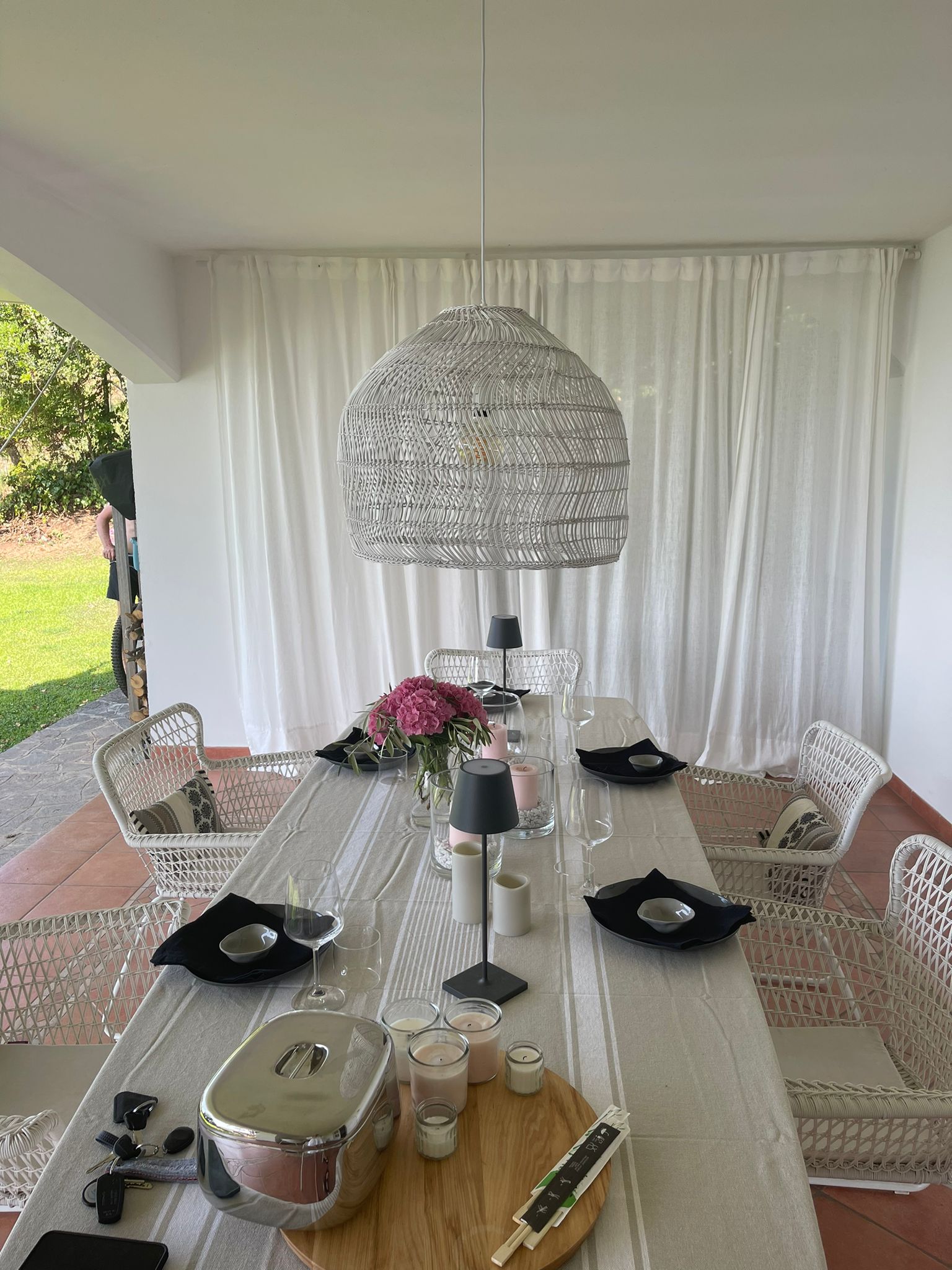 Ette hat alles perfekt eingedeckt ... heute sitzen wir am unteren Esstisch, an dem wir noch zwei neue Lampen installiert haben