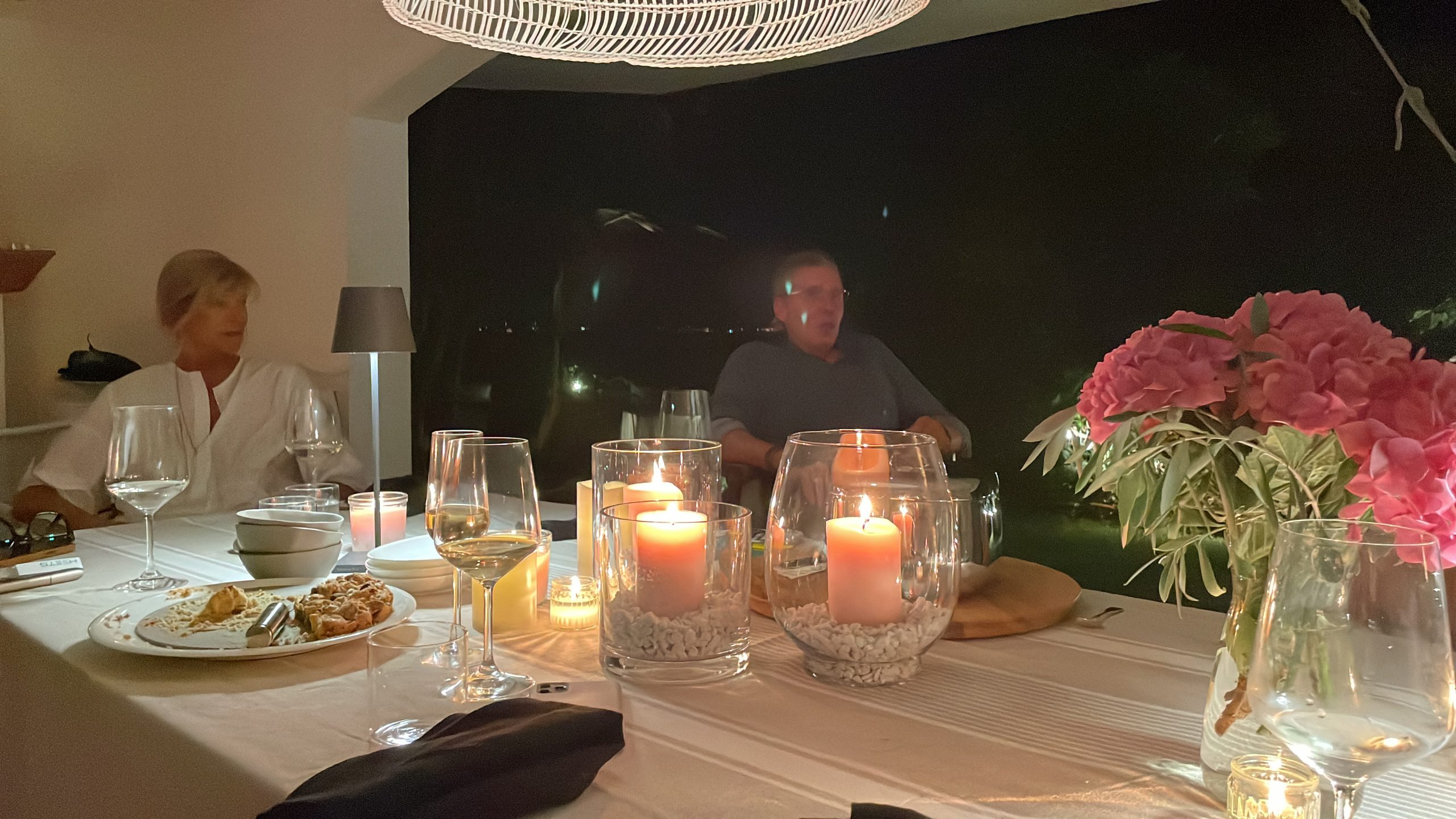 Annette und ich gehen sehr gerne in die wunderbaren Lokale am Gardasee aus, wir lieben es allerdings auch stressfrei und unkompliziert mit Freunden zu Hause zu essen. Ein perfektes Dinner und ein gelungener Abend bei einer Dinnerparty hängt dabei sowohl von der richtigen Menüauswahl wie auch einer optimalen Kombination und Koordination der Gäste ab. Nachdem wir in der Sommersaison fast jede Woche Freunde zum Essen in die Via Panoramica einladen haben wir mittlerweile ausreichend Routine, daß das immer klappt. Optimalerweise gibt man seinen Gästen von Anfang an das Gefühl, in seinem eigenen Haus willkommen zu sein und macht keine Show aus dem Event. Weder, wenn es nur ein nettes Abendessen unter der Woche ist oder doch eine größere Runde am Wochenende geplant ist. Bei Ankunft deiner Gäste sollte keiner mehr am Herd stehen – was bei mir sowieso nicht der Fall ist - sondern alles vorbereitet und fertig sein. Nachdem kein Gast gerne mit leeren Händen beim Gastgeber auftaucht, kann man im Vorfeld Aufgaben verteilen, wer was mitbringt ... Vorspeise, Nachspeise oder Getränke. Und so ist „Aufgaben verteilen“ immer ein guter Tipp für Dinnerpartys. Das mag dem einen oder anderen nicht besonders leichtfallen, aber das Mitbringen einer Flasche Sekt, von etwas Baguette oder einem Nachtisch ist praktisch und erspart Arbeit. Ein 3-Gänge-Menü ist Pflicht, wobei gemischte Vorspeisen, die in mehreren Schüsseln auf dem Tisch verteilt und im Laufe des Abends durch die passenden Bestandteile des Hauptgerichts ergänzt werden optimal sein können. Jeder Gast liebt jedoch einen vollgedeckten Tisch mit Snacks und Fingerfood. Oliven, verschiedene Sorten Käse, ein leckerer Dip, Cracker oder ein paar Scheiben gutes Brot sind nur eine kleine Auswahl an Möglichkeiten. Die kleinen Appetithappen sind der perfekte Start in einen schönen Abend, beschäftigen die Gäste zu Beginn und ergänzen den ersten Drink! Je exquisiter, desto besser und der Wein muss fließen: „Lasse keinen deiner Gäste auf dem Trockenen sitzen!“. Auch, wenn das stimmen mag, sollten es nicht immer nur alkoholische Getränke sein. Unabdingbar ist, ausreichend Wasser - am besten aus wieder befüllbaren Glasflaschen - zur Verfügung zu stellen. Neben den klassischen alkoholischen Getränken ist eine Auswahl an innovativen nicht-alkoholischen Varianten die Aufgabe eines jeden guten Gastgebers. Zwar ist der Gast König, aber etwas Hilfe hat noch nie jemandem geschadet und lockert sogar so mache angespannte Situation auf. Heute haben wir uns für Sushi entschieden und haben es dadurch besonders einfach. Die umfangreiche Order an Köstlichkeiten muss durch mich nur noch im Brunati abgeholt werden und alles läuft
