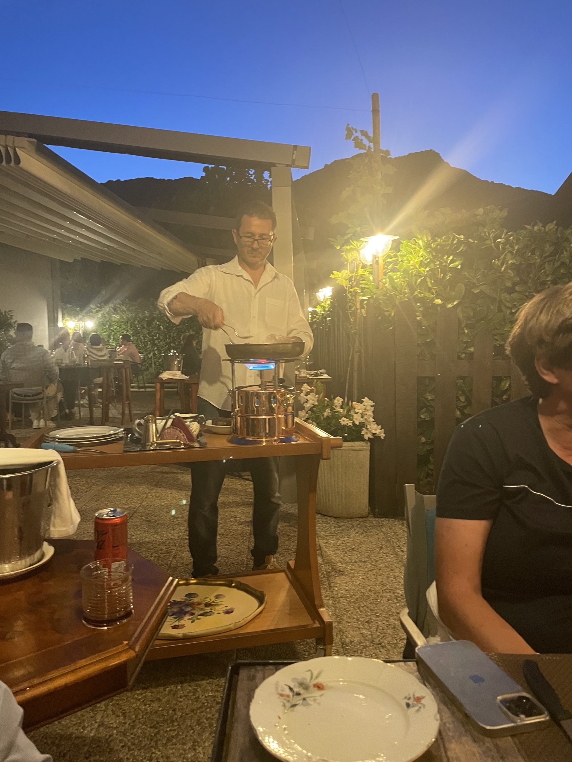Der Chef Oskar flambiert die Filets ... immer ein Spektakel am Tisch