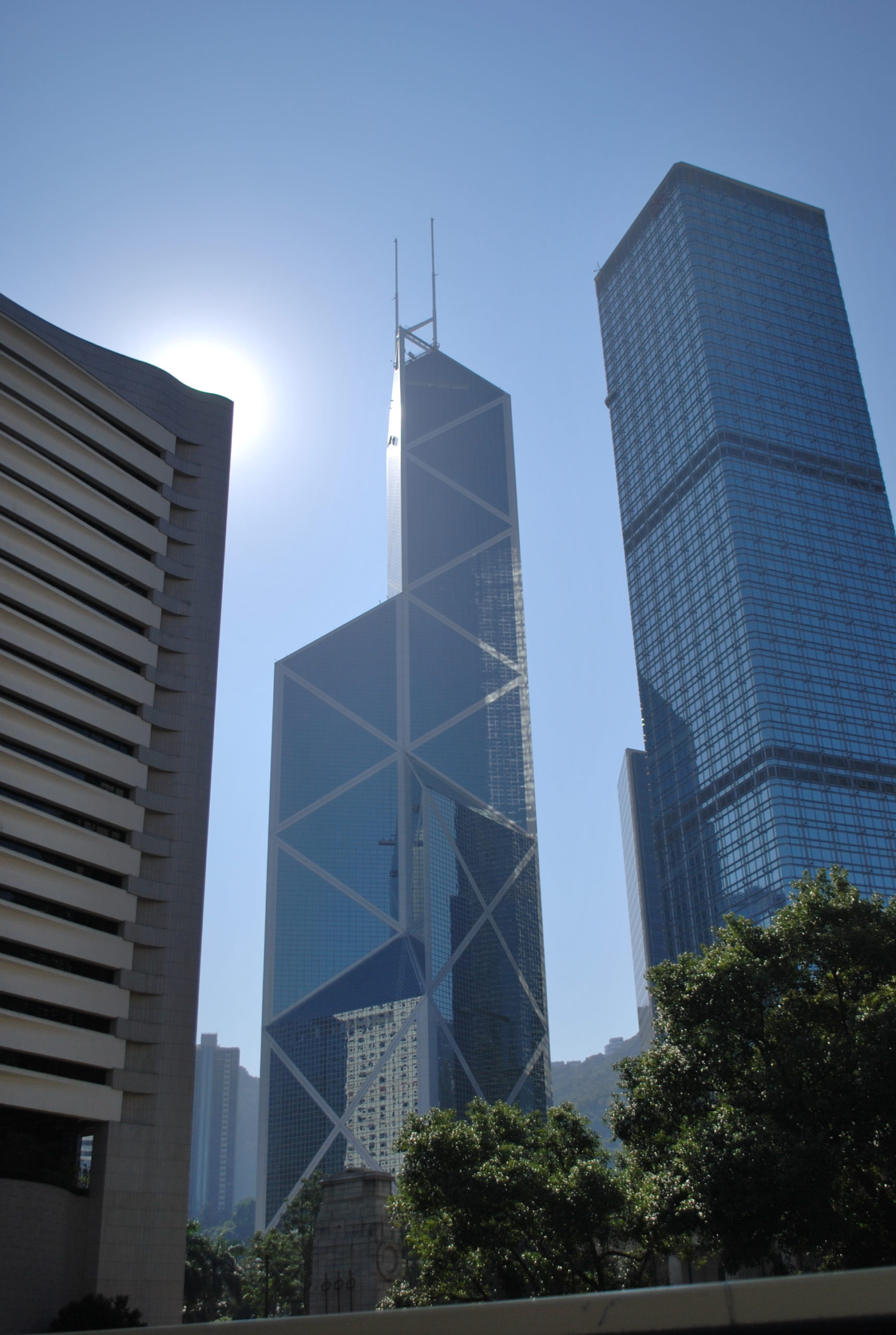 Hong Kong ist die Stadt mit den meisten Wolkenkratzern der Welt. Hier im Bild ist das grandiose Gebäude der Bank of China Tower - Architekt war der berühmte Pritzker Preisträger I.M. Pei.