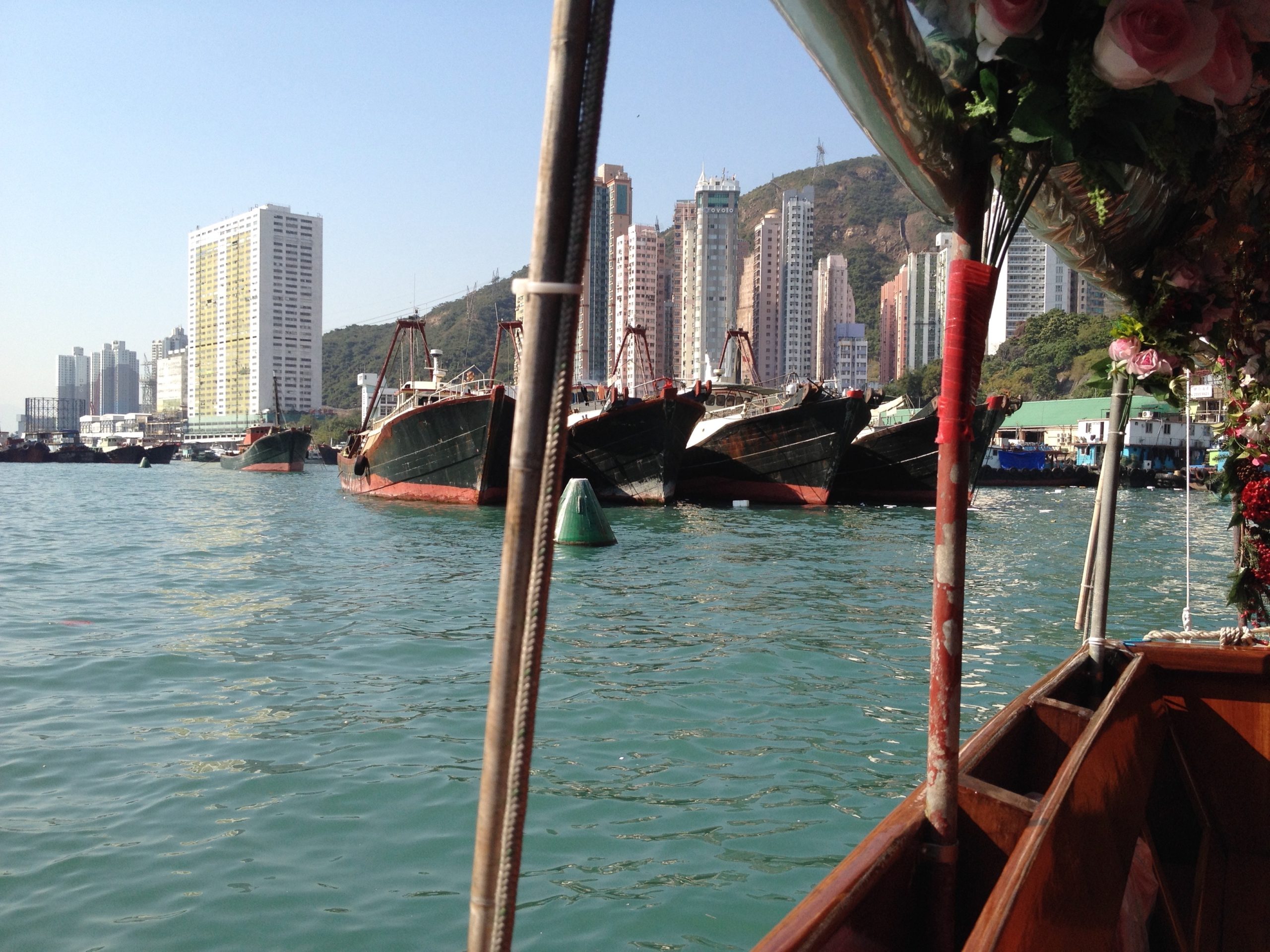 Eine Rundfahrt durch Aberdeen Harbour auf der Rückseite von Hongkong Island. Dieser Hafen ist die Heimat für die Fischerei Flotten, wohingegen Victoria Harbour zwischen Kowloon und Hongkong Island weltweit für seine unglaubliche Effizienz bei den großen Containerschiffe bekannt ist