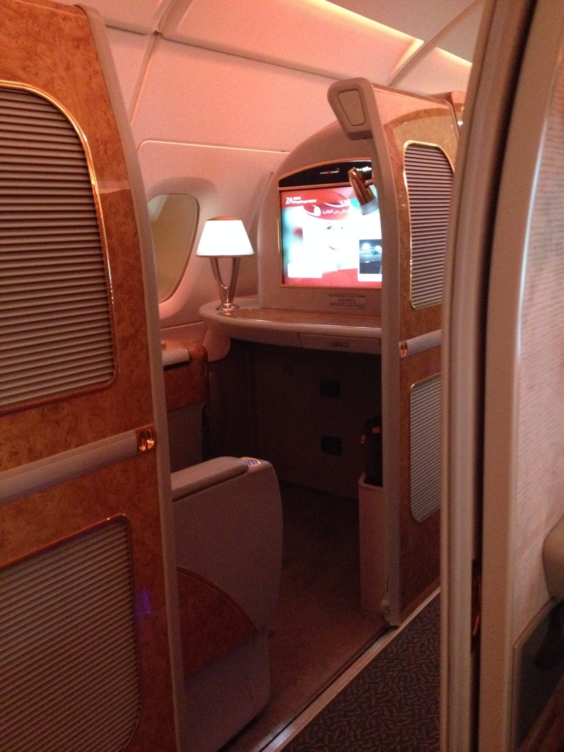 Im Ambiente der Emirates First Class mit seinem herausragenden Service und einem extrem gemütlichen kleinen Schlafzimmer kann auch ein Langstreckenflug von 13 Stunden ganz entspannt und sehr erholsam verlaufen ... den Upgrade in diese Kabine gab es, da Annette in der Nacht des Rückflugs ihren Geburtstag feierte und unsere Champagner Versorgung in der Front Cabin wesentlich einfacher zu organisieren war