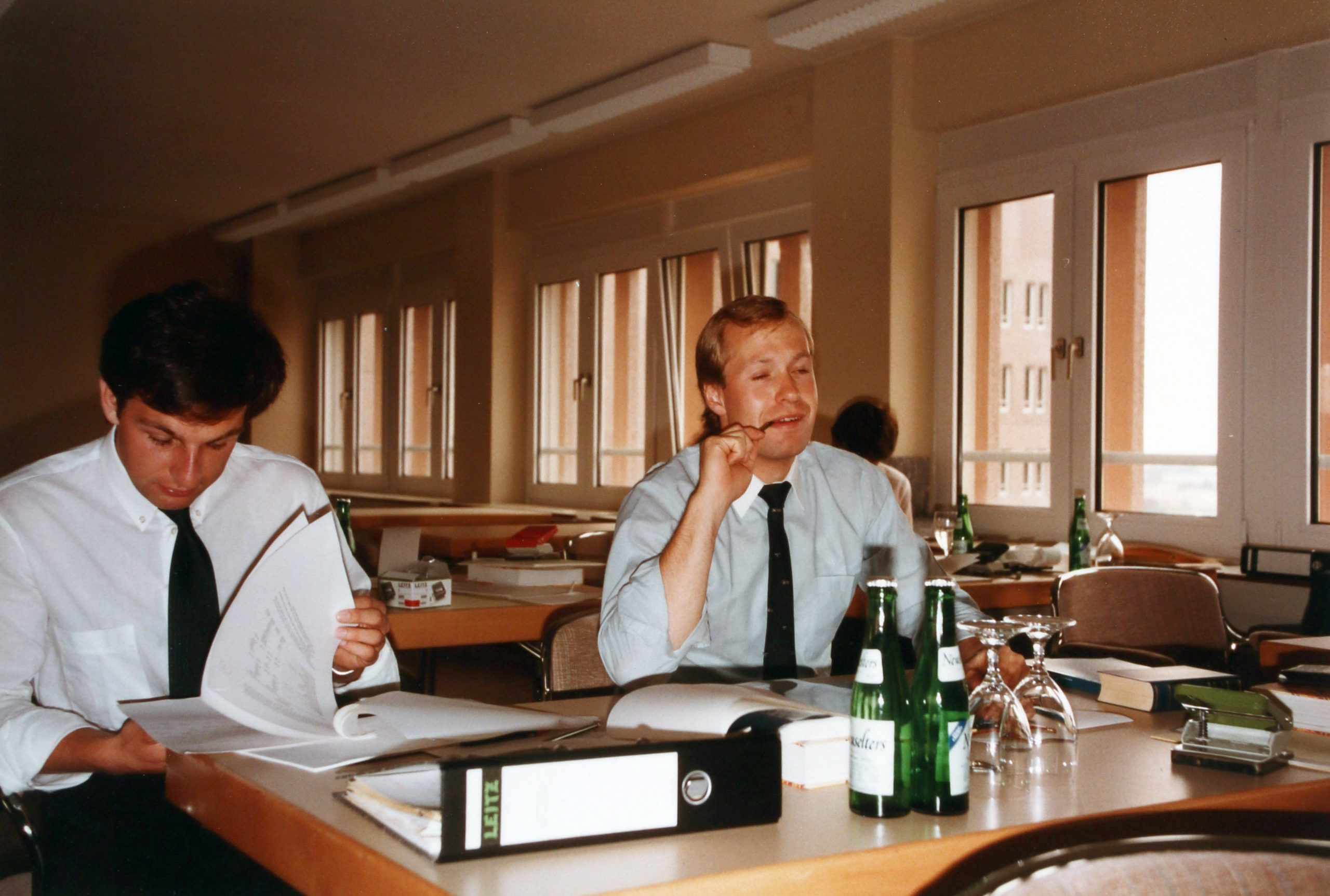 Konzentration bei den Prüfungen sieht eben bei jedem anders aus. Jörg Plettendorf kaut gedankenverloren auf seinem Bleistift, der andere ist vertieft in seine Lektüre