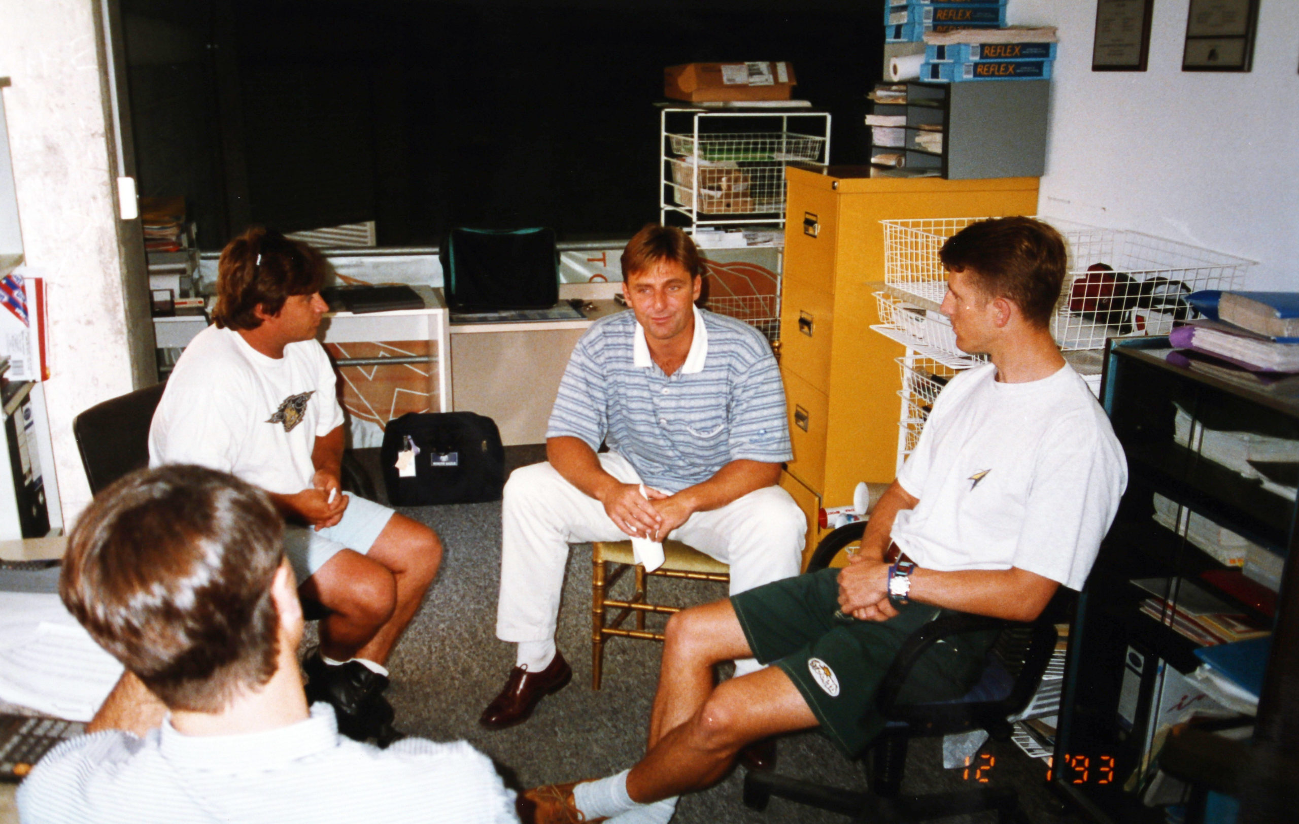 Auch die Arbeitsbesprechungen finden im lockeren Kreis statt ... hier zusammen mit dem Star der australischen Surf Szene ... Scotty O´Connor .. links neben Michi