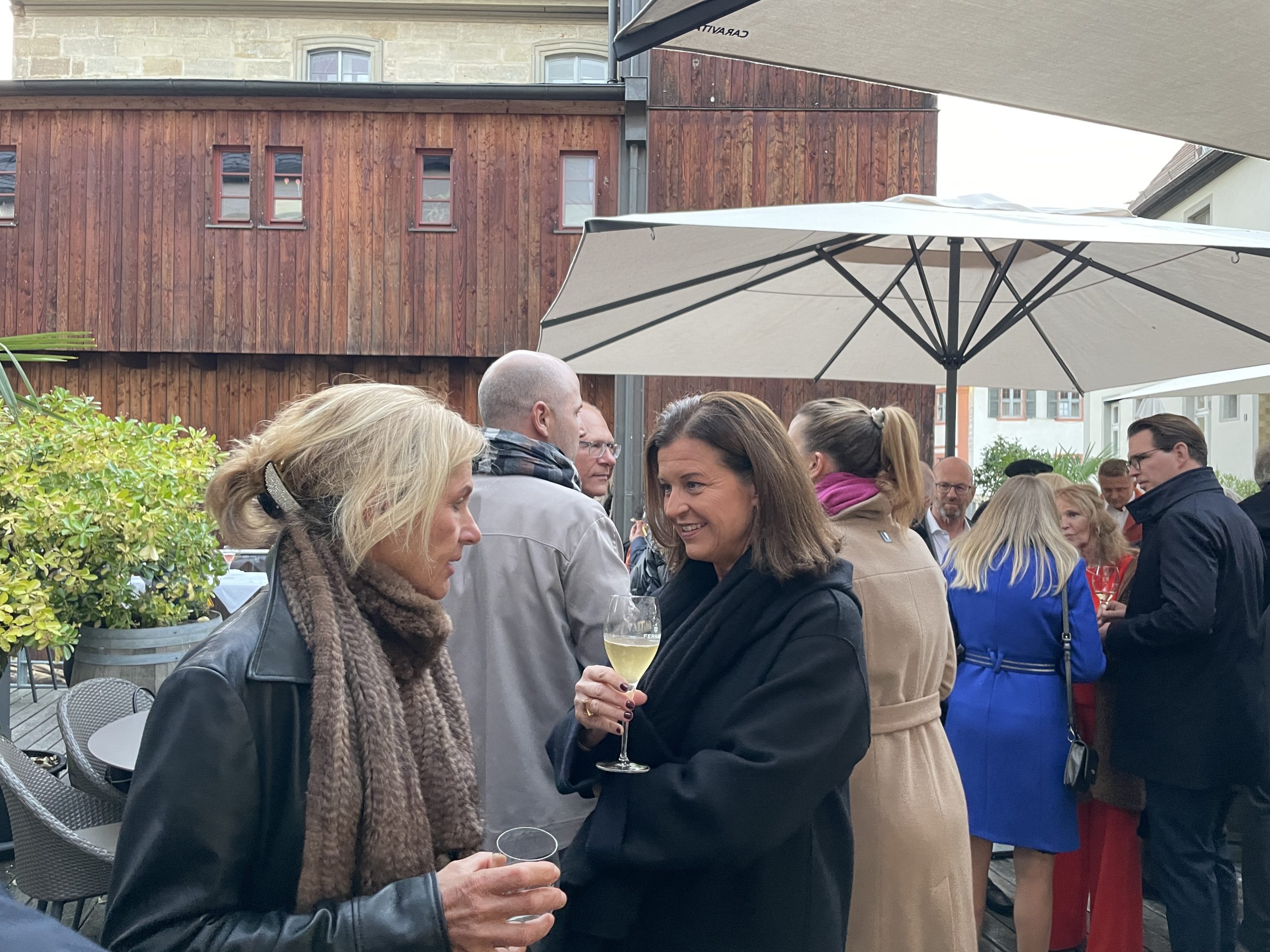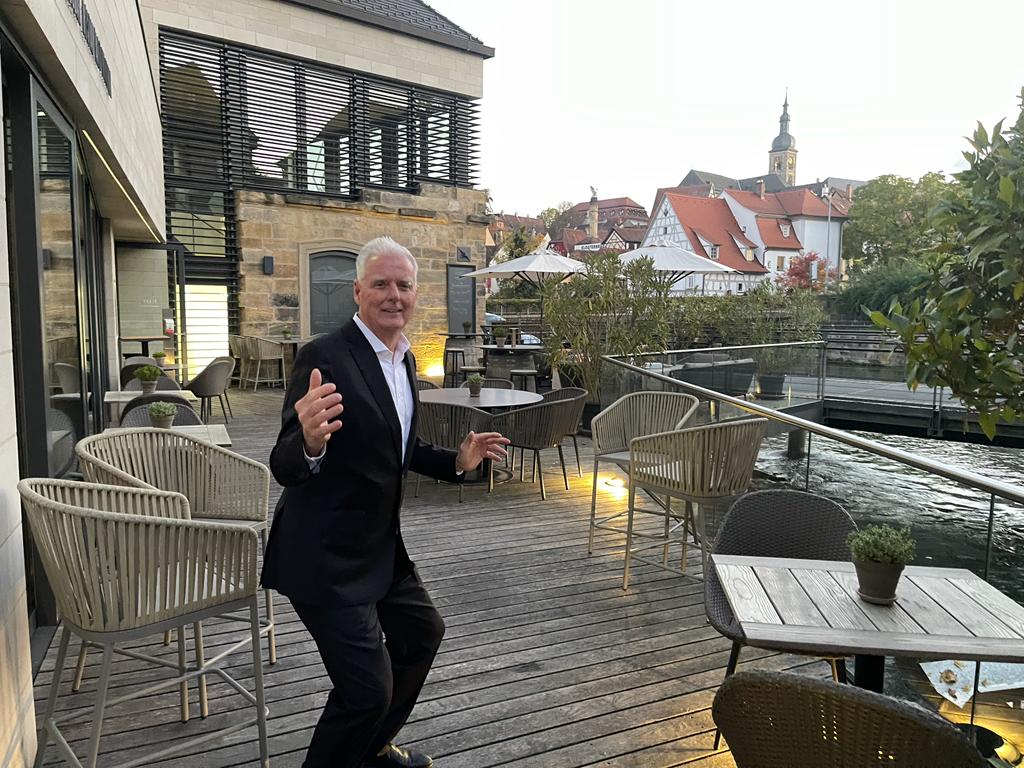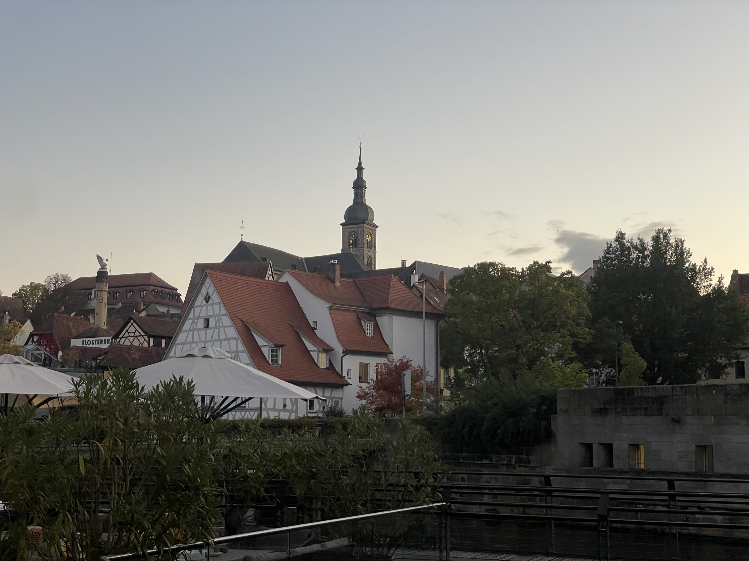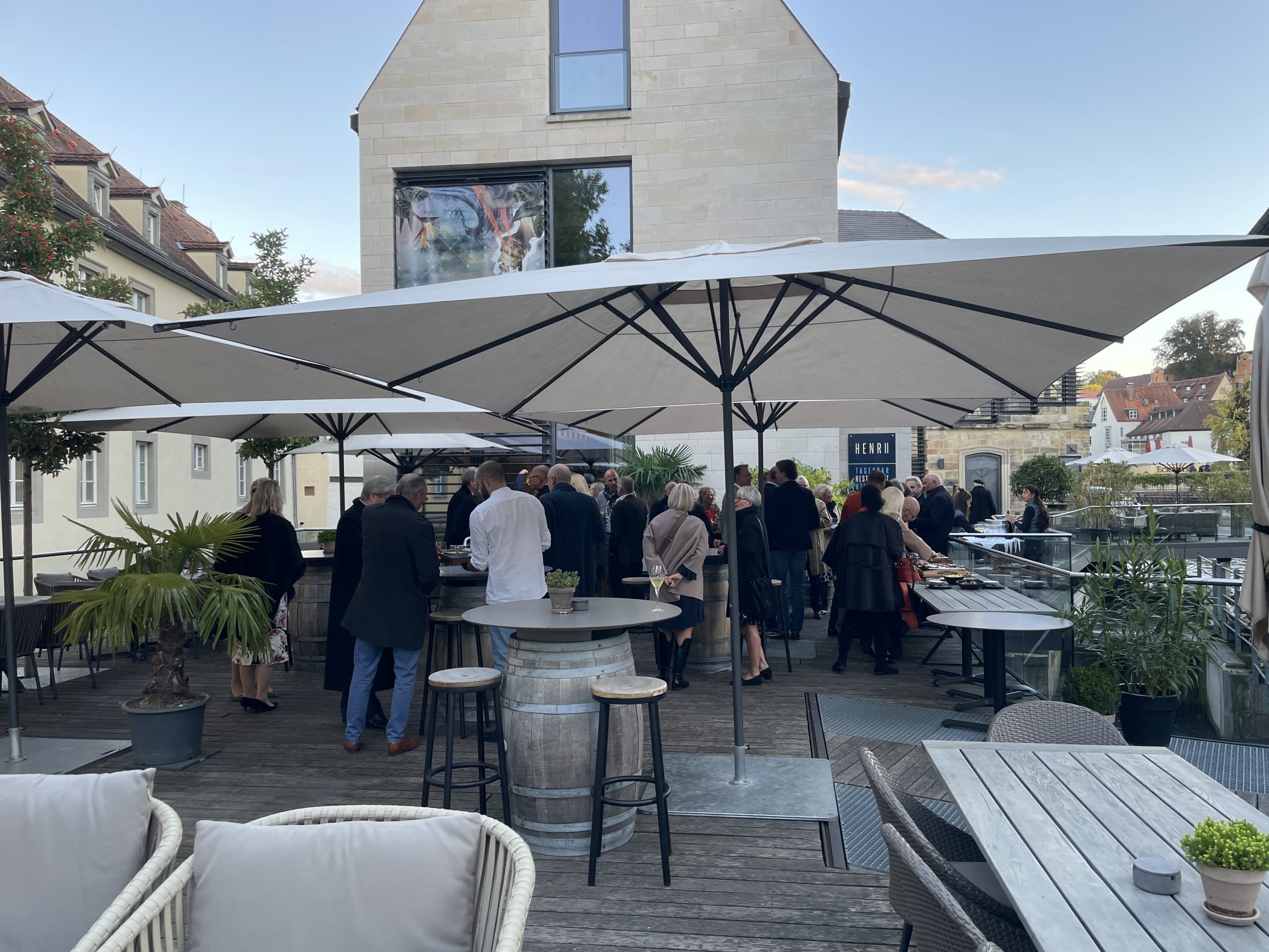 Unser Bamberger Freund Klaus Schneider ist nun offiziell Pensionär, hat bereits mit wenig Begeisterung seinen Rentenbescheid studiert und feiert dennoch an diesem Wochenende mit Family & Friends wie immer sehr großzügig seinen 65. Geburtstag. Dass sich Klaus jetzt nicht altersgemäß ins gewöhnliche Rentnerdasein verabschieden wird, das hat er uns wieder einmal durch eine seiner legendär gesellschaftskritischen Reden deutlich wissen lassen. Keiner der netten Gäste, die Klaus schon lange und gut kennen hätte auch damit gerechnet, daß er sein Büro zukünftig allein seinem Nachfolger und ältesten Sohn Sebastian übergibt. Dieser ist jetzt offiziell der gleich berechtigte 50/50 Partner seines Vaters und die beiden werden sicher ihre erfolgreiche Partnerschaft noch eine Weile gemeinsam fortsetzen. Neben der gesamten Familie, von der mittlerweile alle Kinder mit ihren Partnern und bereits vier Enkelkindern mit bei der Party dabei sind, waren viele Bamberger Freunde und auch einige der gemeinsamen Gardasee Freunde nach Oberfranken gereist. Neben Annette und mir waren daher auch Hellmanns, Hornbergers, Schmidts und Reimann-Andersens aus dem südlichen Bayern und Wien beim Feiern dabei. Am Samstag ging es unten in der Stadt ins Ristorante Henri II, das in Bambergs altem Mühlenviertel liegt. Das Lokal ankert wie ein Schiff mitten im Fluß Regnitz. Während links und rechts das Wasser rauscht, sitzt man in einem wunderbaren Ambiente mit modernem Interior-Design. Geradlinig, markant und schnörkellos. Das renommierter Küchenteam interpretiert traditionelle Gerichte neu und bereitet vor allem regionale und saisonale Produkte frisch von Hand zu und die Terrasse lädt zu einem sonnigen Aperitif ein. Am Sonntag waren wir dann noch bei Francesco oben am Berg. Die „Sieben-Hügel-Stadt“ Bamberg ist in Oberfranken das wichtigste Zentrum. Bekannt ist der Ort für seinen großen unversehrten historischen Stadtkern durch den Bamberg eine mitteleuropäische Stadt mit mittelalterlicher Grundstruktur repräsentiert.