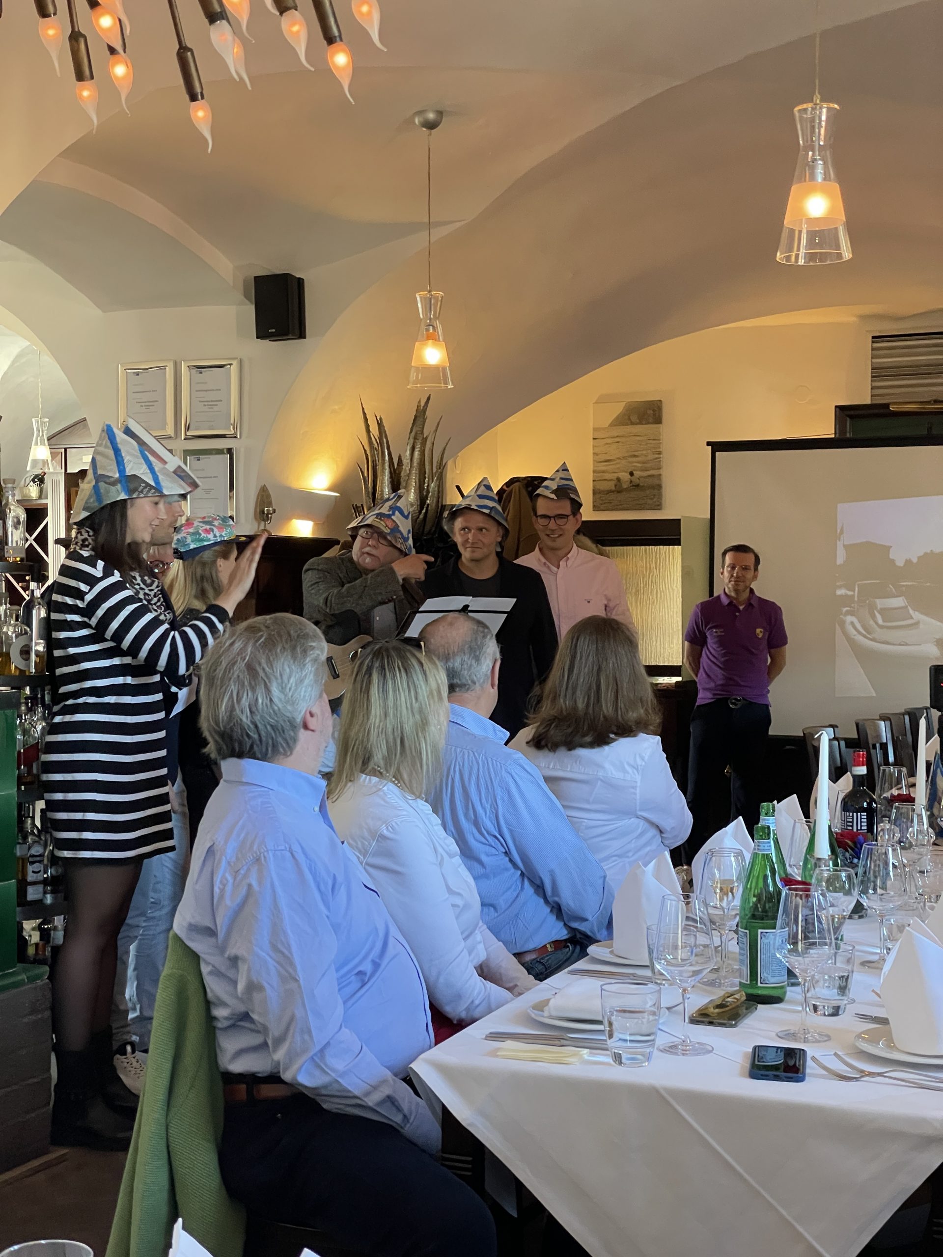 Ab 18:00 Uhr gab es auf der Terrasse des Ristorante Henri II einen schönen Aperitif sowie erste Ansprachen mit Gesangseinlagen durch die Bamberger Freunde