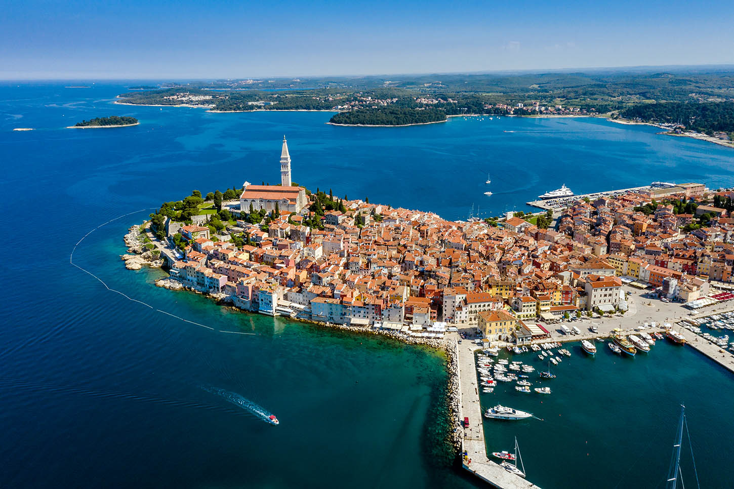 Rovinj ist eine kroatische Hafenstadt an der Westküste der Halbinsel Istrien. Die Altstadt, deren Häuser dicht gedrängt am Wasser stehen, befindet sich auf einer Landzunge. Verwinkelte, kopfsteingepflasterte Gassen führen zu der auf einem Hügel gelegenen Kirche der Heiligen Euphemia hinauf, deren hohe Turmspitze das Stadtbild prägt. Südlich der Altstadt befindet sich die Bucht Lone, einer der zahlreichen Kieselstrände der Region. Direkt vor dem Festland liegen die 14 Inseln des Archipels von Rovinj.