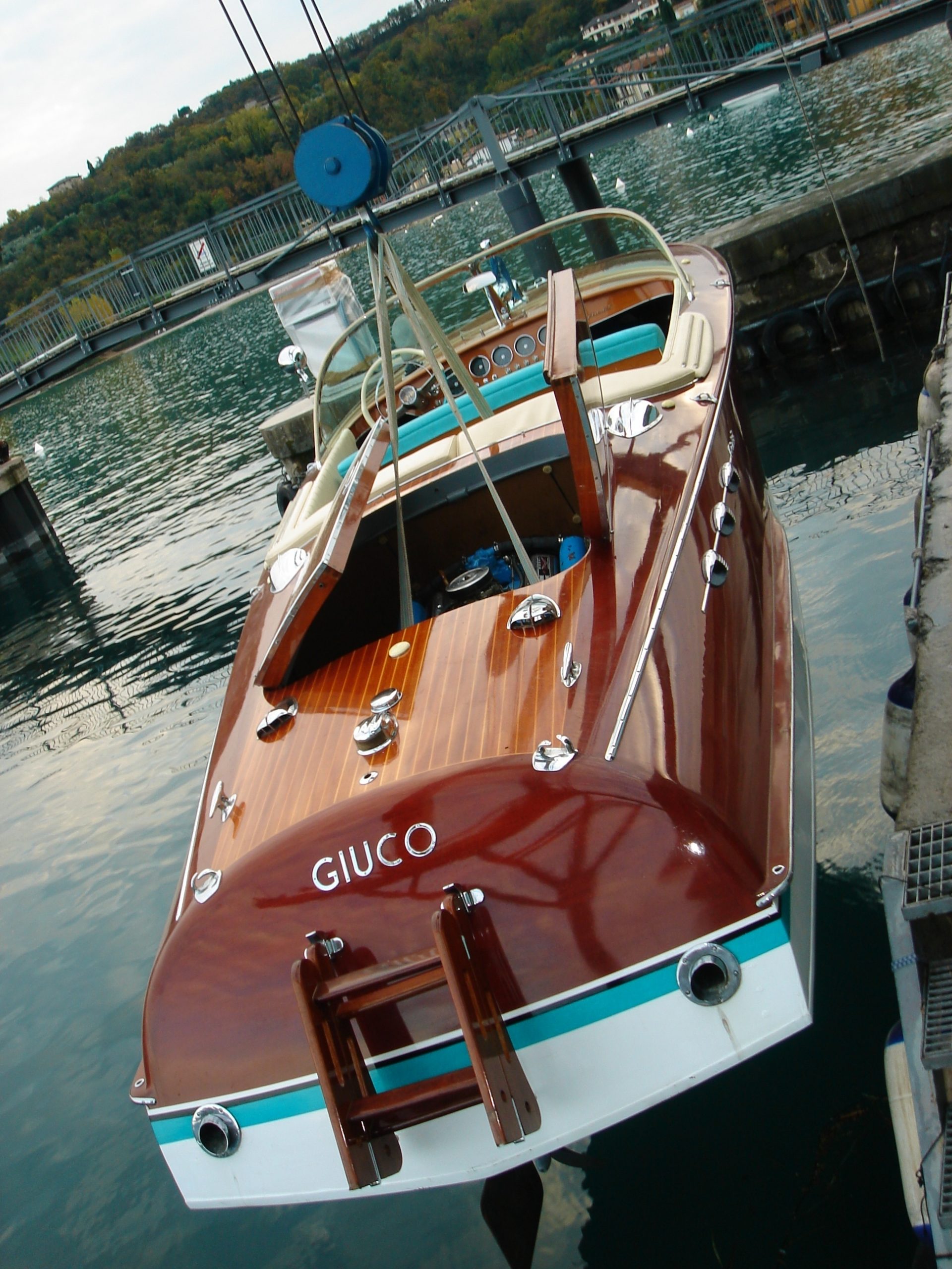 Die Wahl fiel dann kurze Zeit später zu Gunsten der rechts abgebildeten Riva Ariston aus ... praktischerweise aus dem Kundenstamm des Centro Nautico in Salò, wodurch kein Umzug nötig wurde