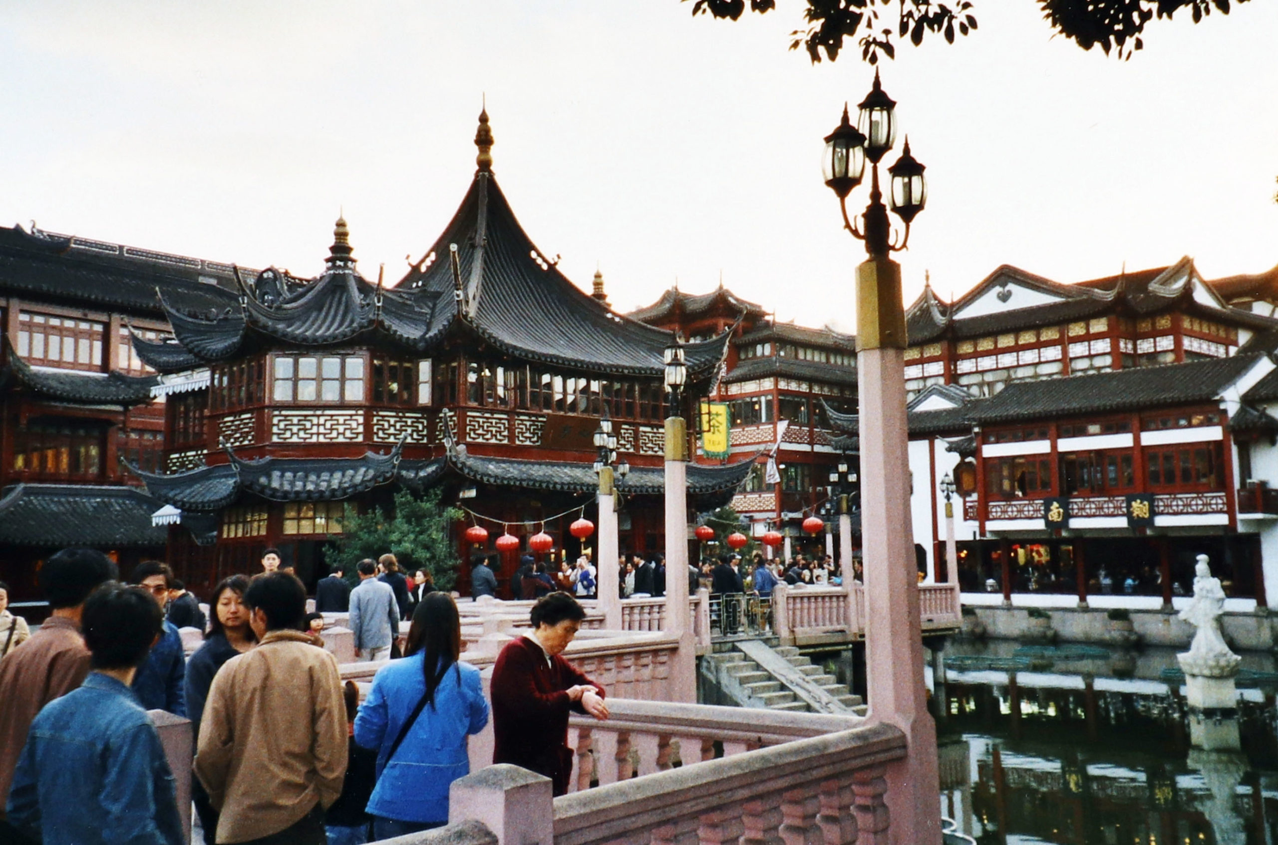 Beautiful old town Shanghai mit dem Yu Garden. Gelebter Kontrast zu den Glitzerfassaden