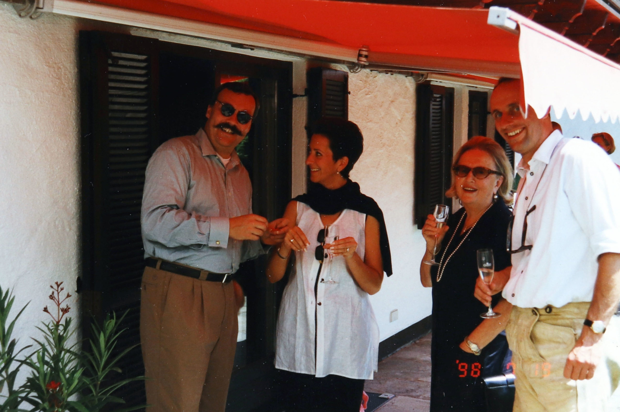 Mein stets gut gelaunter Schwager mit Carolina - von der ich damals bereits ein Jahr getrennt war - und seinem Best Buddy Rolf Kröner. Im rechten Bild sehe ich meine beiden Geschwister Thomas und Ulrike sowie deren Schwiegermutter Inge Schall-Riaucour im Hintergrund