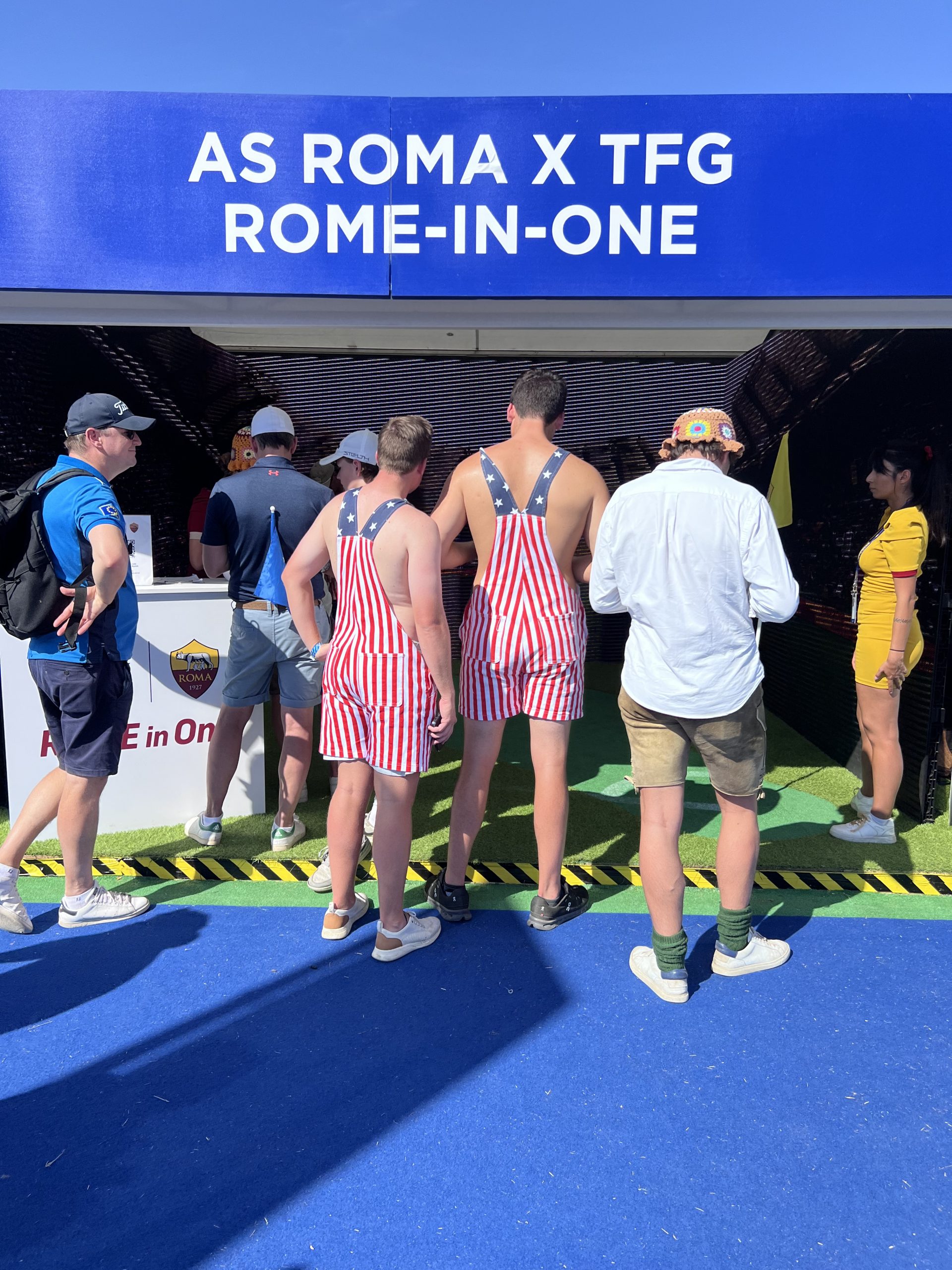 Der Weg zum Event im Golfclub Marco Simone war durch die notwendige Nutzung von U-Bahn, Zug und Bus etwas umständlich und langwierig ... dafür traf ich hier schon jede Menge amerikanischer Fans.