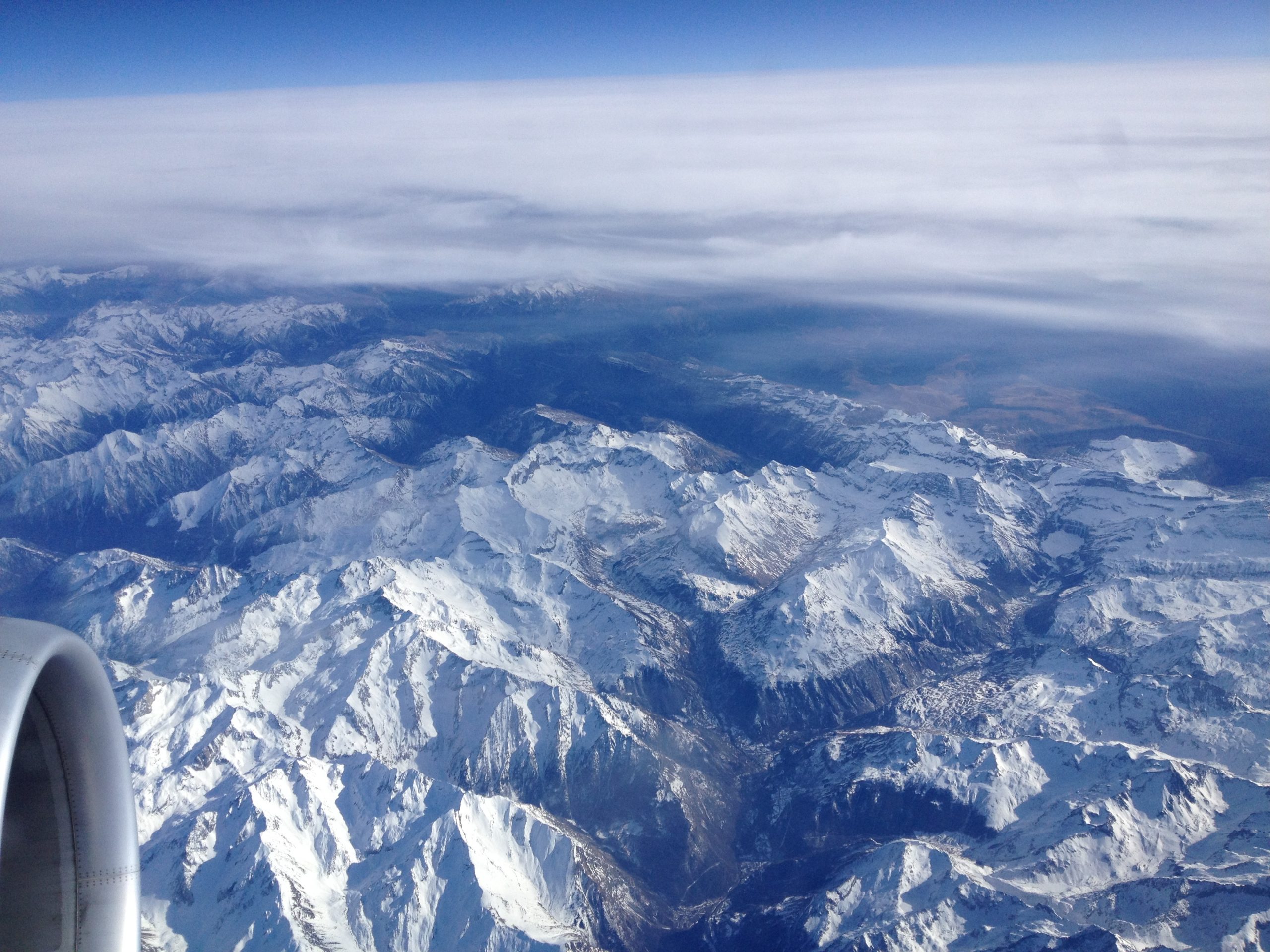 Mein Rückflug nach München: Einfach nur zurücklehnen und geniessen oder in Gedanken abspringen. 2 Spuren im Schnee..