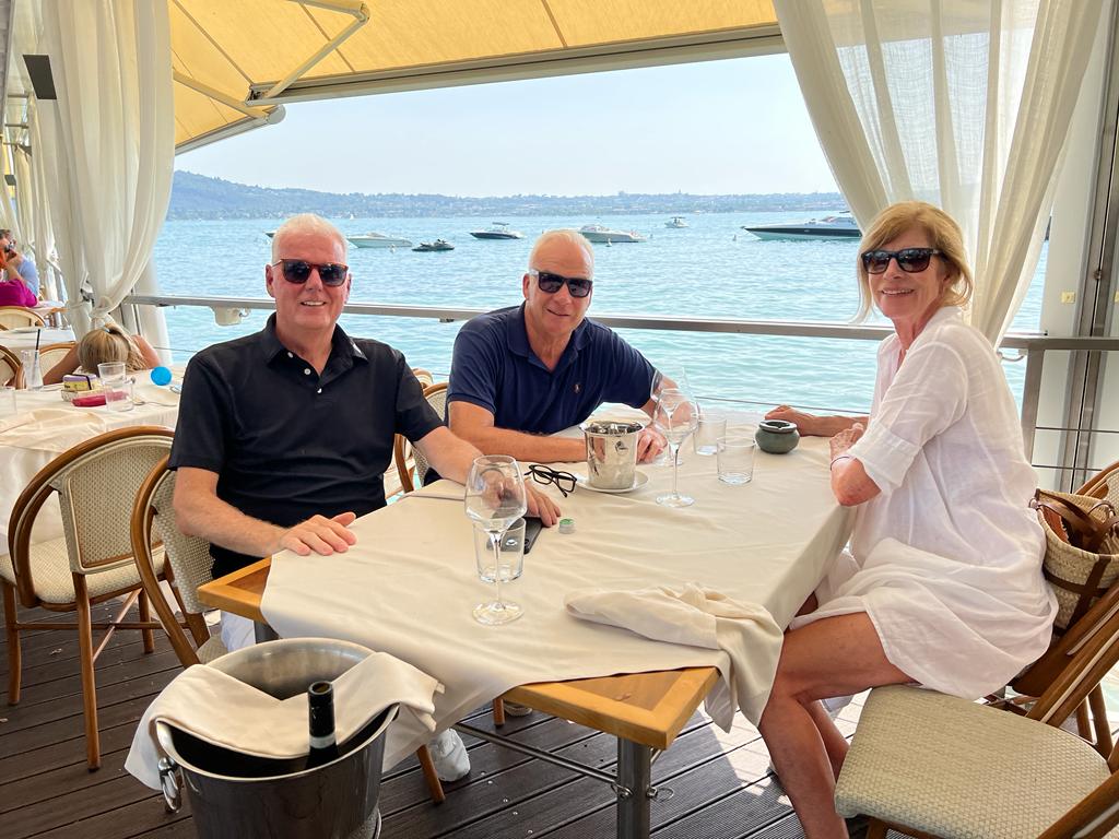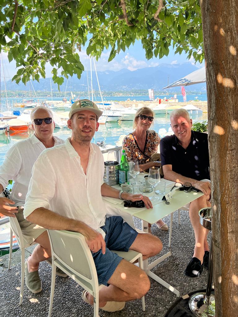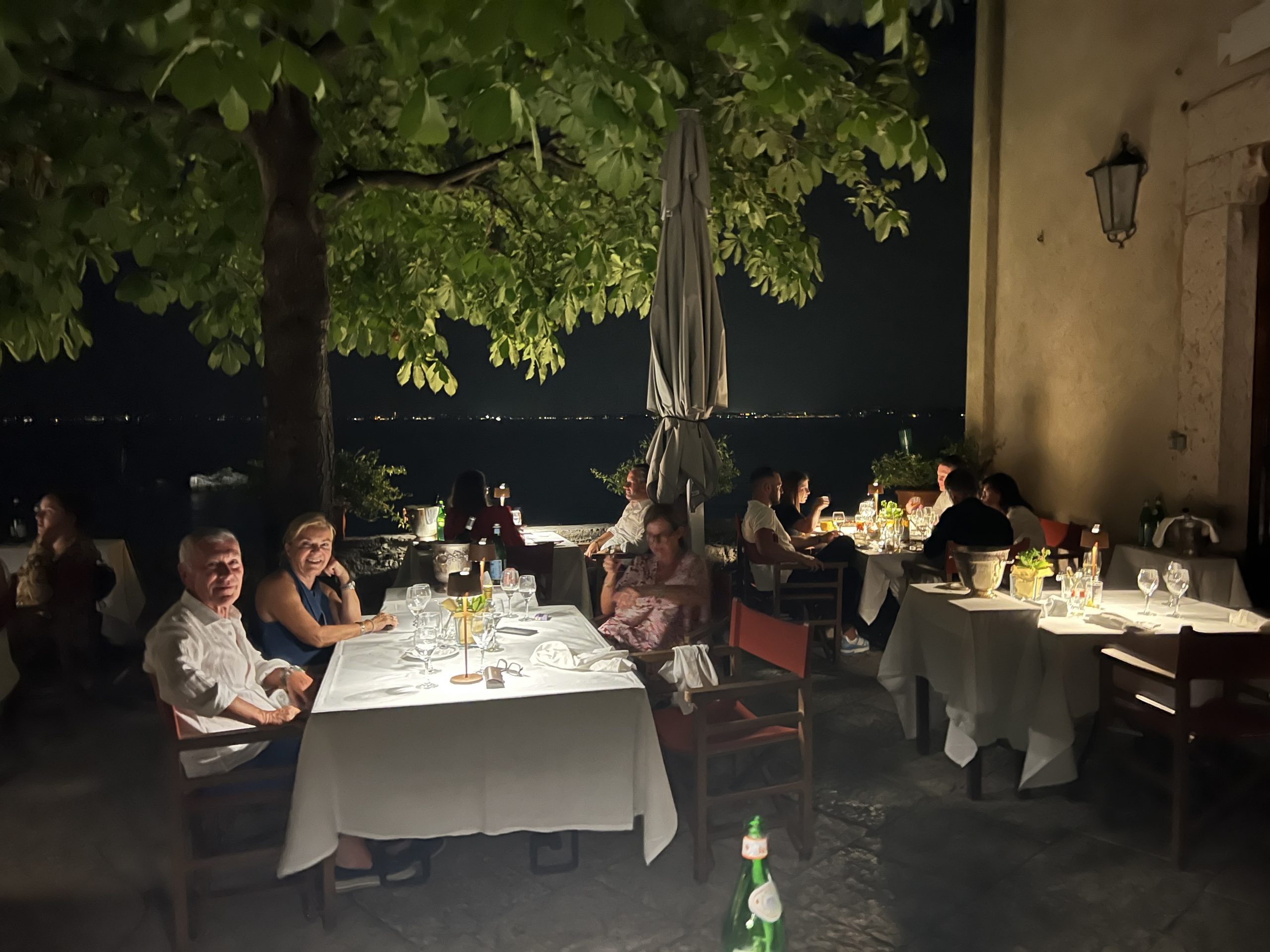 Jedes Jahr überarbeite ich die Liste meiner bevorzugten Restaurants am Gardasee, um immer auf einem aktuellen Stand mit den besten Tipps, entsprechenden Adressen, Telefonnummern und Ruhetagen zu sein. So habe ich über eine längere Zeit mehr als 70 Lokale gesammelt, die ich auch gerne weiterempfehle. Von diesen Lokalen sind 25 meine Top-Favoriten und zu drei davon sind wir in den Tagen nach Ferragosto mit dem Boot unterwegs. Annette und ich fahren dabei am Sonntag mit Uschi und Karl Pohler an einem traumhaften Abend nach San Vigilio und ich selbst am darauf folgenden Montag mit Eva, David und Thomas Hellmann ins Da Rino. Das seit dem Jahr 1967 von der Familie Cremonesi geführte Ristorante Da Rino befindet sich direkt am See in Manerba del Garda. Vom Restaurant und der Gartenterrasse aus genießt man einen herrlichen Blick auf die Bucht von Manerba und die Moränenhügel über Salò. Das Restaurant liegt am Hafen Porto Torchio in Manerba del Garda, dem Ausgangspunkt für Ausflüge in den Park Rocca di Manerba del Garda, zur Insel San Biagio und zur Insel Borghese – der Isola del Garda. Die Küche des Restaurants verwendet frische Erzeugnisse von lokalen Fischern und erstklassigen Fischgeschäften des Gardasees. Je nach Angebot des Marktes und Tagesfang bietet das Ristorante da Rino Vorspeisen auf Fischbasis, Carpaccio von der Forelle auf Rucola, geräucherte Forelle auf Salat mit Croutons, marinierter Döbel. Erste Gänge mit frischen Nudeln wie Bigoli al Torchio, mit Sardinen und Anchovis, dünne Bandnudeln mit Renke, Nudeln mit geräucherter Forelle und Zucchini, Spaghetti nach italienischer Art und viele andere Tagesgerichte wie Nudeln mit Flusskrebsen. Unter den Hauptgerichten Hecht vom Gardasee alla Barcarola mit Polenta, gedünstete Filets von der Renke mit Gemüse, gegrillte Sardinen, Filets vom Flussbarsch aus dem Gardasee, Forelle in Folie, Gardasee-Forelle, Schleie, Fleischgerichte und sonstige Angebote des Tages. Unter den Süßspeisen und Desserts gebackene Waffel mit Obstsalat und Cremeeis. Verschiede Kuchen, darunter die typische „Torta Bresciana“. Sowohl das in der Küche zur Zubereitung unserer Gerichte verwendete Öl als auch das Öl auf den Tischen im Speisesaal des Ristorante da Rino ist ausschließlich natives Olivenöl extra aus den Ölmühlen des Valtenesi.
