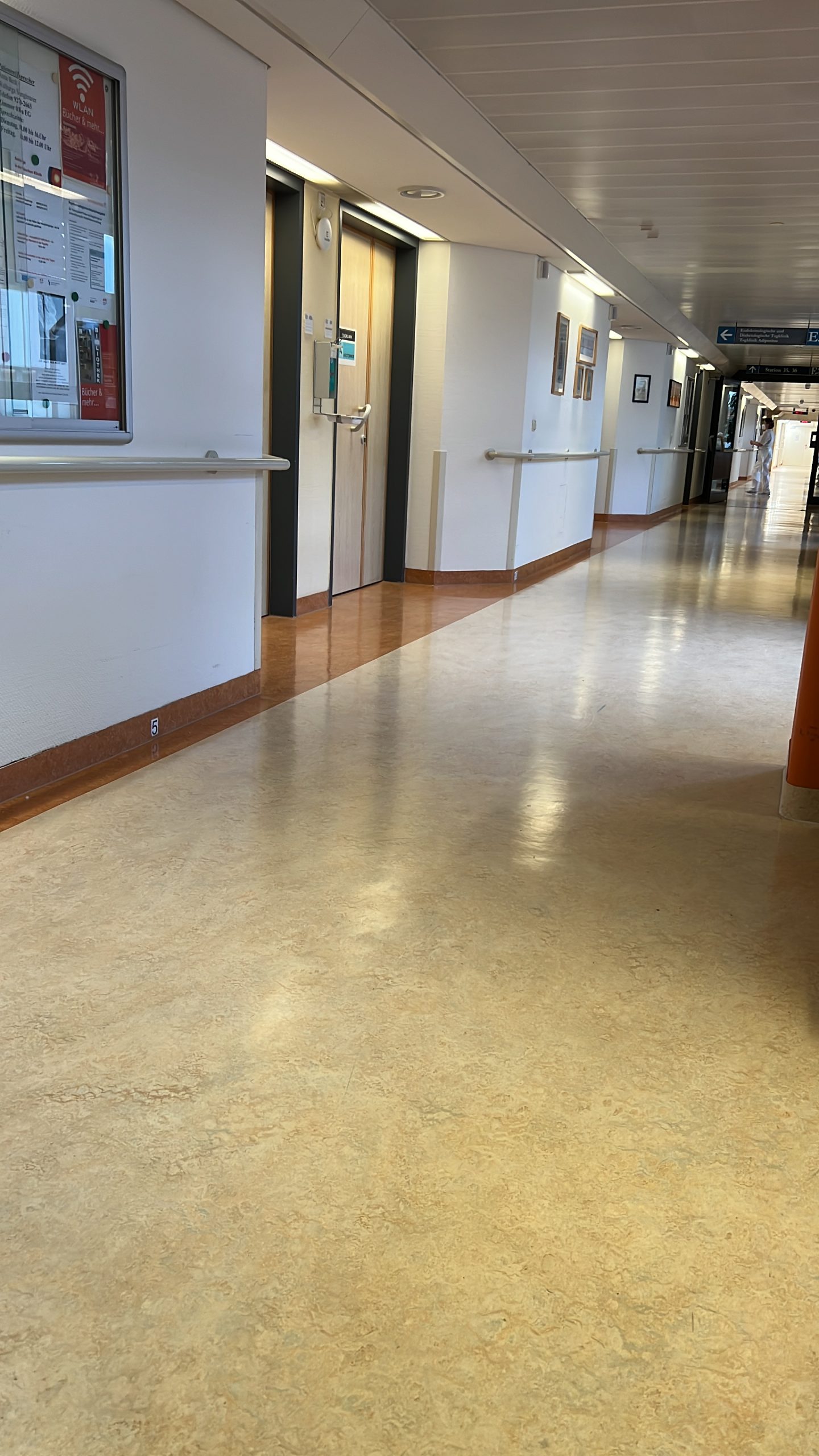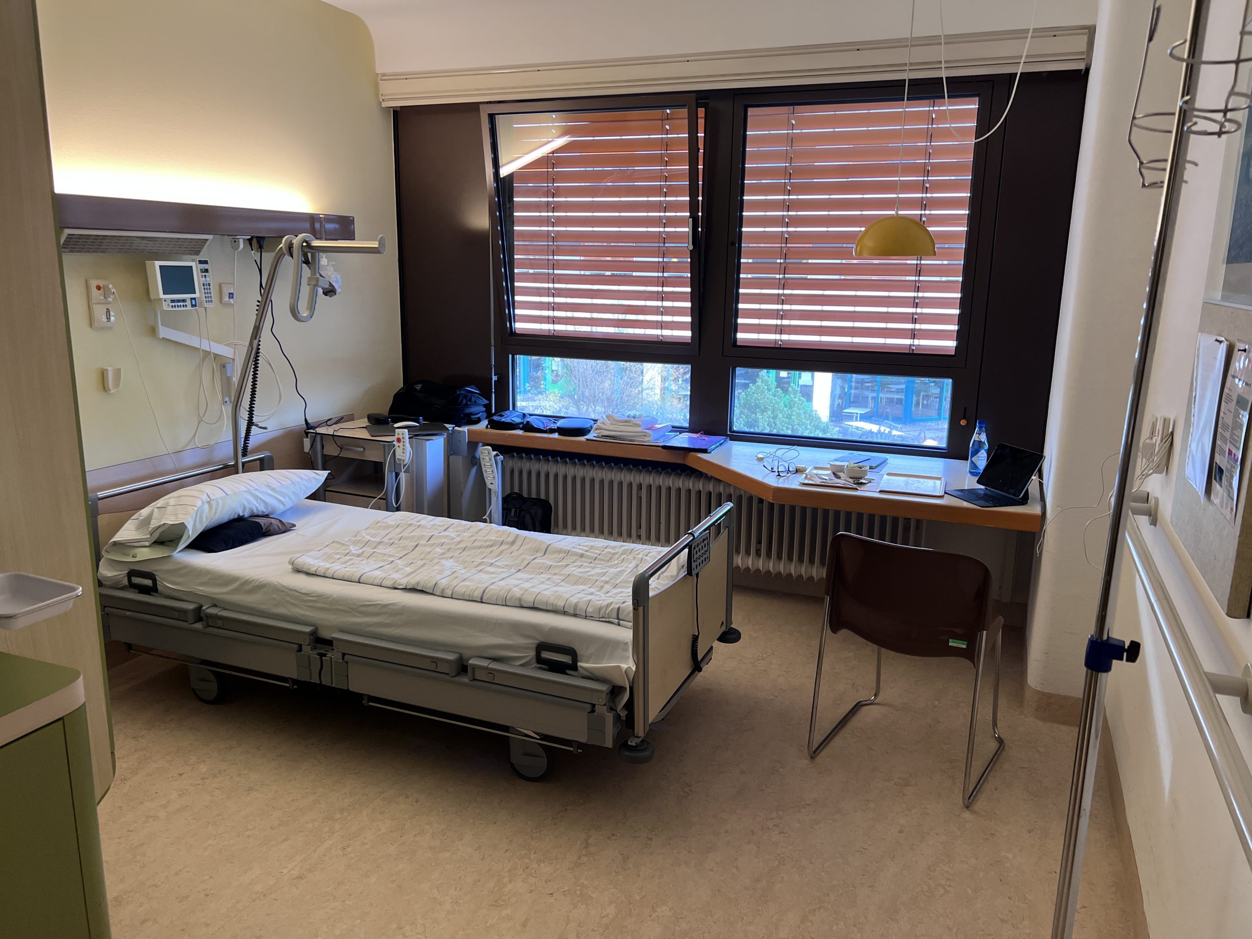 Am ersten Tag meines Aufenthalts - ich war wie gewünscht um 8:00 Uhr morgens da - verbrachte ich 7 Stunden mit meinem Gepäck auf den langen sterilen Gängen der Klinik, bis ich mein Zimmer in der Station 18 erhielt