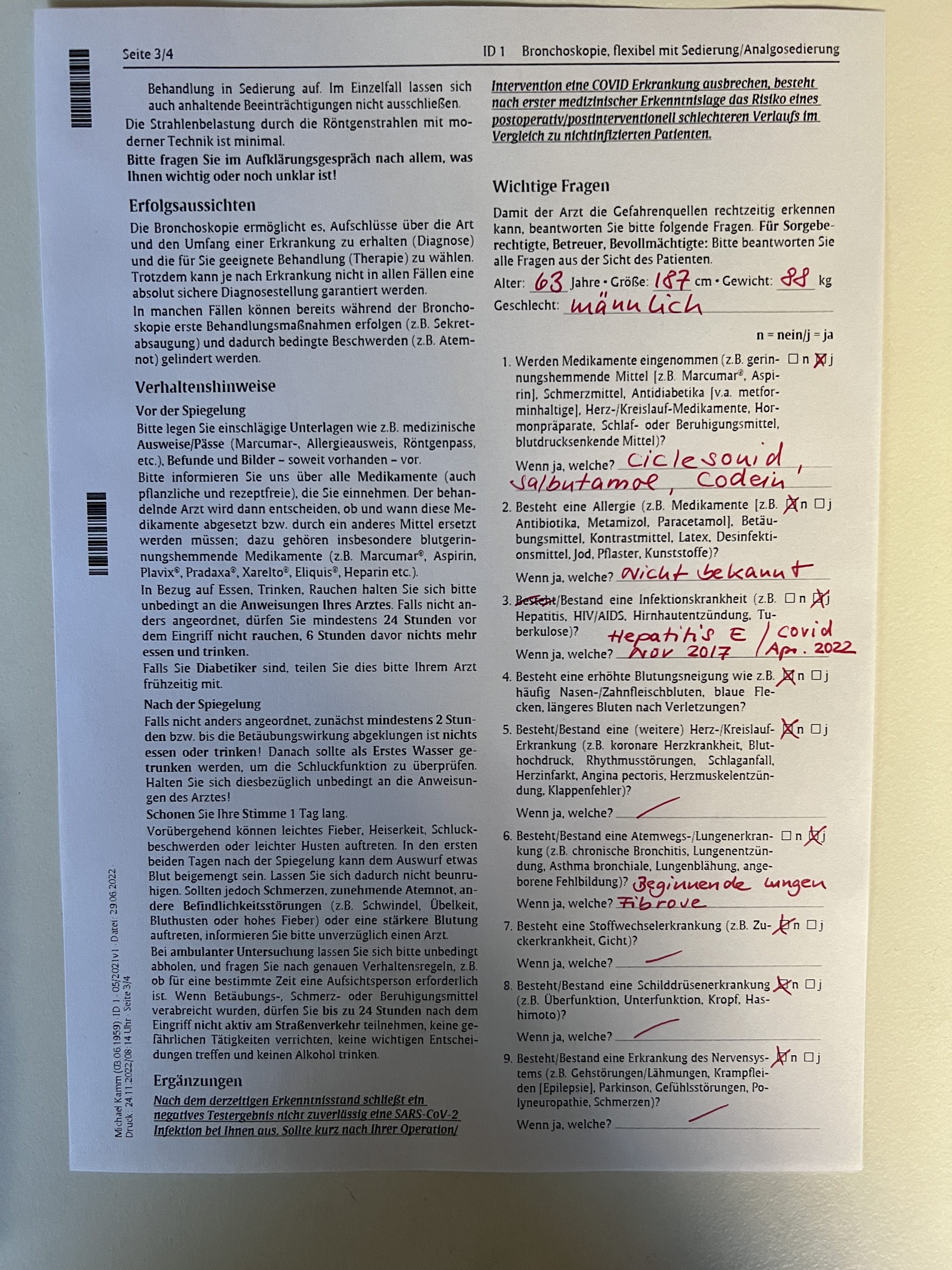 Schön geht anders – Lungenbiopsie zu Covid Zeiten im städtischen Klinikum Bogenhausen – 2022