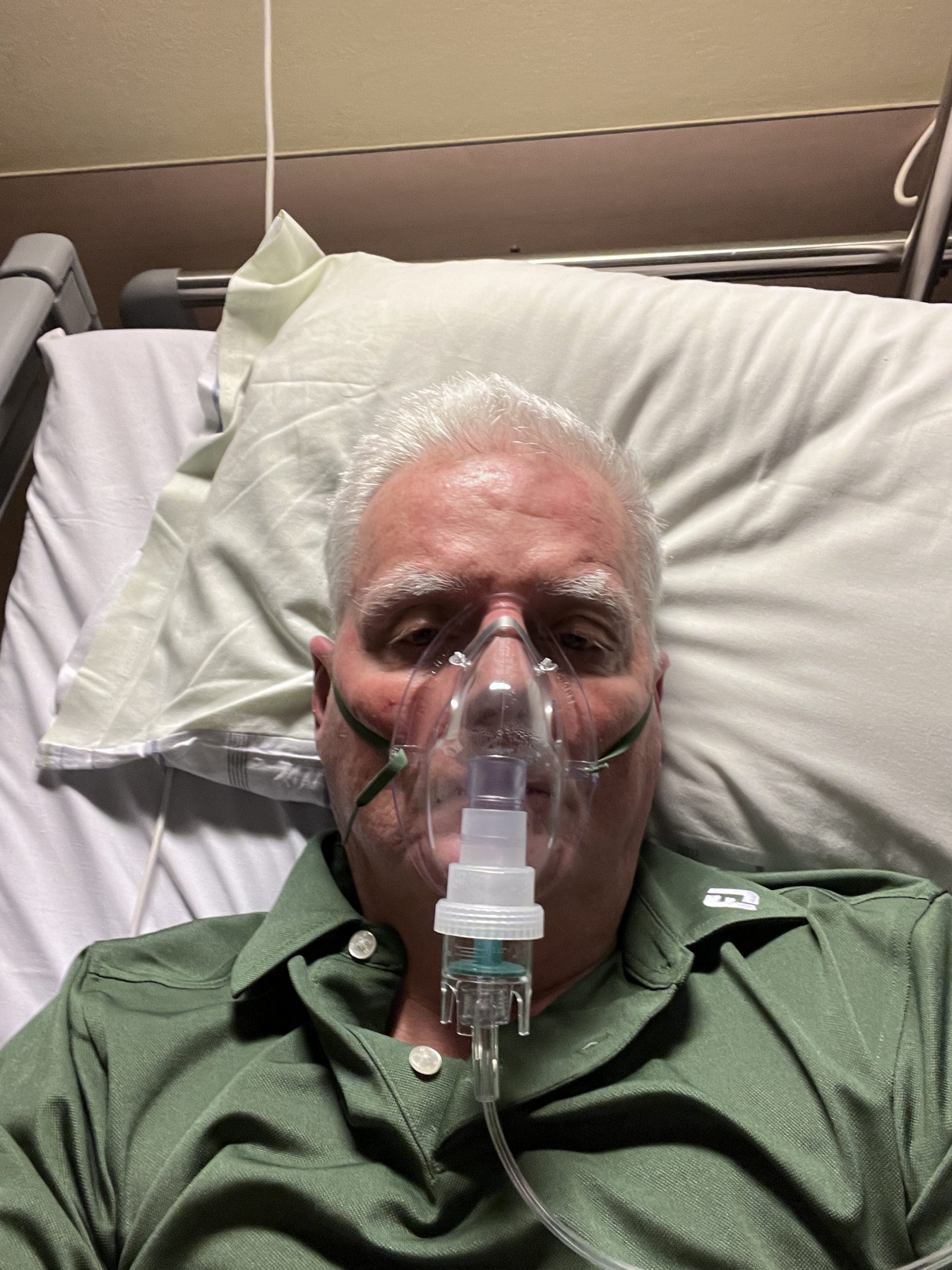 Mit Maske und Sauerstoff zum Inhalieren versuchte ich meine Situation zu optimieren ... schaut krank aus !!