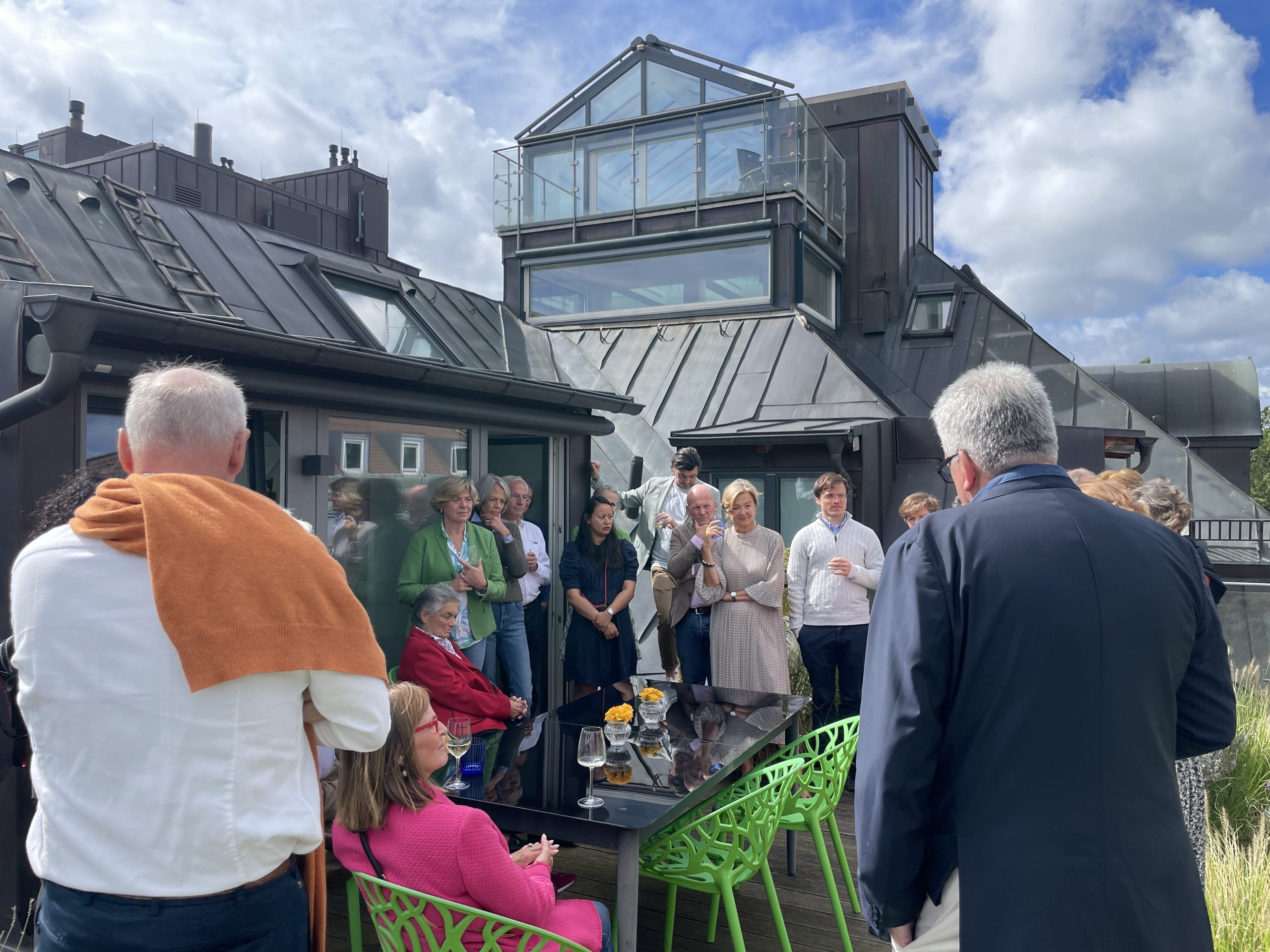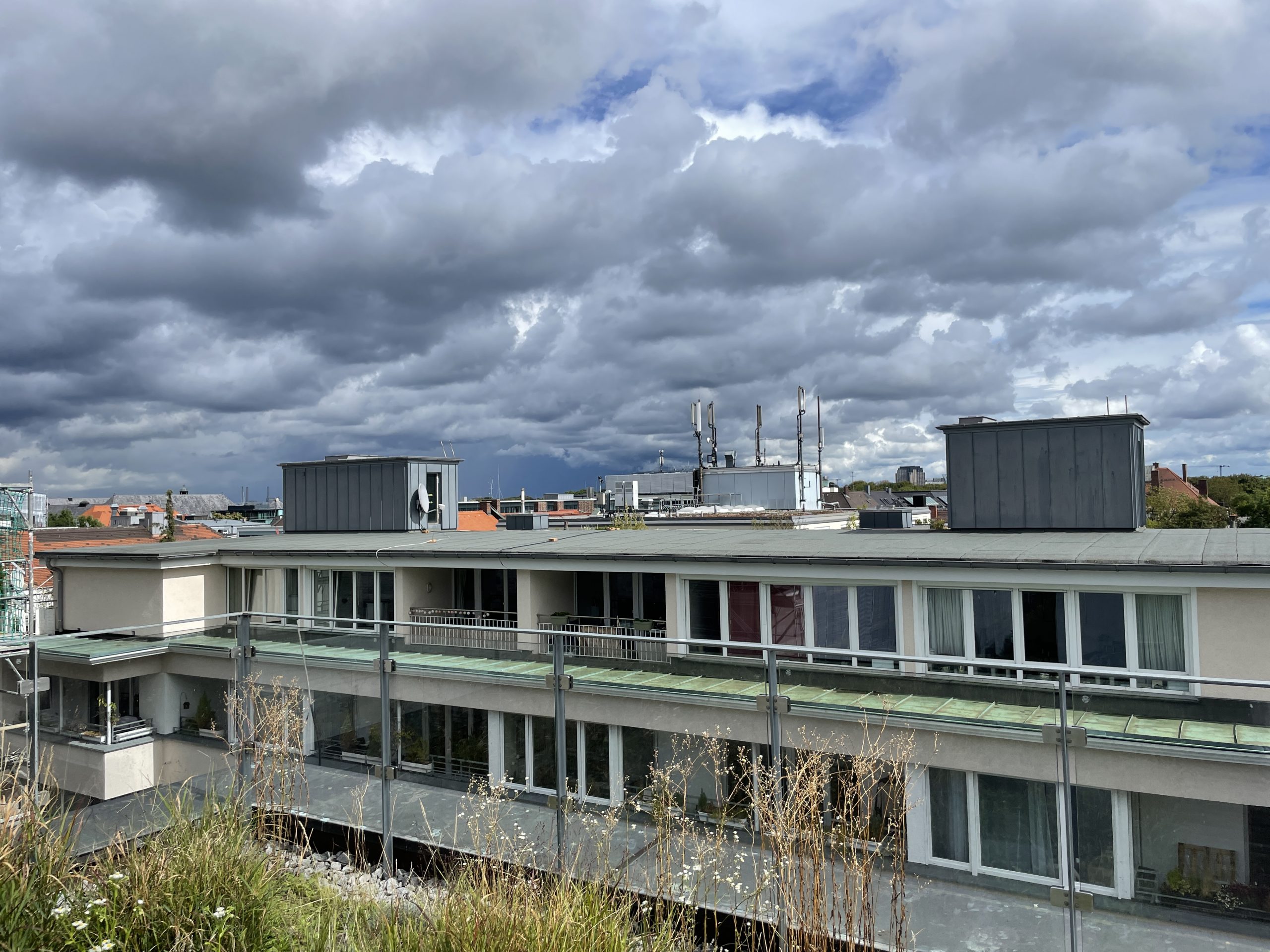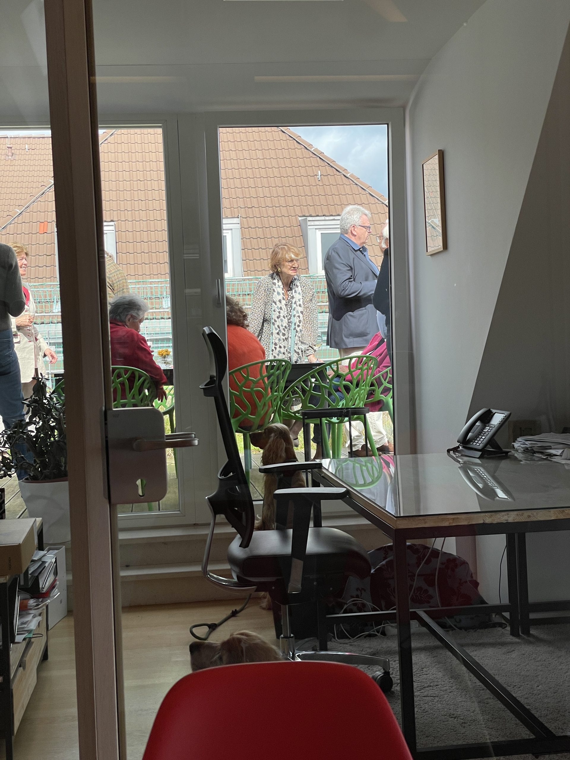 Mit dem Wetter hatten wir dann doch Glück ... nachdem ich selbst auf meiner Fahrrad-Fahrt auf den letzten 200 Metern vor der Leopoldstrasse von einem Monster Schauer "nass" überrascht wurde, scheint beim späteren Beginn der Feier wieder die Sonne und wir können die Terrasse nutzen.