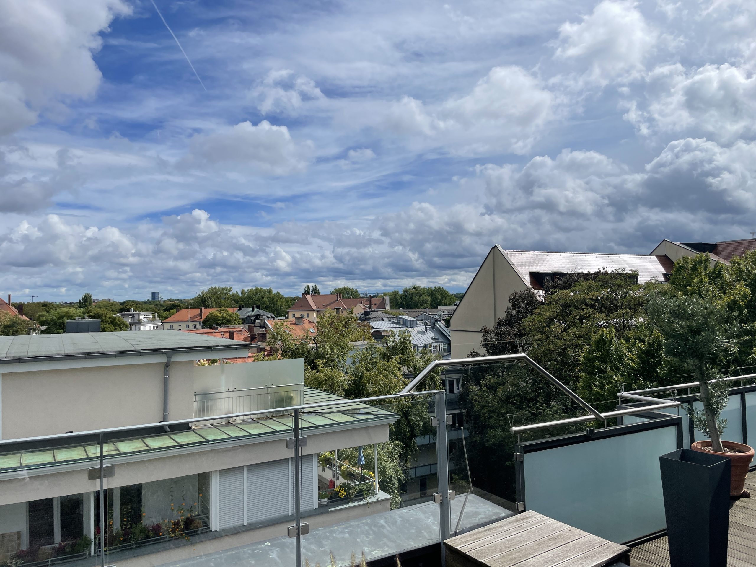 Blick in Richtung Bogenhausen ... im Osten ist die St. Georgs Kirche zu sehen, neben der wir in der Möhlstrasse wohnen