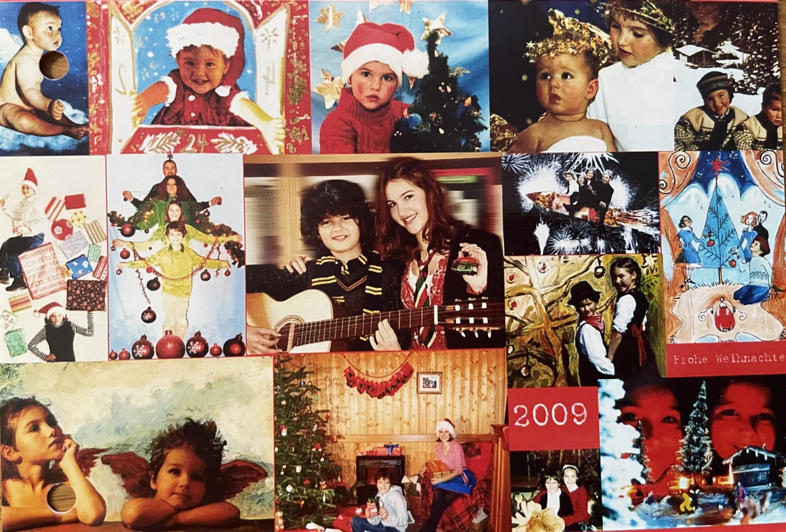 Im Monat Dezember finden wir jedes Jahr gerne die per Post eingehenden persönlichen Weihnachtskarten von Familie & Friends im Briefkasten. Wir freuen uns immer wieder aufs Neue auf die jeweils liebevoll und zum Teil auch mit erheblichem Aufwand hergestellten Karten mit Photos der Freunde unter Einbindung deren Kinder. Wir schätzen diese besonderen Grüße und Erinnerungen zu Weihnachten so sehr, daß wir sie seit Jahren konsequent ablegen und aufbewahren. Durch dieses Archiv, dessen antiquarisches Ablagesystem an den kleinen runden Löchern identifiziert werden kann, sind wir auch jetzt noch in der glücklichen Lage die Karten aus Ihren Ordnern im Aktenkeller zu befreien und auf unserer Website visuell dauerhaft sichtbar zu machen. In unserem digitalen Tagebuch werden sie uns daher auch immer einen eigenen Beitrag wert sein. An den Rückblicken der früheren Jahre können wir immer am schönsten sehen, wie die Kinder größer und erwachsener werden und auch die Eltern reifen. Zwar nehmen wir es uns auch immer wieder vor, selbst Weihnachtsgrüße mit persönlichen Photo Karten an unsere Lieben zu versenden ... bei dem Vorsatz blieb es allerdings bisher !!