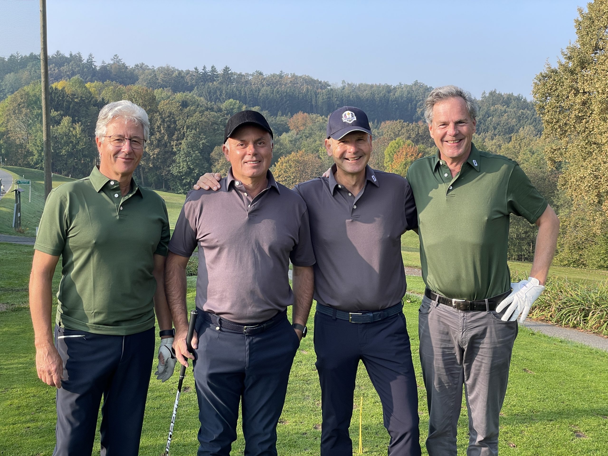 Start am Freitag um 9:00 Uhr zum ersten Turniertag. Scramble im Viererformat ... Rechts der Isar spielt in Olivgrün und die Linken in Kohlengrau