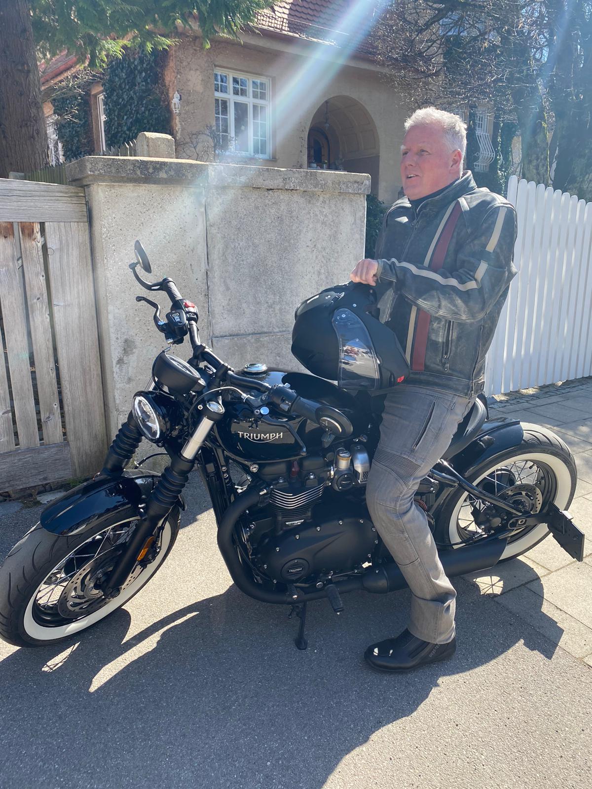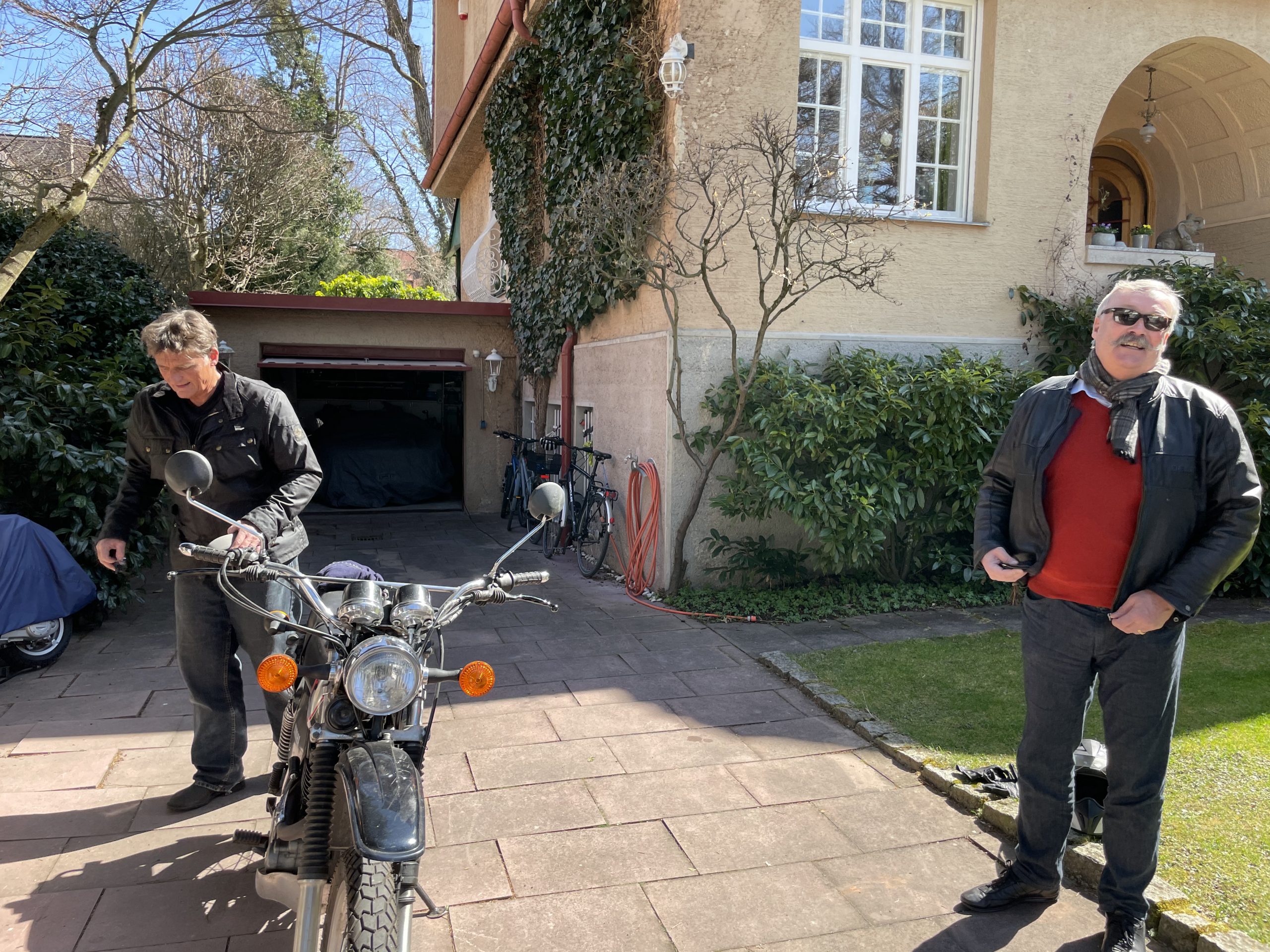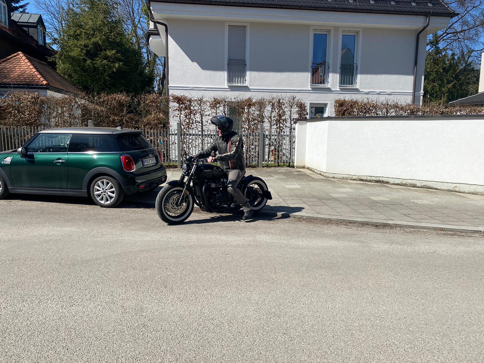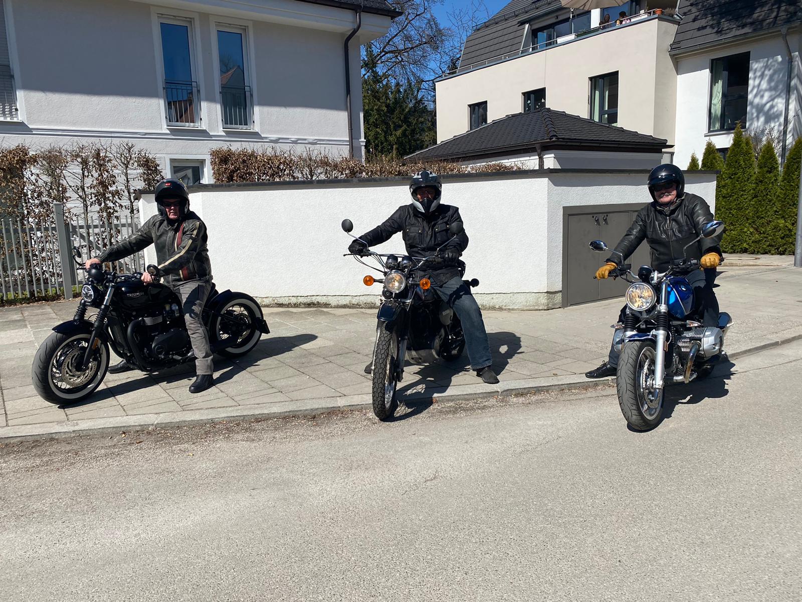 Motorradfahren ist ein sehr schönes Hobby und es gibt zudem gute Gründe dafür dies auch zusammen mit Freunden zu machen. So freue ich mich am 1. April sehr, daß nicht nur mein Schwager Adam, sondern auch mein Freund Michi Zeit haben gemeinsam mit mir bei bestem Wetter eine erste schöne Tour durchs Oberland zu drehen. Von der Möhlstrasse bzw. dem Max-Weber-Platz fahren wir in die Harlachinger Lindenstrasse, um dort Michi einzusammeln und dann auf die Strecke zu gehen. Wir drei sind mit unterschiedlichsten Fabrikaten wie der BMW von Adam, einer 500er Yamaha XT von Michi und meiner Triumph Bonneville Bobber unterwegs. Beim Sinnieren, was mich persönlich am Motorradfahren so begeistert, bzw. welche Gründe es eigentlich für mich gibt, auf eine Maschine zu steigen, zählen gar nicht mal die eigentlich vielen Vorteile des Motorrads im Vergleich zu allen anderen Fortbewegungsmitteln - es gibt nämlich einiges - was man mit dem Motorrad besser machen kann, als mit einem Auto, sondern ausschließlich das Gefühl von Freiheit und auch etwas Abenteuer