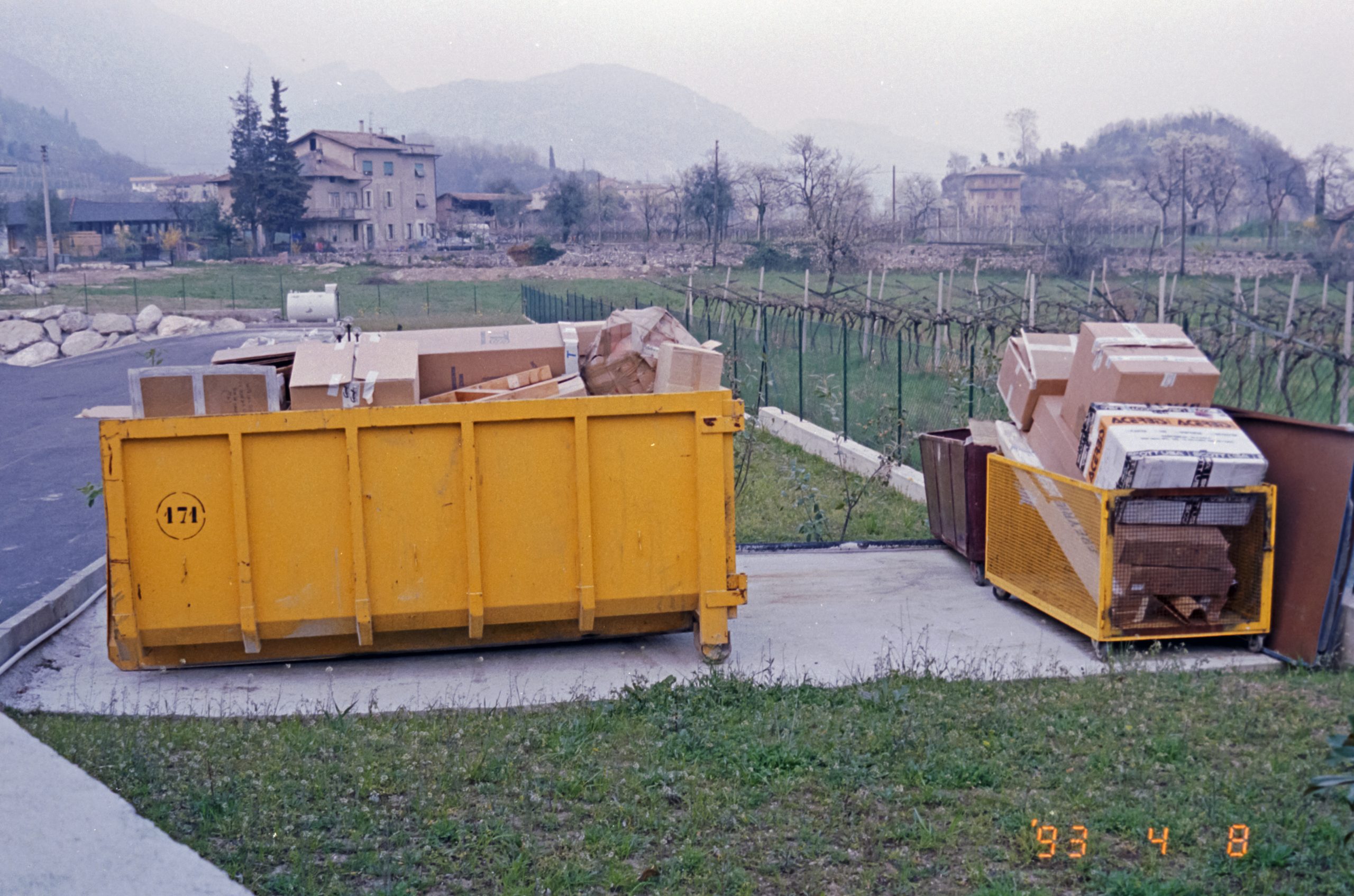 Übersee- und Müllcontainer vor Weinreben. Selbst Industriegelände sind in Riva del Garda einigermassen ansehnlich
