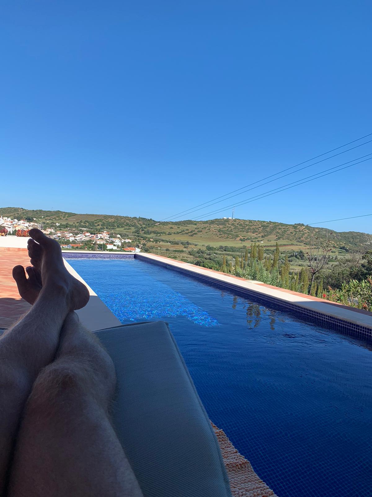 Mittlerweile hat Christophe der Bretagne den Rücken gekehrt und sich in Portugal zur Ruhe gesetzt. Hier relaxed er an seinem Pool mit Blick in die Landschaft