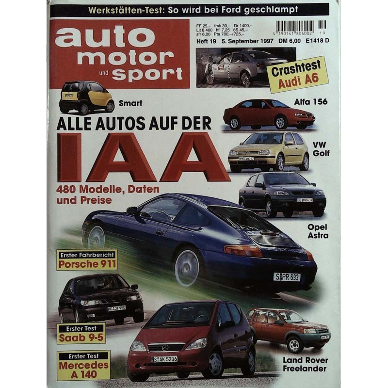 Zwischen einem schönen Robinson Club Urlaub mit Larissa und Paul auf der Insel Fuerteventura und einem spannenden Porsche Renn-Training auf dem Salzburgring bin ich zur Präsentation des neuen Porsche 911 Cabrio der Baureihe 996 auf die IAA nach Frankfurt eingeladen. Das Porsche Zentrum München hat aus diesem Anlaß einen Sonderzug gemietet, mit dem wir in größerer Runde am Nachmittag vom Münchner Hauptbahnhof nach Frankfurt fahren, wo wir nach dem offiziellen Messe-Ende um 18:00 Uhr eine exclusive Führung in der Sportwagen Halle auf dem Porsche Stand erhalten. Nach drei Stunden geht es dann wieder zurück zum Zug und wir geniessen bei einem Abendessen und Disco an Bord die Rückfahrt nach München. Es war ein sehr netter Event mit einer Menge gleichgesinnter Porsche Fans und ich bestelle mir bereits am nächsten Tag das zuvor inspizierte Cabrio. Als Weltpremieren noch echte Überraschungen waren, staunten die Besucher der IAA 1997 über die neue Mercedes A-Klasse. So klein war noch kein Auto mit Stern. Schon auf der IAA 1993 hatte die Studie Vision A 93 die Reaktionen des Publikums getestet. Kurze Zeit nach der Weltpremiere 1997 lief dem Mini-Benz ein Elch über den Weg. Dabei glänzten viele berühmte Auto-Neuheiten auf der IAA. Angefangen vom Mercedes 300 und BMW 501 über den Porsche 901 alias 911, Mercedes 600, NSU Ro 80 und diverse Generationen des VW Golf bis zum VW ID.3 war Frankfurt stets die große Bühne. Dass Frankfurt einmal der Schauplatz glänzender Premieren sein wird, ahnte man in der Messestadt am Main im frühen 20. Jahrhundert noch nicht. Denn die Internationale Automobil-Ausstellung fand zunächst in Berlin statt. Ihre Anfänge lassen sich bis auf das Jahr 1897 zurückführen, als der Mitteleuropäische Motorwagenverein die Ausstellung „ Automobil-Revue“ ausrichtet. Aus diesen überschaubaren Anfängen entwickelt sich schließlich die internationale Leitmesse für Automobiltechnik. Nach dem Zweiten Weltkrieg an die Messeerfolge aus dem ersten Drittel des Jahrhunderts anzuknüpfen, ist schwer. Erstmals findet im April 1951 wieder eine Automobilausstellung in Deutschland statt, die wirklich internationalen Anspruch hat. Ausgetragen wird sie nicht mehr in Berlin, sondern in Frankfurt am Main. Hier hat auch der Verband der Automobilindustrie e. V. (VDA) seinen Sitz, der die IAA organisiert.