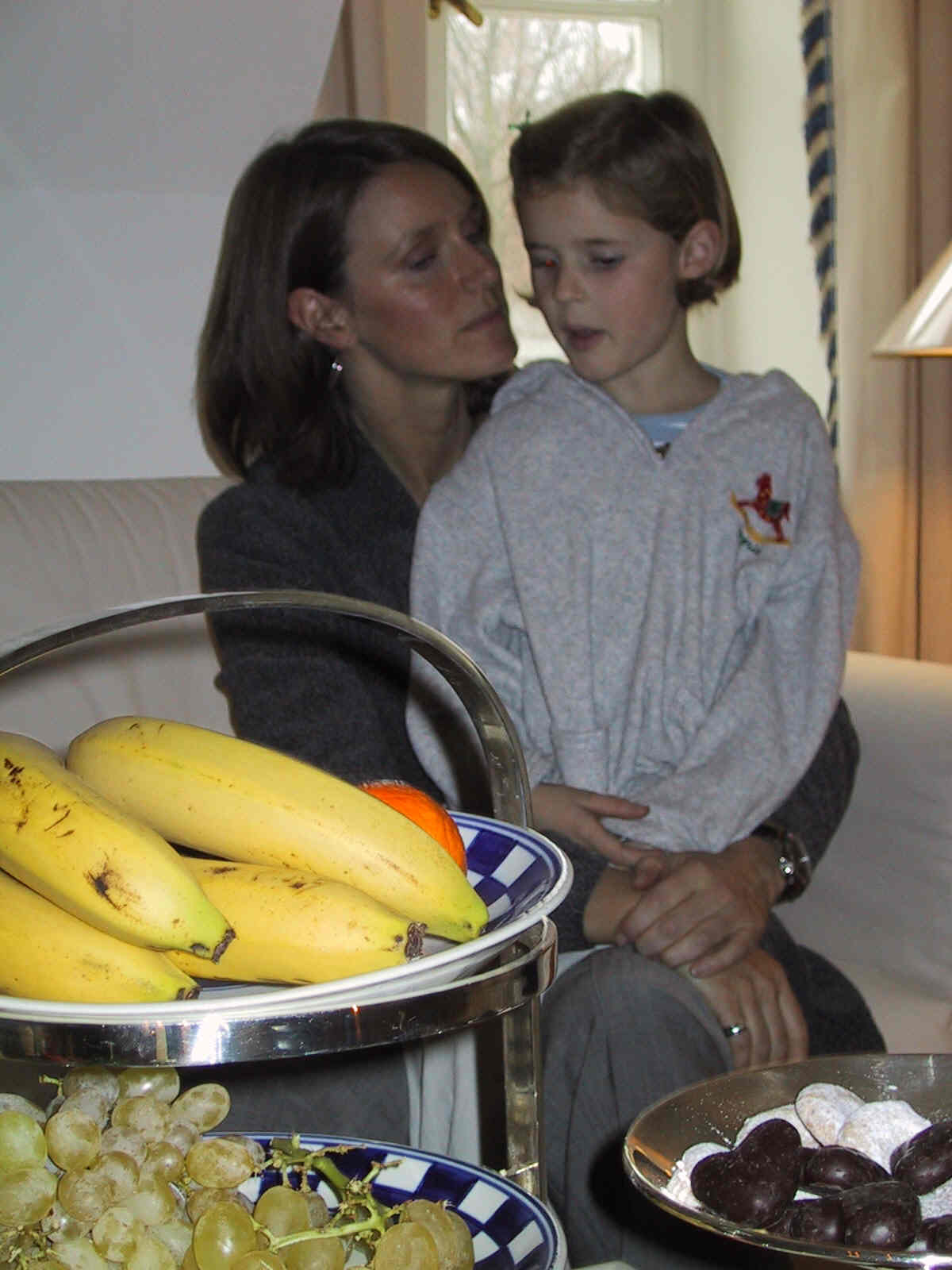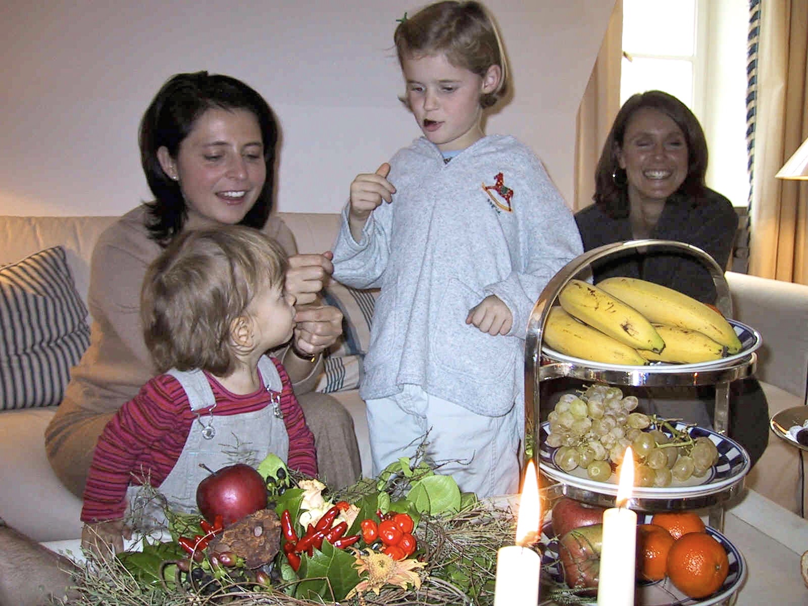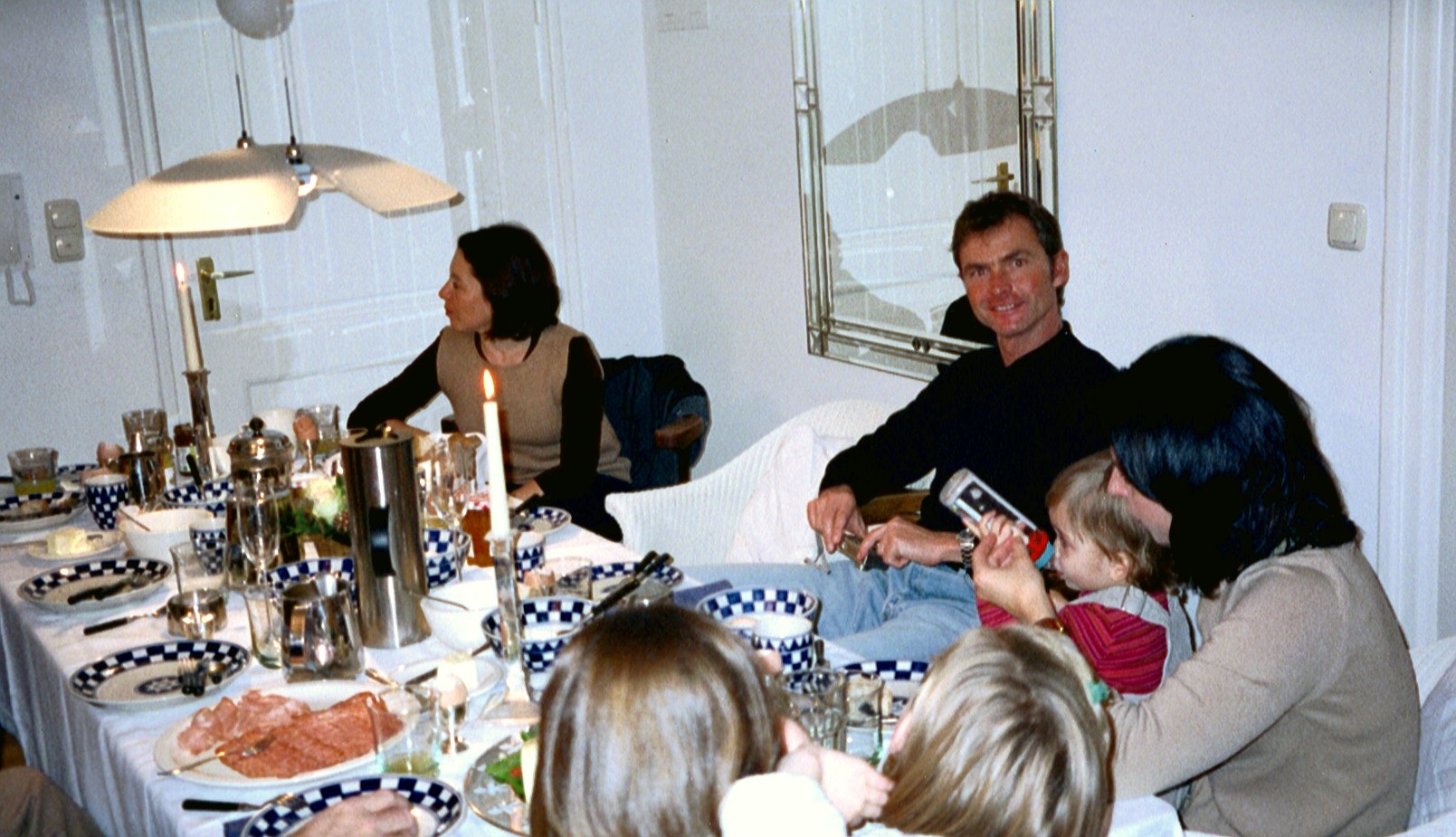 Annette lädt anläßlich ihres 34. Geburtstags Freundinnen und Familie zu einem Sonntagsbrunch in unsere Wohnung in der Möhlstrasse ein. Neben Nani mit Anna-Lena kommen Drea mit Carlotta, Annette Karbacher mit ihrer Tochter sowie Susanne Seidler, Waltraut Nischt und Gaby Denk ohne Kids, wenn ich mich recht erinnere. Eine sehr nette Runde mit interessanten Themen, bei denen es nicht nur um Kinder und Haushalt ging. Brunch ist der Anglizismus für eine Mahlzeit, die aus Komponenten des Frühstücks und des Mittagessens besteht. Das Kofferwort Brunch stammt dabei aus dem Englischen und setzt sich aus Breakfast – und damit dem Frühstück und dem Mittagessen mit Lunch zusammen. Der Anglizismus Brunch, im Englischen entstanden im ausgehenden neunzehnten Jahrhundert, ist im Deutschen maskulin. Ein Brunch beginnt häufig am Vormittag und wird oft bis in den frühen Nachmittag ausgedehnt. Hotels und Restaurants bieten teilweise am Wochenende einen Brunch an, der als kaltes oder warmes Buffet zu einem Pauschalpreis angeboten wird. Die Auswahl beim Brunch reicht beim Essen von Brötchen, Brot, Croissants mit Marmeladen, Konfitüren, Honig, über Käse und Wurst, Ei und Suppen bis hin zu Kuchen und Torten. Grundsätzlich gibt es eine ausgewogene Mischung aus kalten und warmen Speisen. Als Getränke werden in der Regel Kaffee- und Teezubereitungen, Frischmilch, Mineralwasser sowie Fruchtsäfte angeboten, in der gehobenen Gastronomie zumeist auch Sekt. Der Brunch wird mittlerweile von vielen Restaurants angeboten, hauptsächlich am Sonntag. Somit hat sich in den letzten Jahren das Wort „Sonntagsbrunch“ in der westlichen Kultur verbreitet. Mit diesem Trend ist auch zu beobachten, dass nicht nur Gastronomiebetriebe Brunches anbieten, sondern auch Private einen Sonntagsbrunch für Familienangehörige, Freunde, Kollegen und Bekannte veranstalten.
