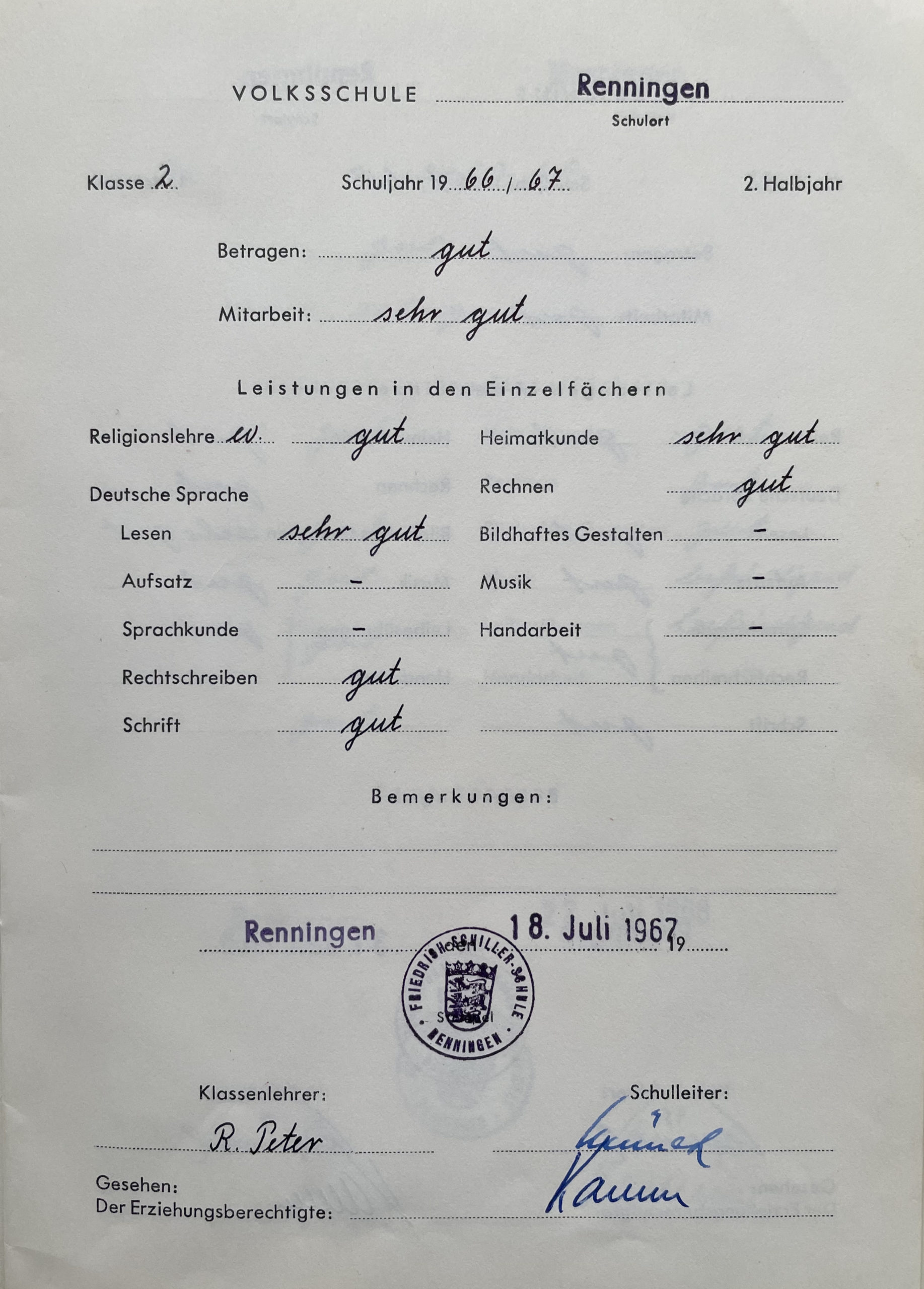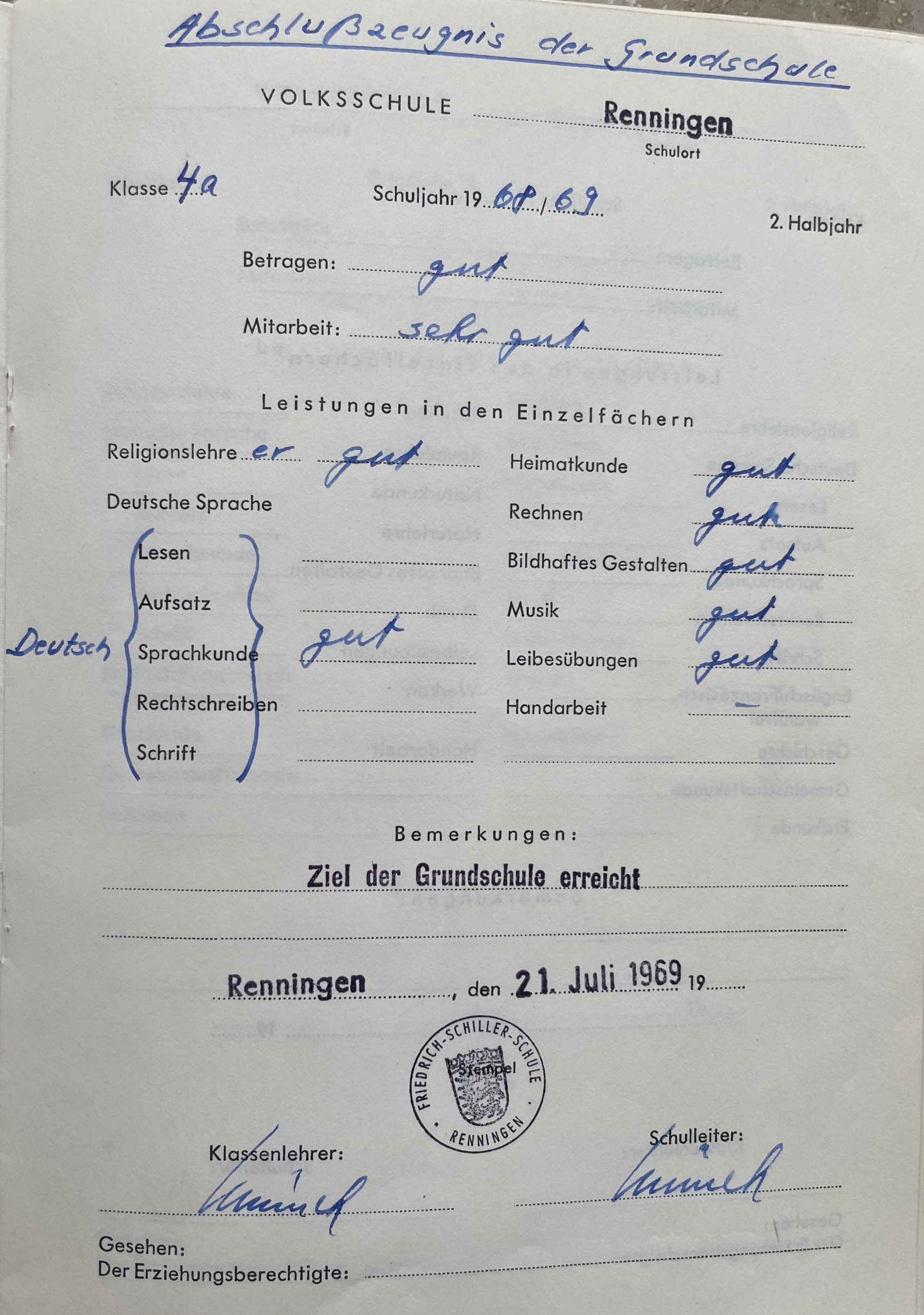 Strebsam angefangen und auch aufgehört, wodurch das Ziel der Grundschule am 21. Juli 1969 erreicht war. Im September erfolgte mein Wechsel in das Progymnasium Leonberg, das im Jahr 1972 in Johannes-Kepler-Gymnasium umbenannt wurde.