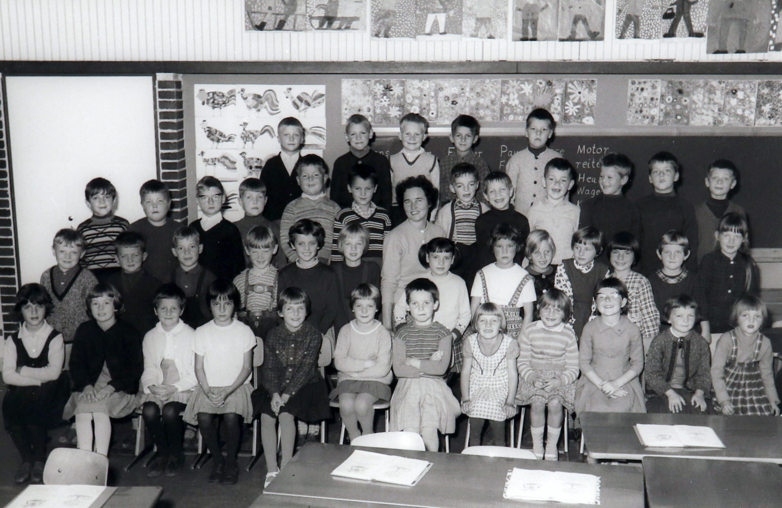 In der ersten und zweiten Klasse hatten wir als Klassenlehrerin Frau Peter, die wir als noch ganz frische Schulkids alle besonders gerne hatten. Thomas und ich im dunklen Nicki Pullover in der obersten Reihe rechts.