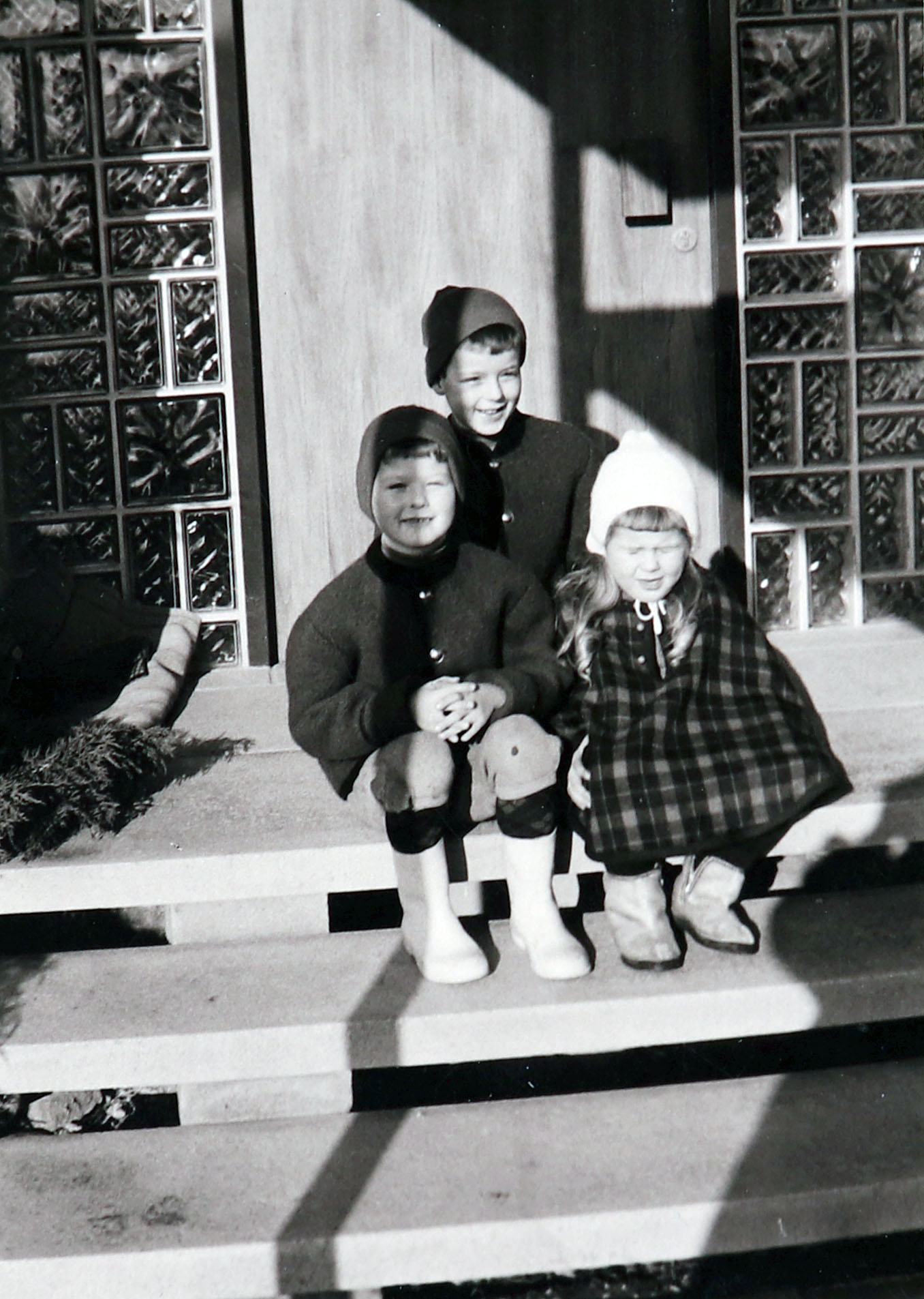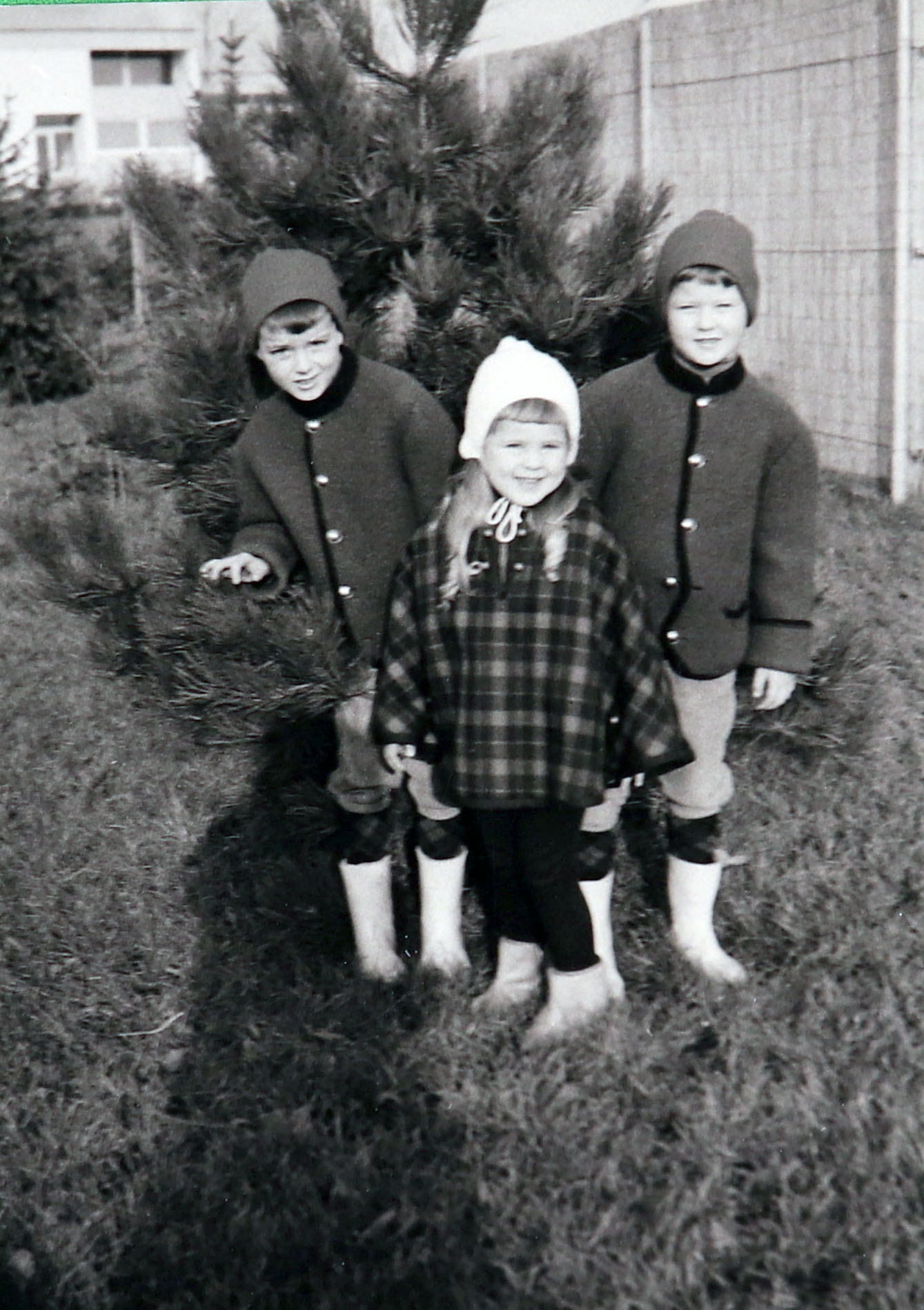 Wir drei Kids - Michael, Ulrike, Thomas - von links nach rechts im Garten unseres Familienhauses in Renningen