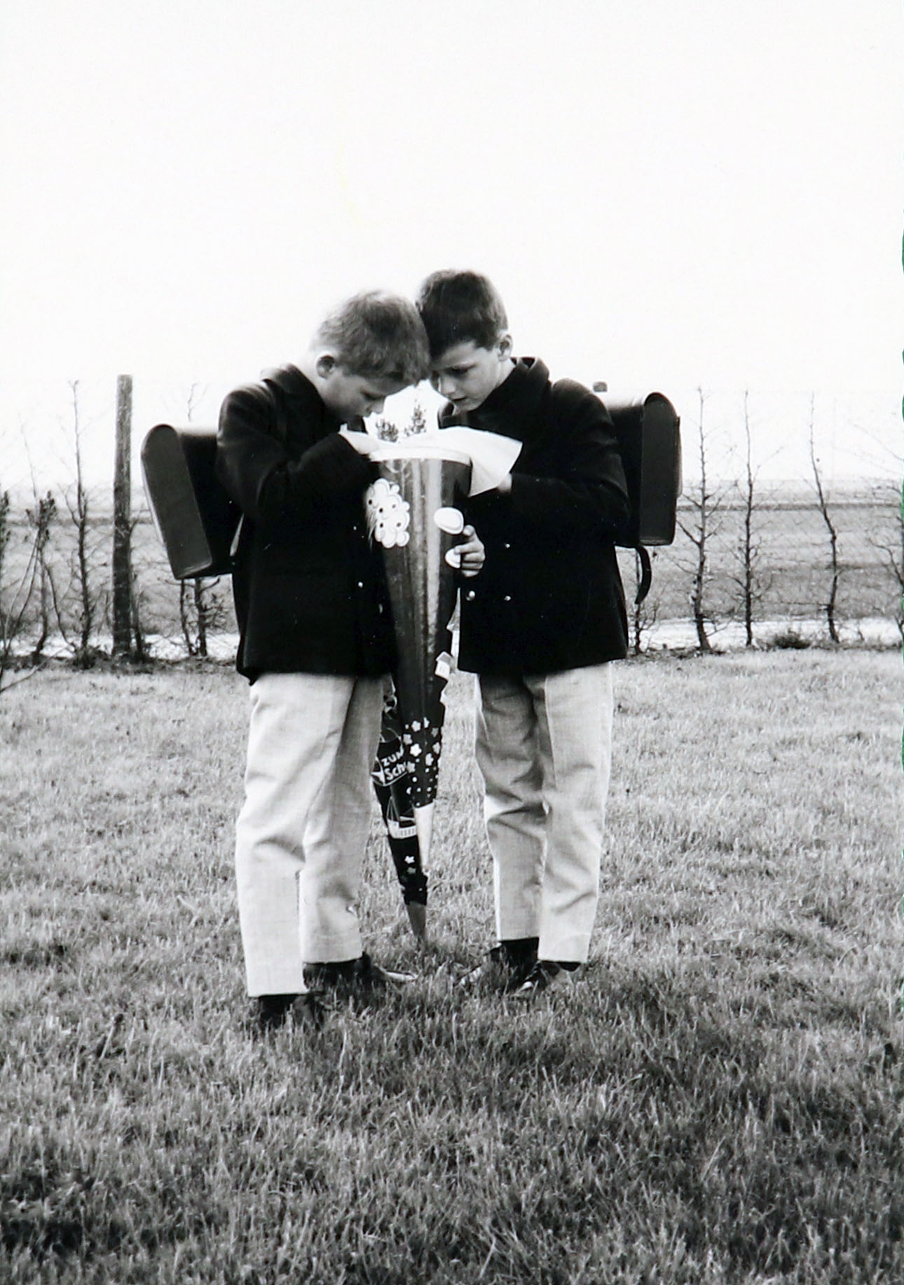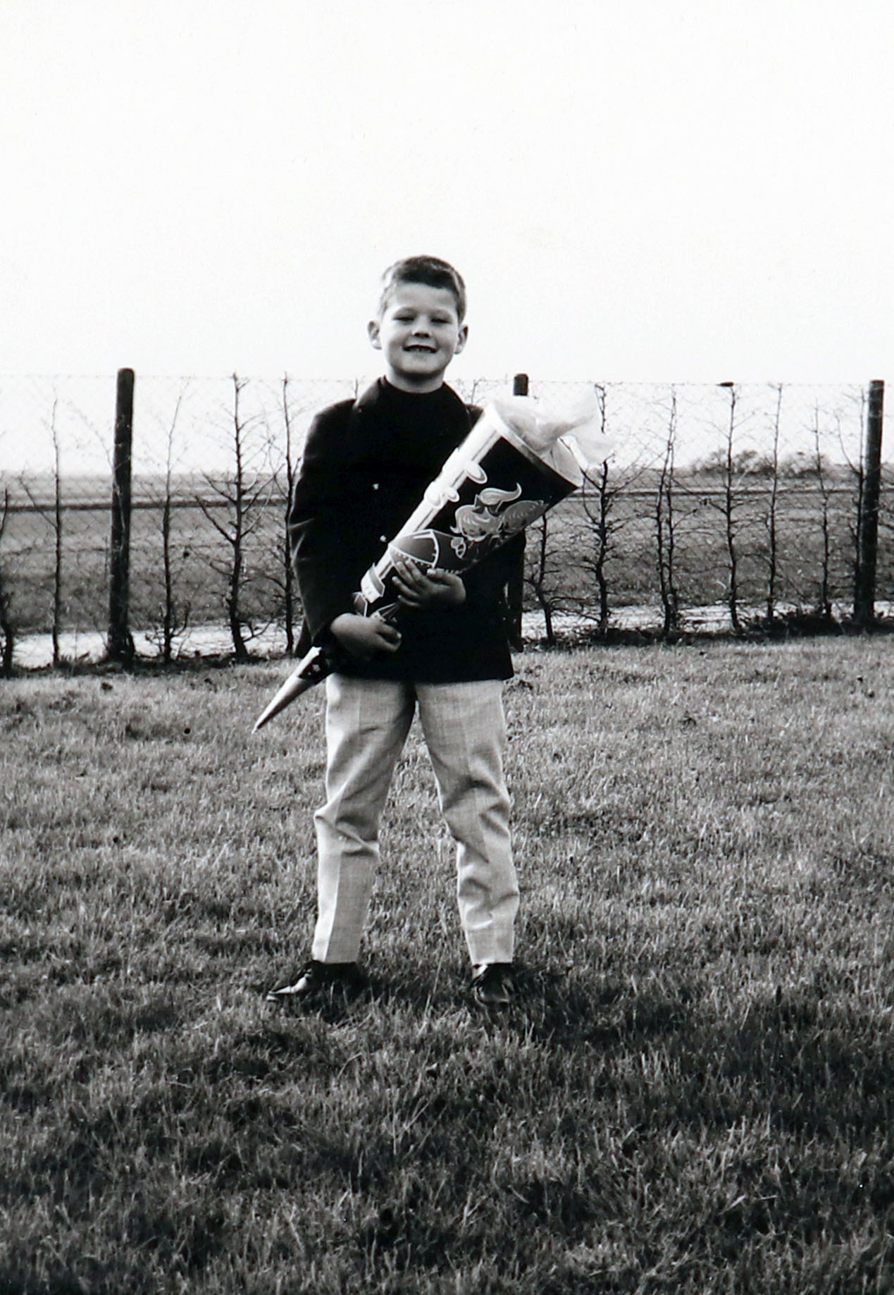 Erster Schultag am Freitag, 1. April 1966 mit Präsentation meiner wunderbaren, wenn auch leeren Schultüte