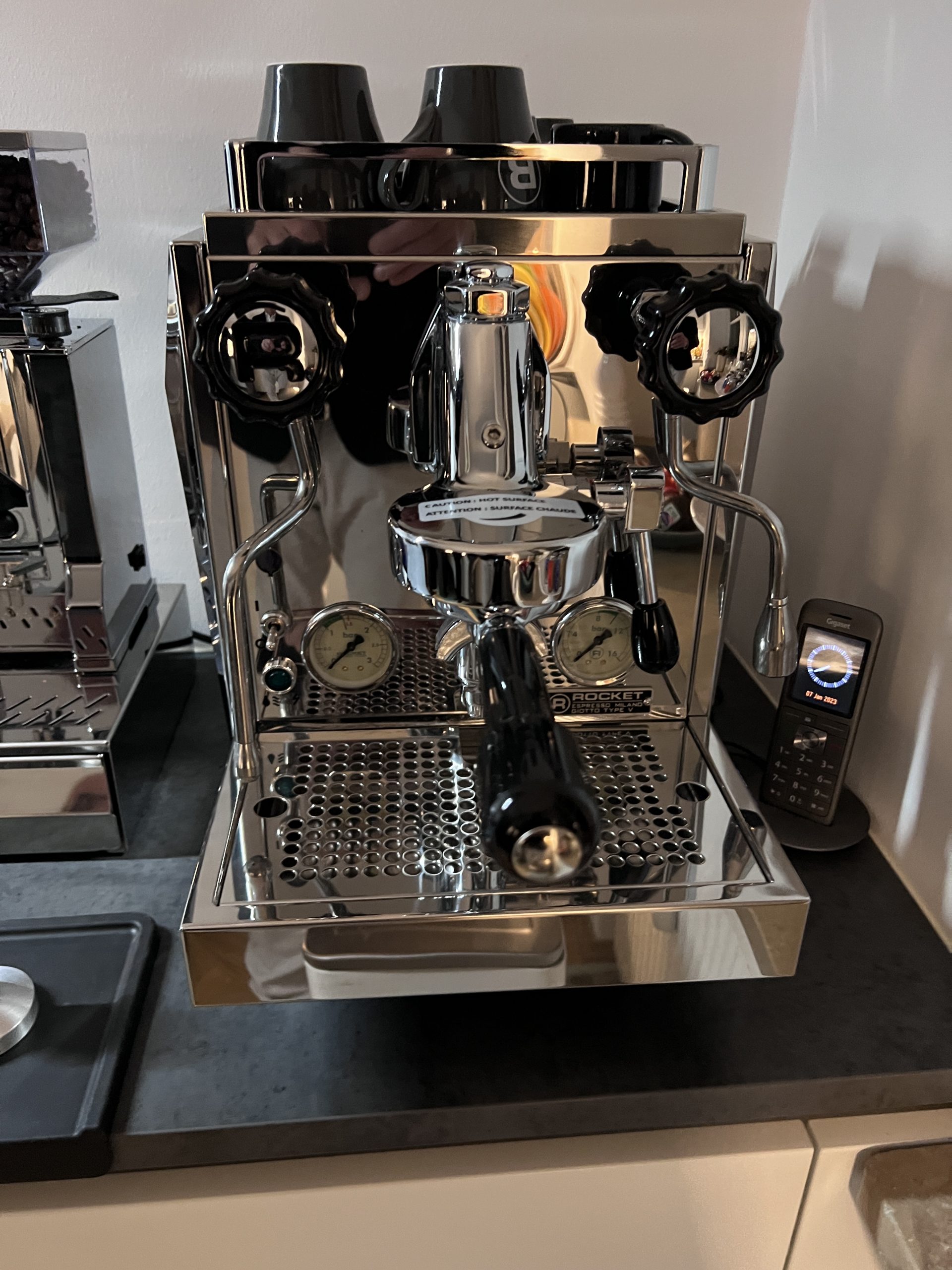 Die seitens Jürgen ständig mahnenden Worte bezüglich des häufigen Putzens schrecken mich aktuell selber noch ab in ein vergleichbar glitzerndes Wunderwerk zu investieren ... die 30 Kilo Druck auf die gemahlenen Kaffee-Bohnen kriege ich allerdings locker hin