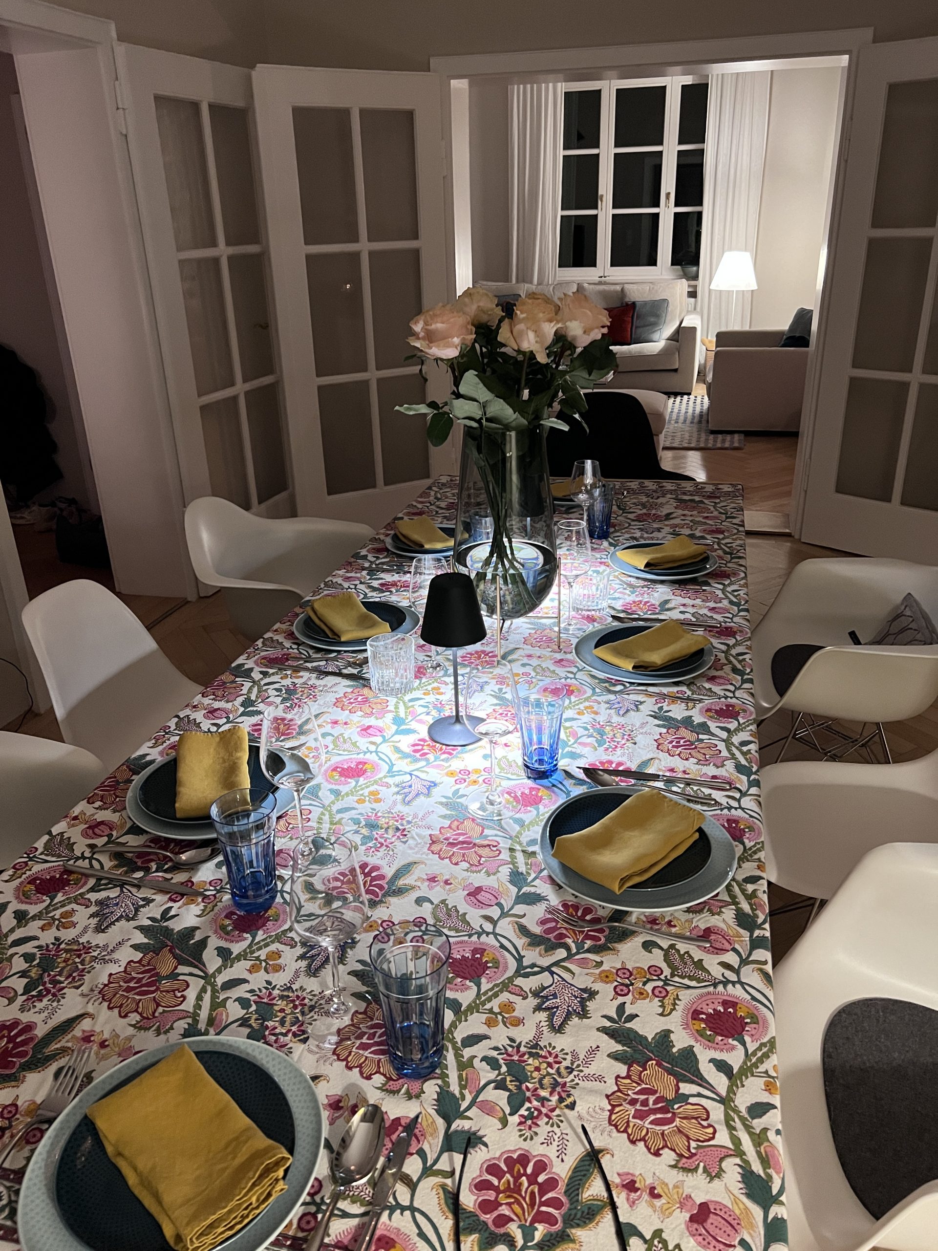 Andrea hat die Wohnung wie immer perfekt aufgeräumt, Pascal seinen Bechstein Flügel mit Chopin Noten versehen und die Damen haben sich zum ersten Champagner Austausch vor der Küche getroffen